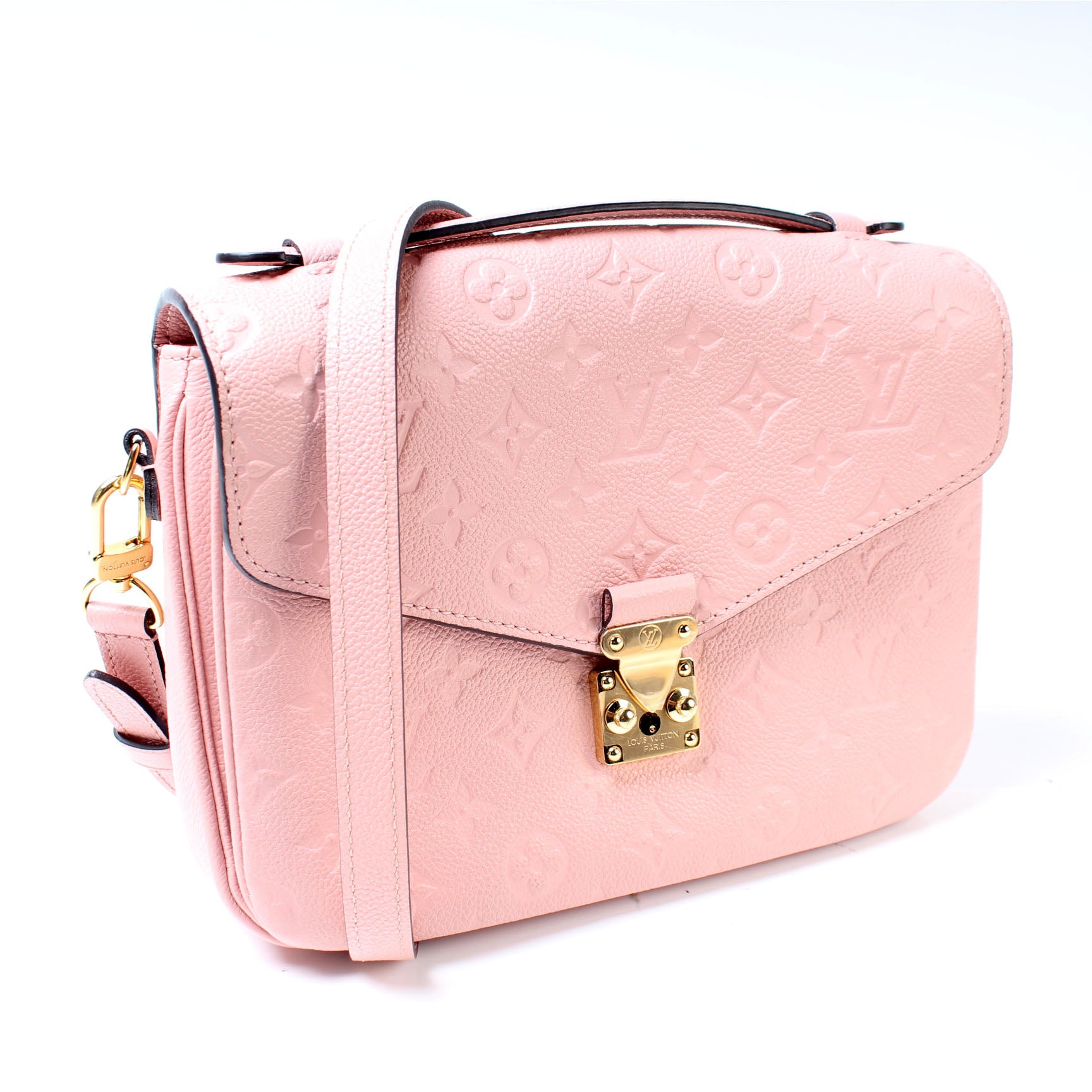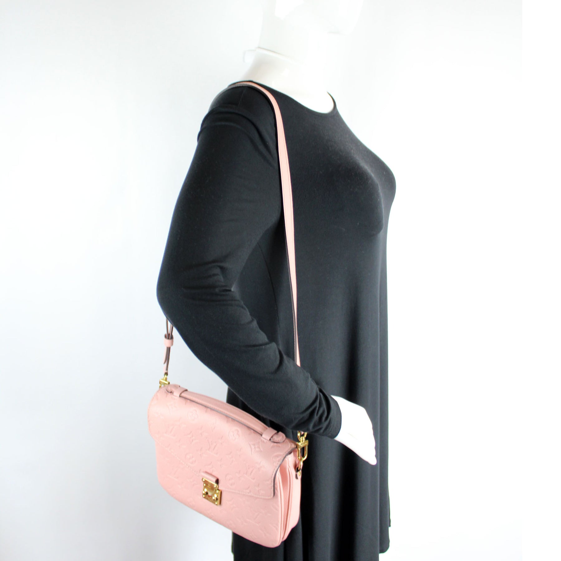 This pre-owned Louis Vuitton Pochette Metis is guaranteed 100% authentic. The exterior is in the classic Louis Vuitton Empreinte leather.