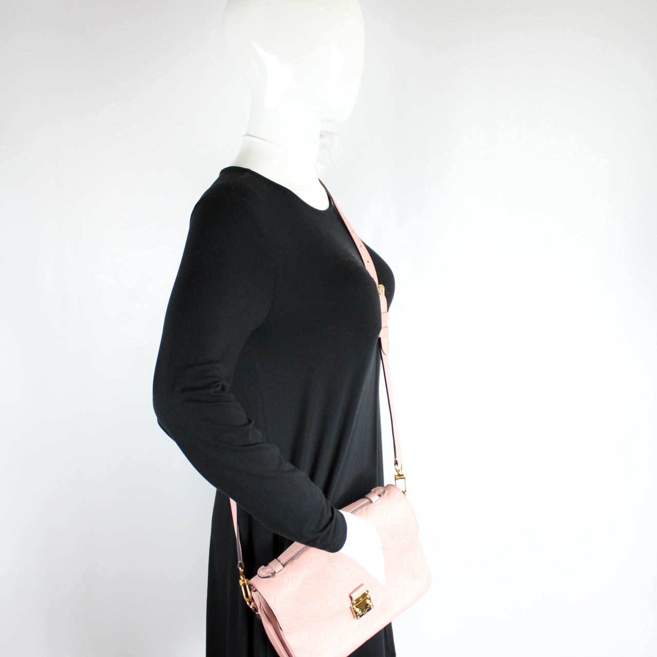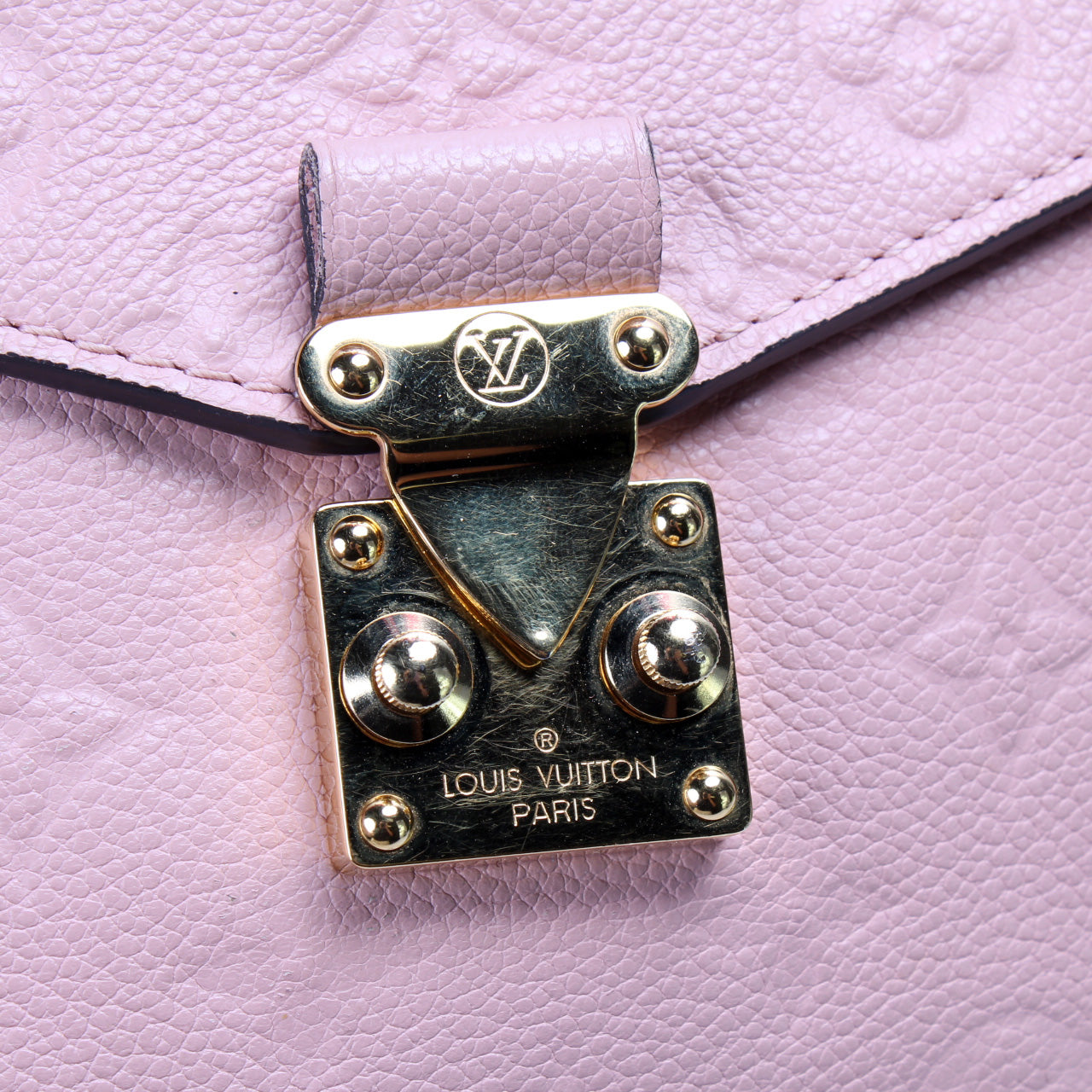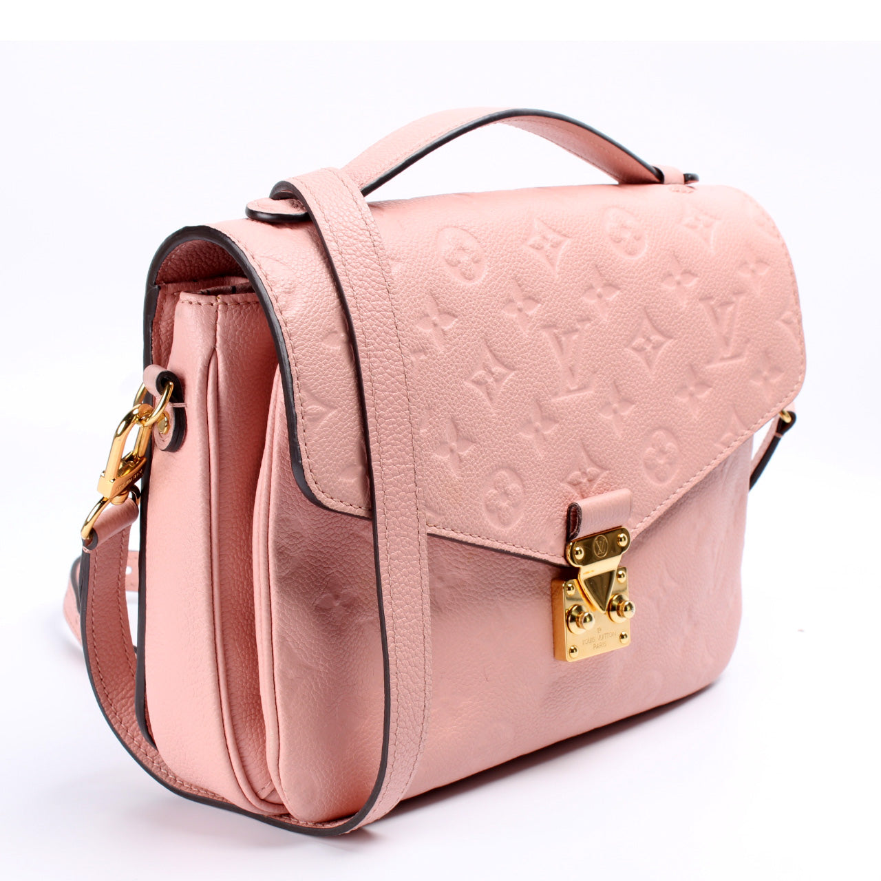 This pre-owned Louis Vuitton Pochette Metis is guaranteed 100% authentic. The exterior is in the classic Louis Vuitton Empreinte leather.