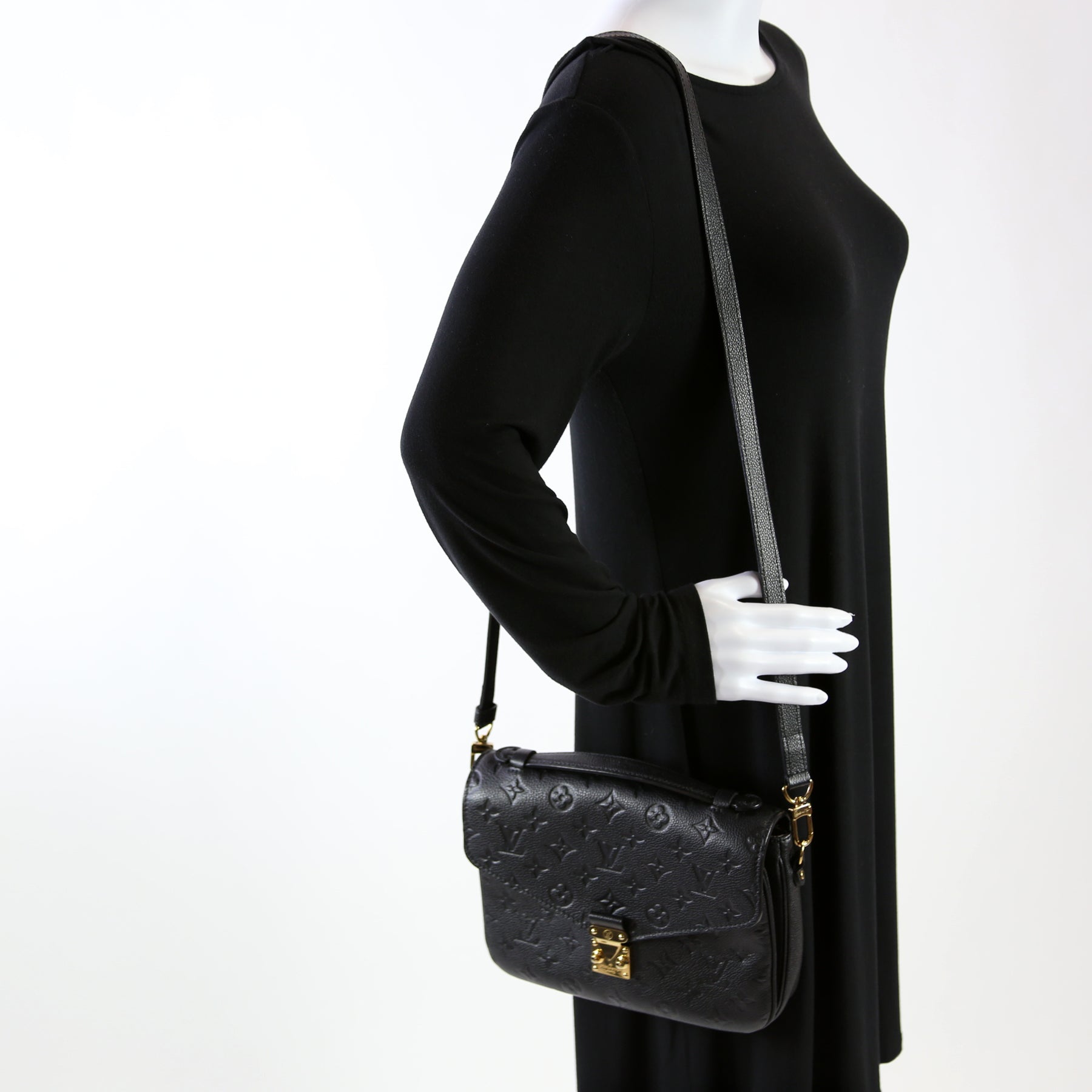 This pre-owned Louis Vuitton Pochette Metis is guaranteed 100% authentic. The exterior is in the classic Louis Vuitton Empreinte leather.