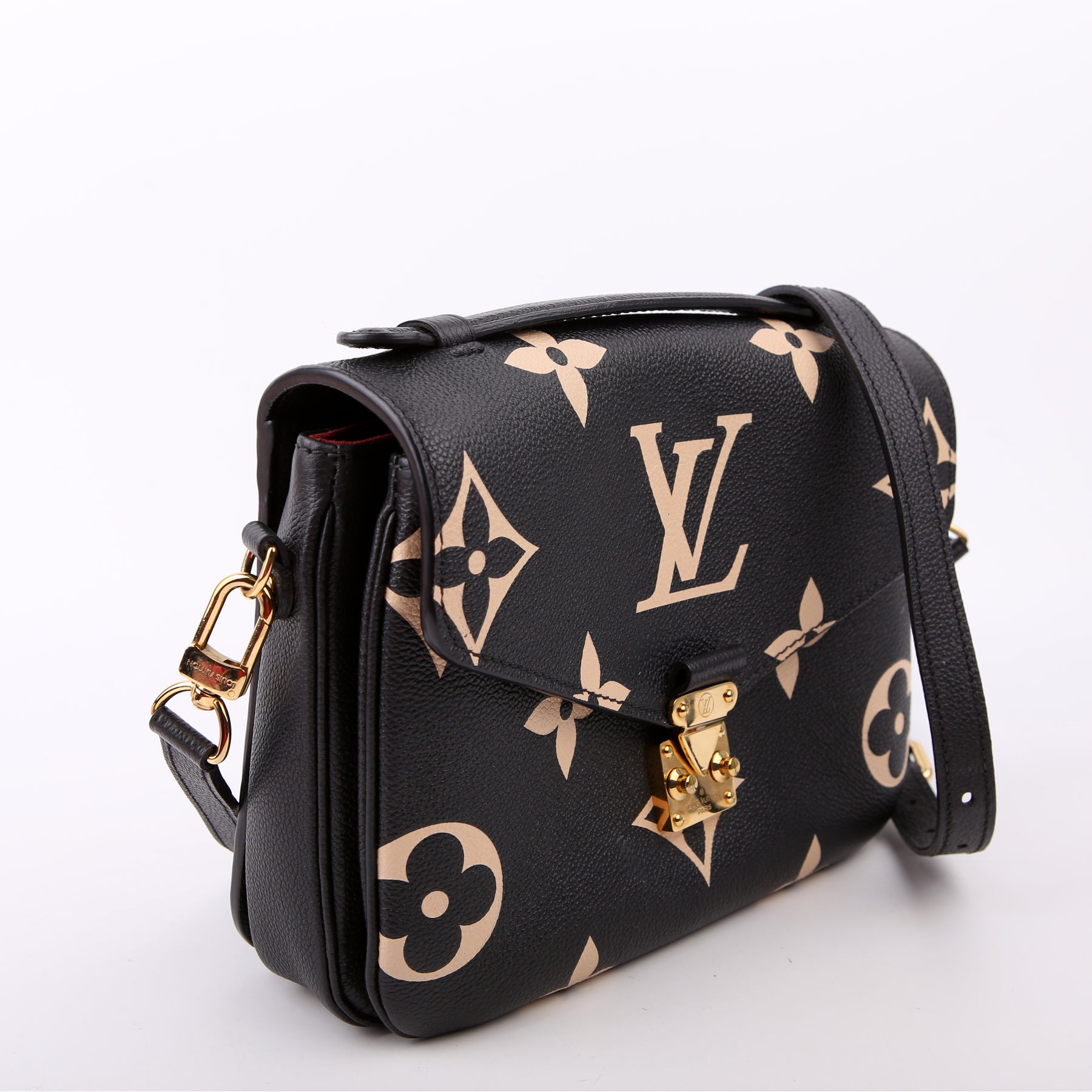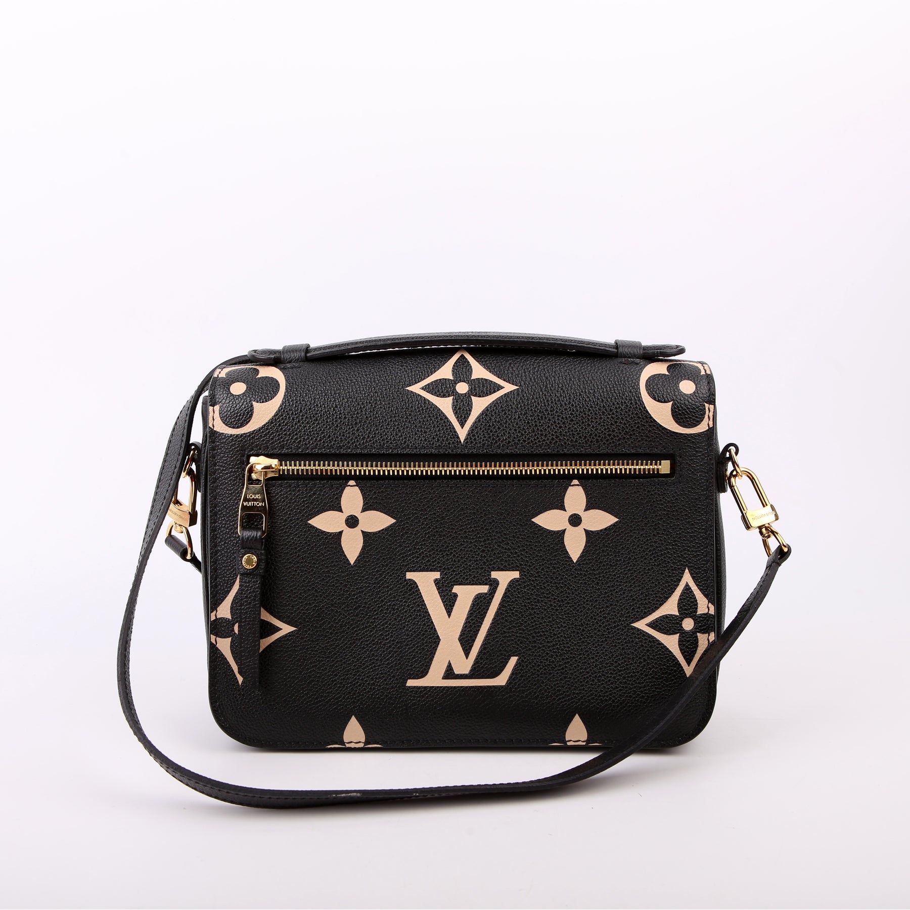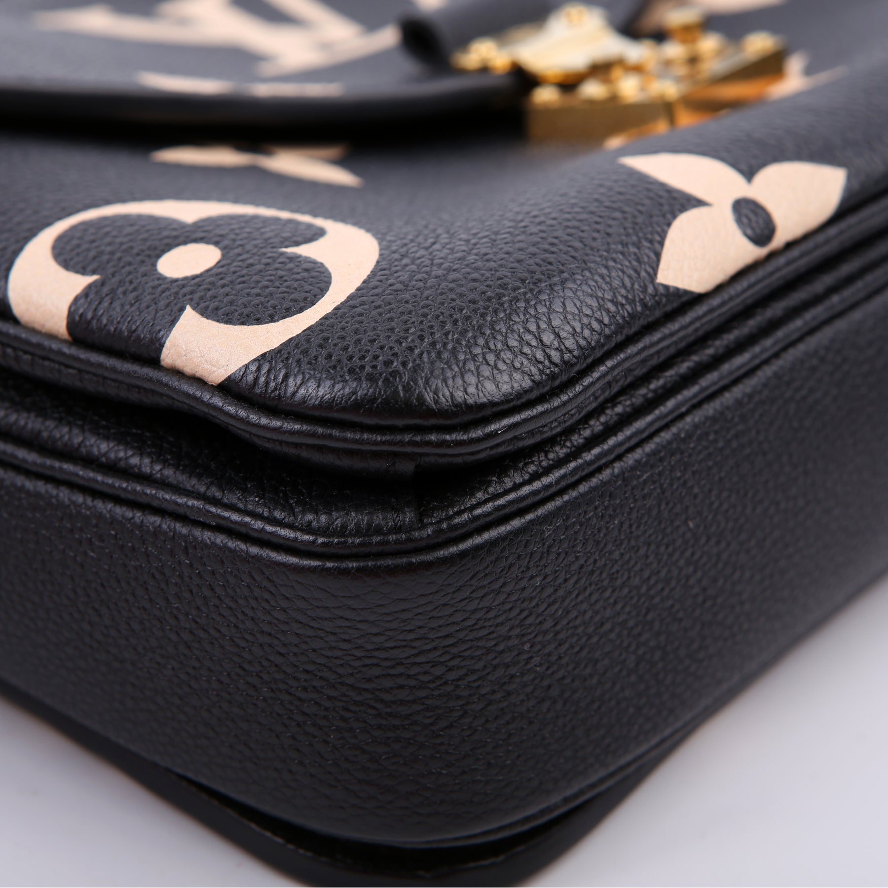 This pre-owned Louis Vuitton Pochette Metis is guaranteed 100% authentic. The exterior is in the classic Louis Vuitton Empreinte Bicolor leather.