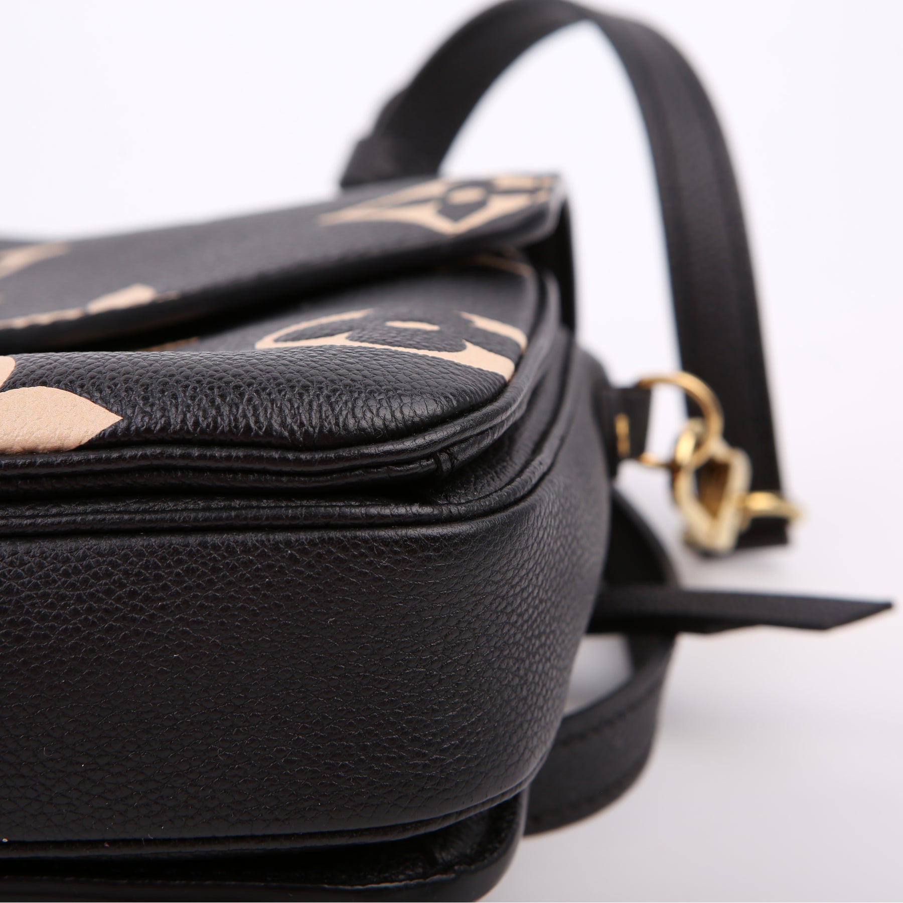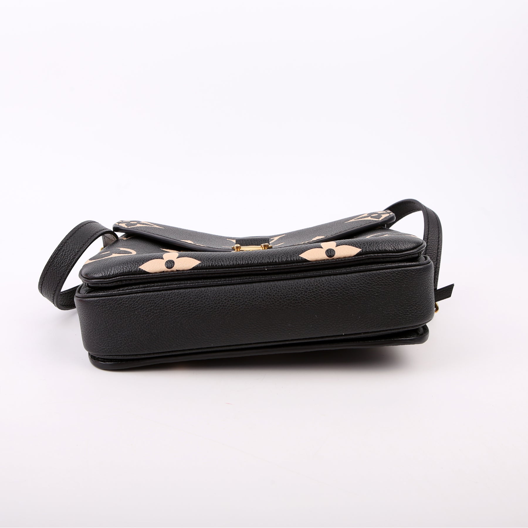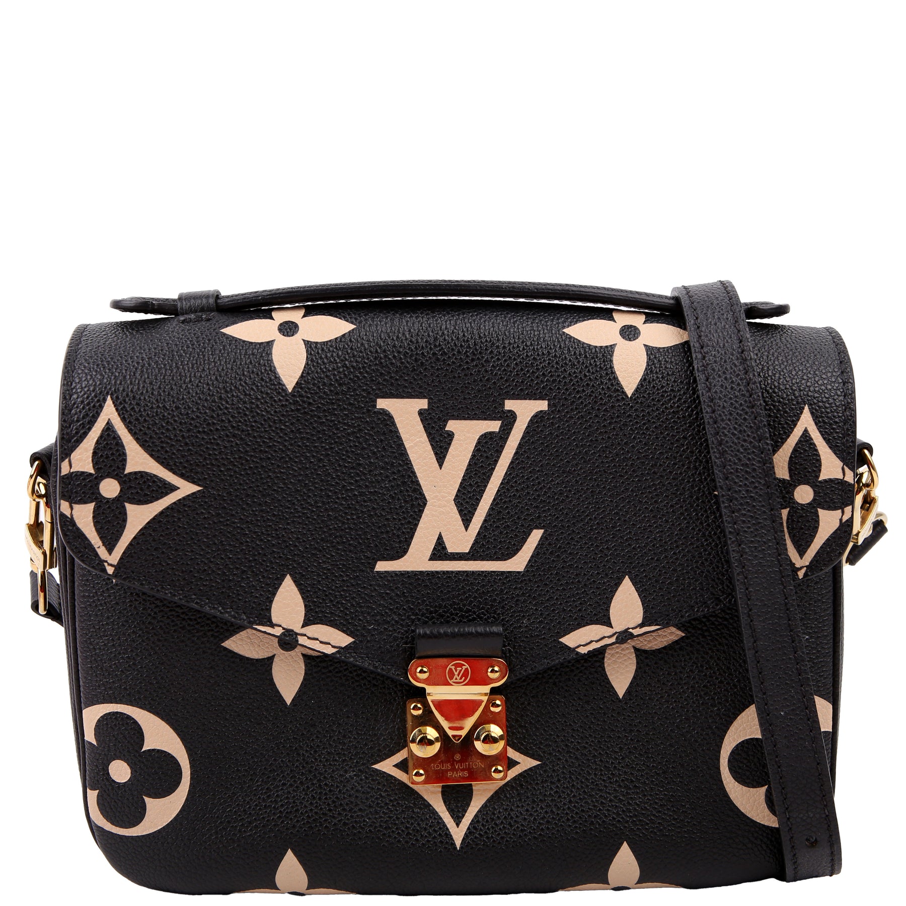 This pre-owned Louis Vuitton Pochette Metis is guaranteed 100% authentic. The exterior is in the classic Louis Vuitton Empreinte Bicolor leather.