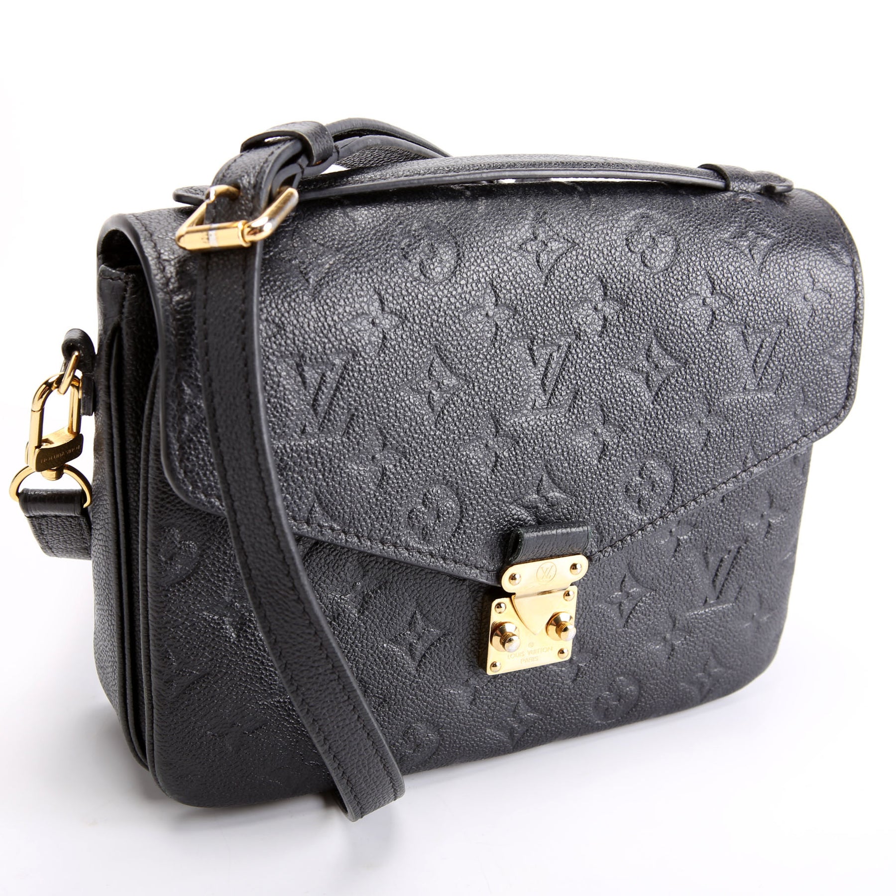 This pre-owned Louis Vuitton Pochette Metis is guaranteed 100% authentic. The exterior is in the classic Louis Vuitton Empretine leather.
