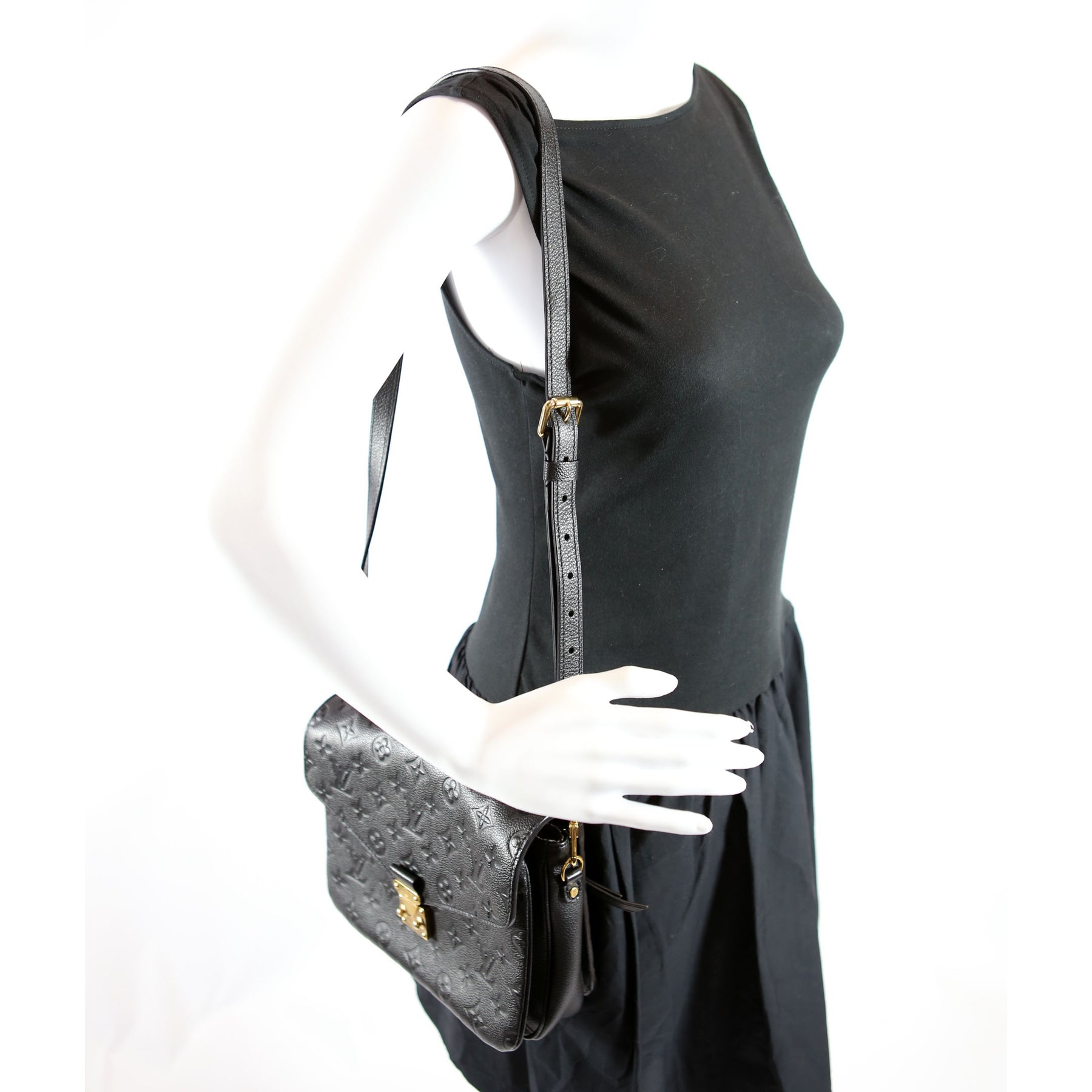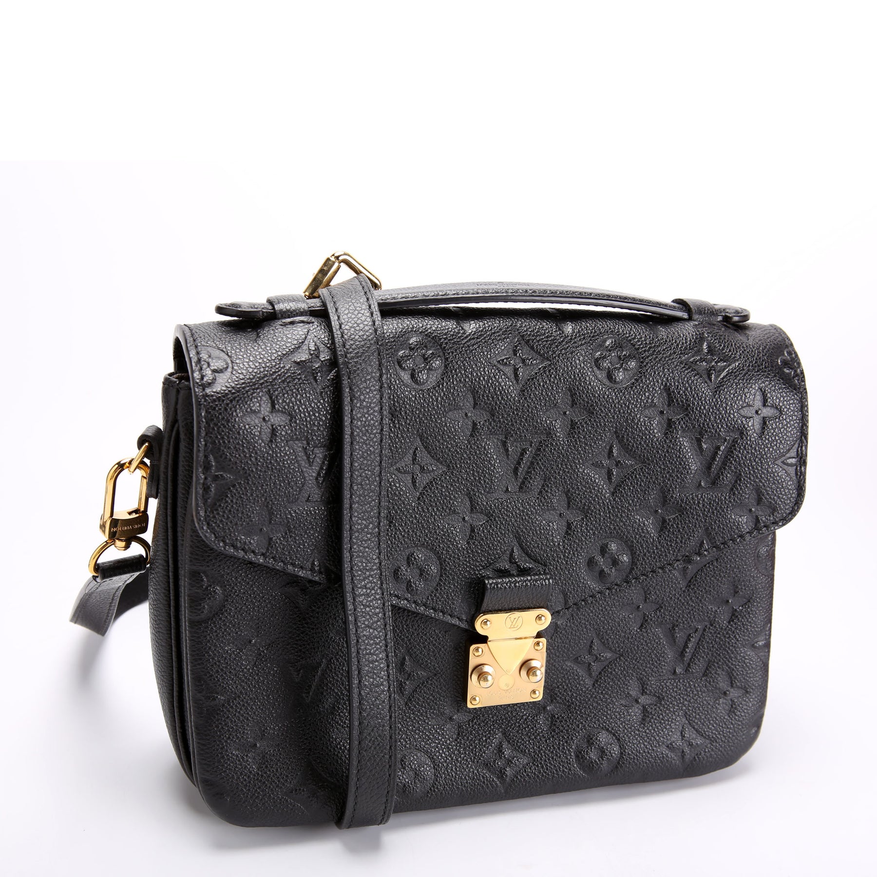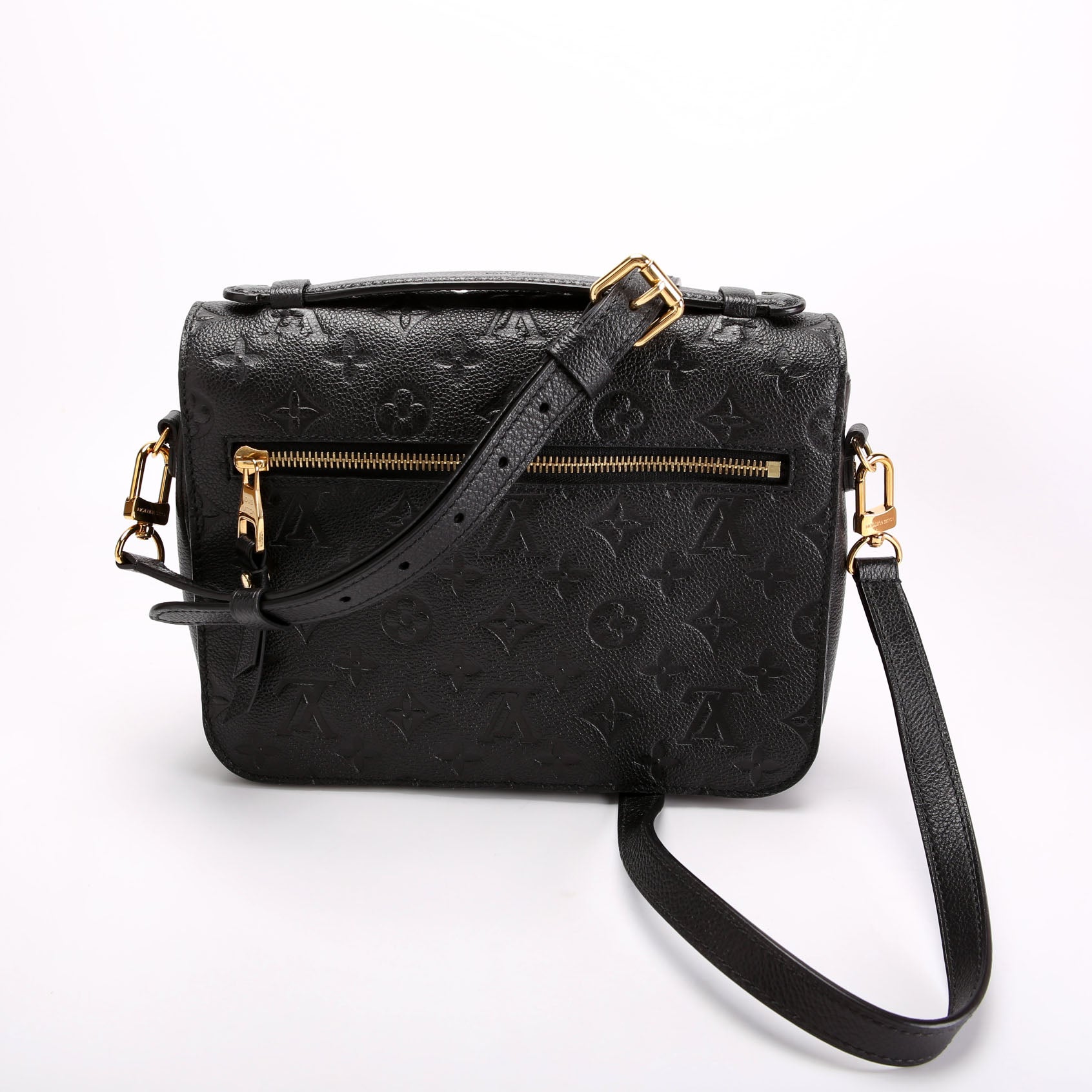 This pre-owned Louis Vuitton Pochette Metis is guaranteed 100% authentic. The exterior is in the classic Louis Vuitton Empreinte leather. .