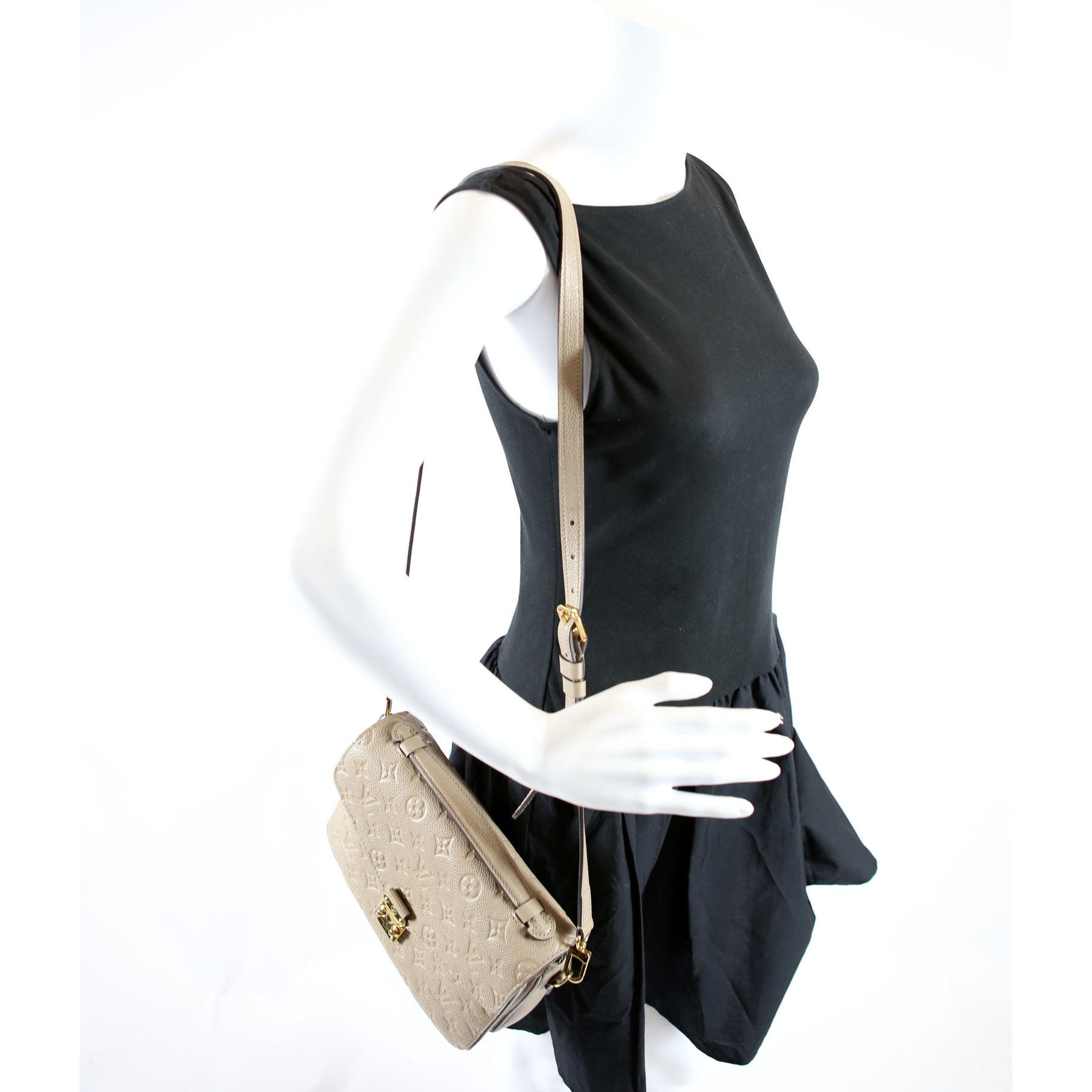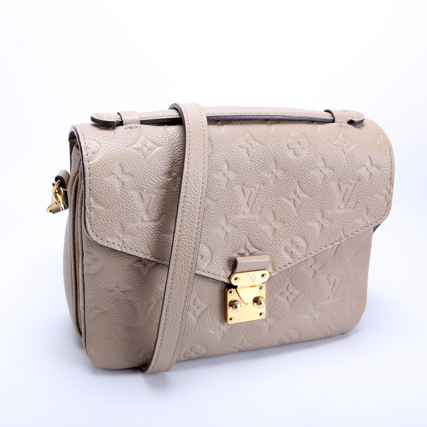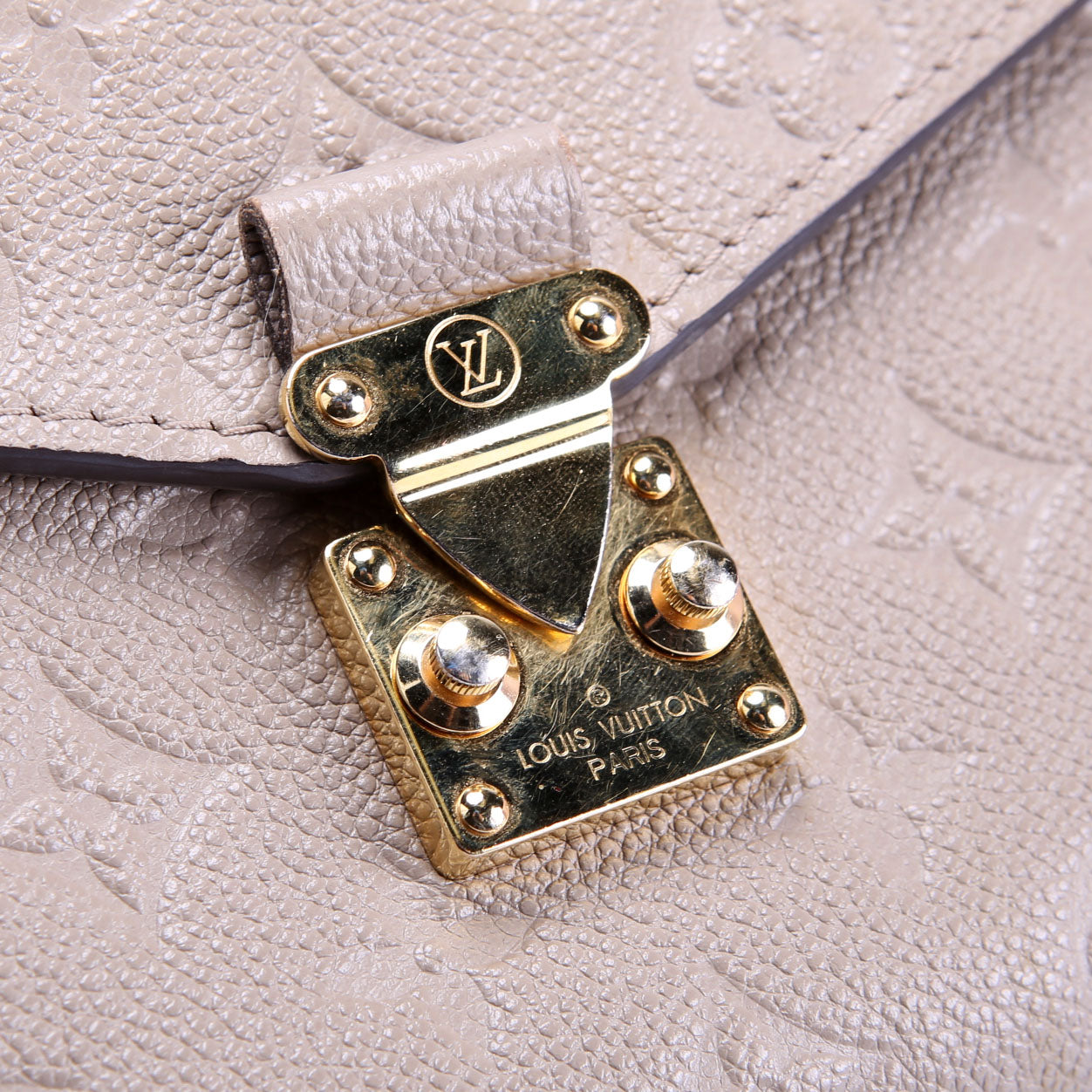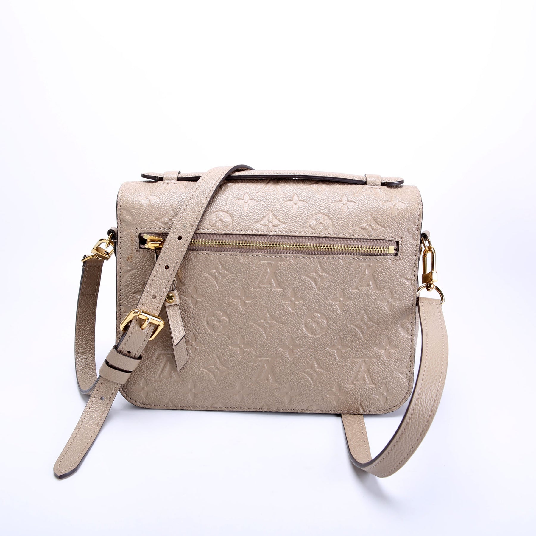 This pre-owned Louis Vuitton Pochette Metis is guaranteed 100% authentic. The exterior is in the classic Louis Vuitton Empreinte leather.