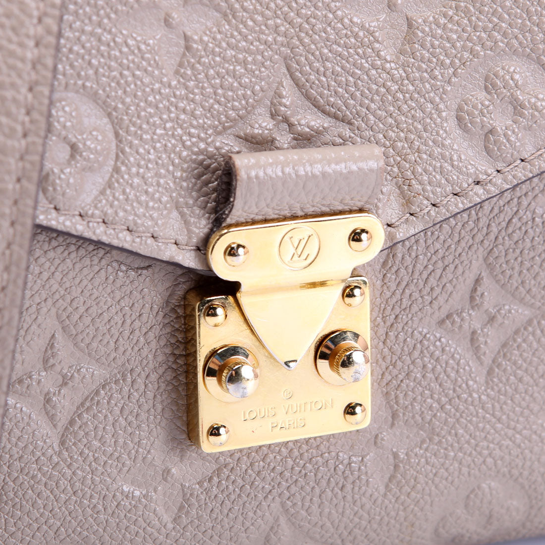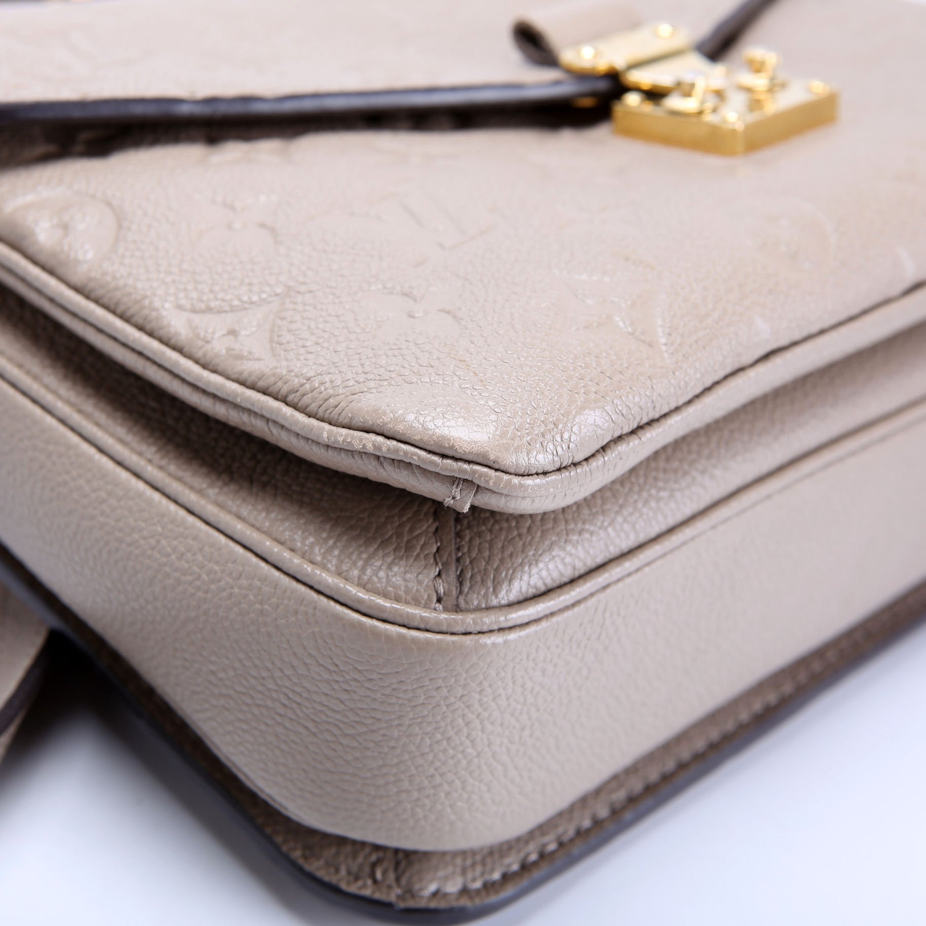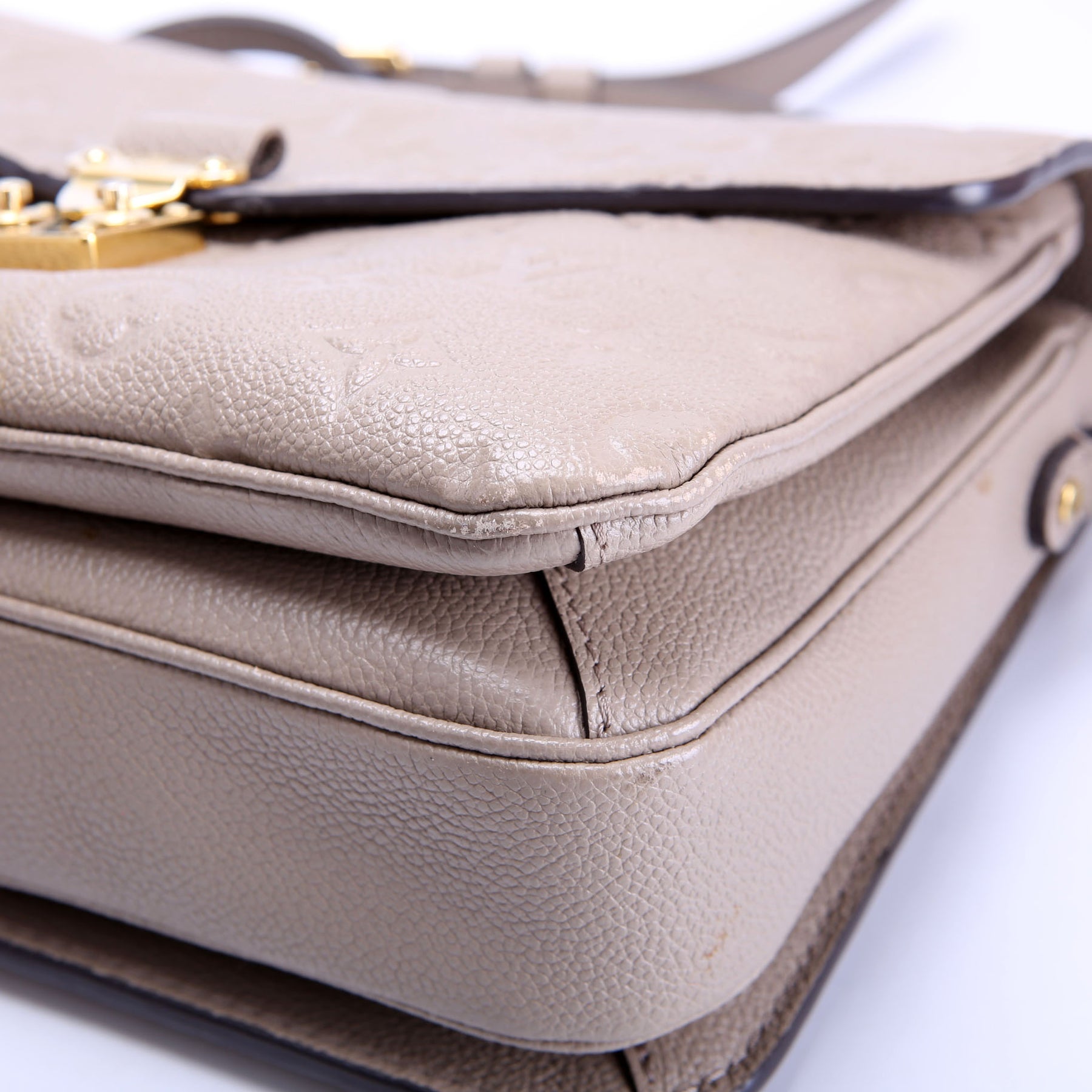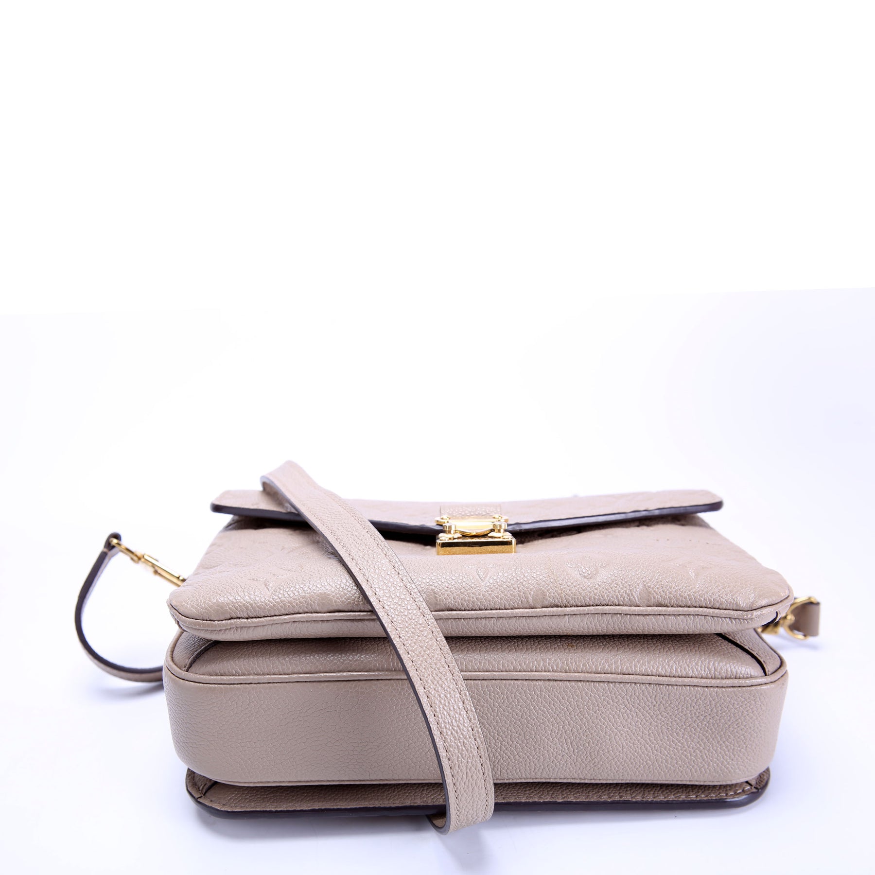 This pre-owned Louis Vuitton Pochette Metis is guaranteed 100% authentic. The exterior is in the classic Louis Vuitton Empreinte leather.