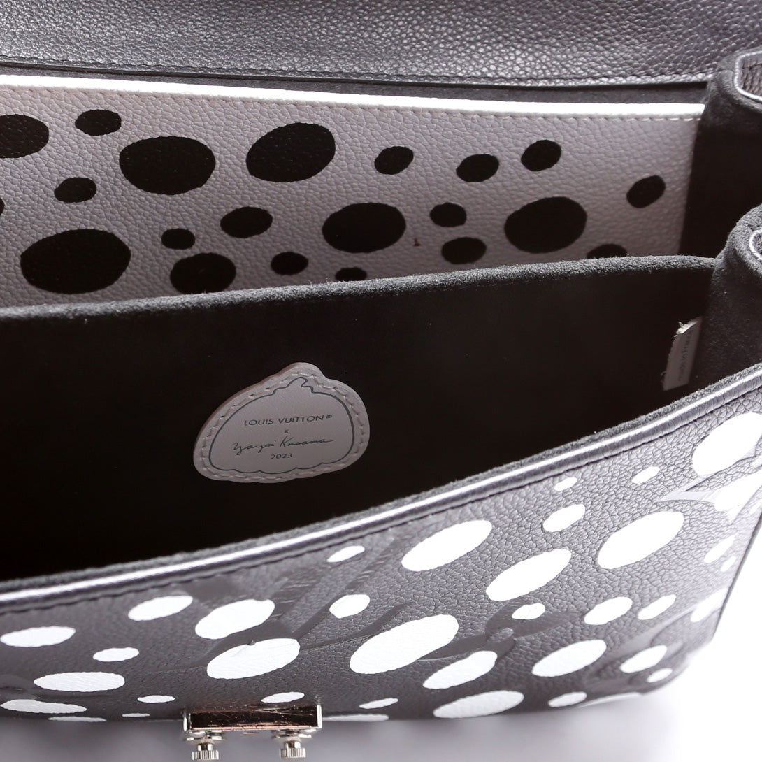 This pre-owned Louis Vuitton Pochette Metis is guaranteed 100% authentic. The exterior is in the classic Louis Vuitton Empreinte Kusama leather.