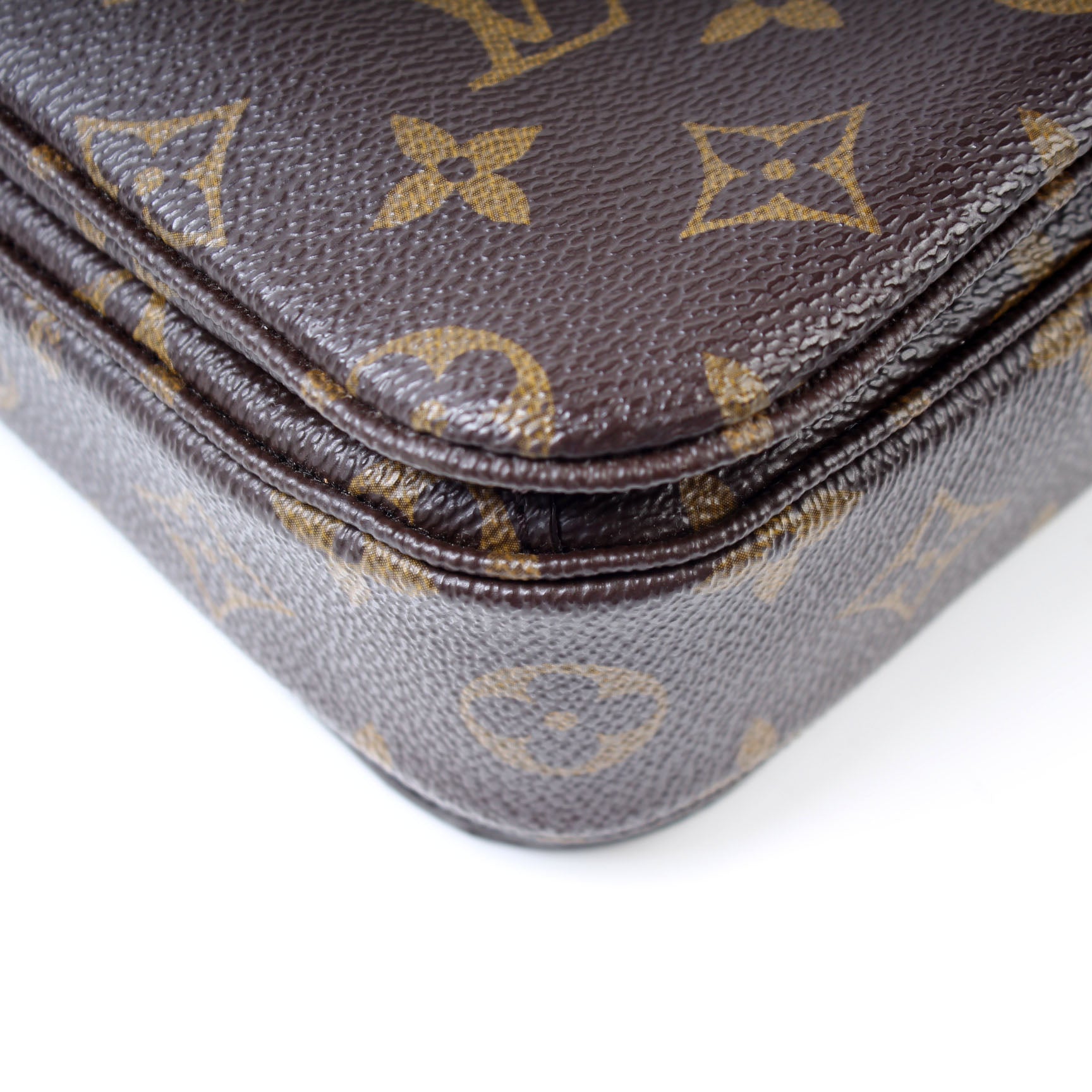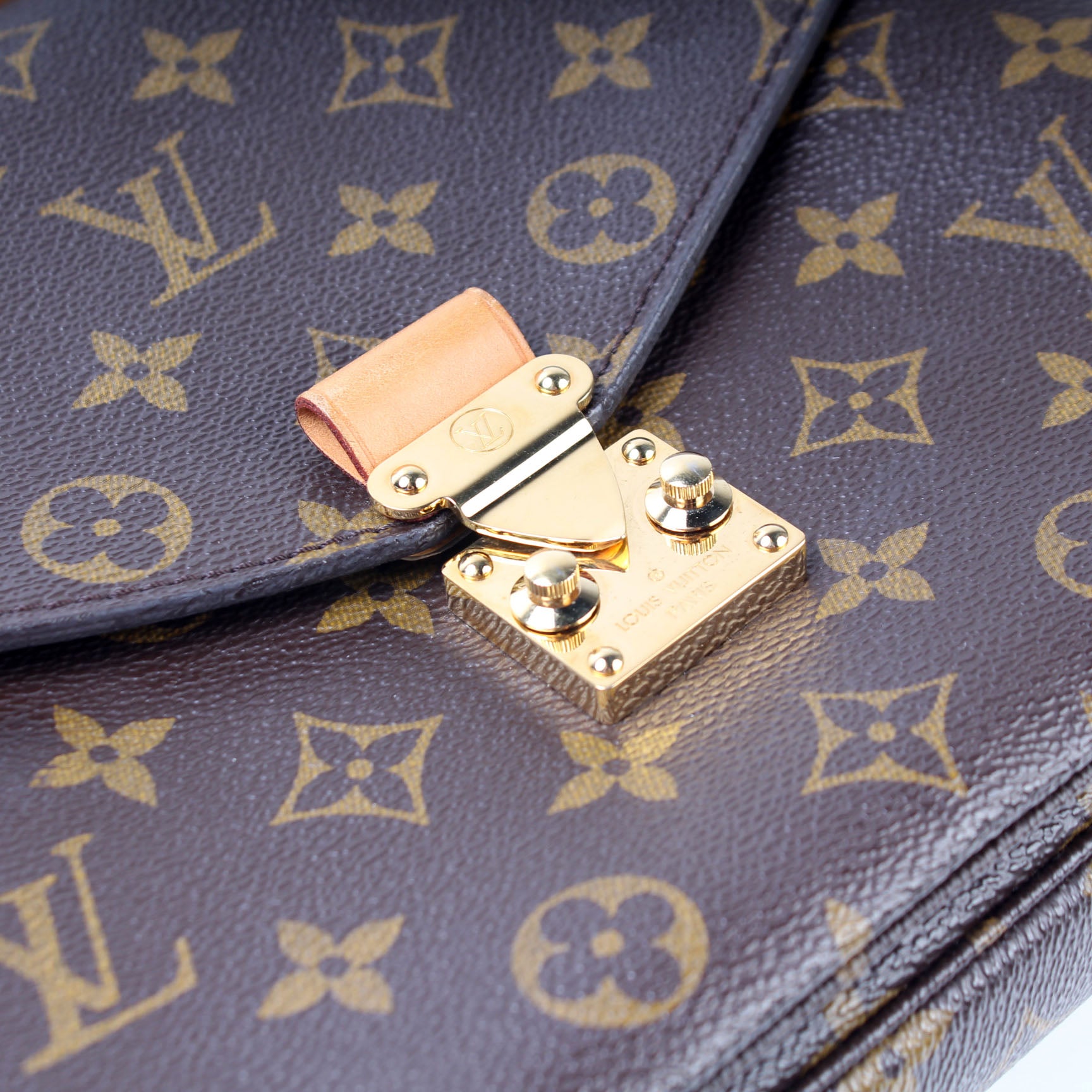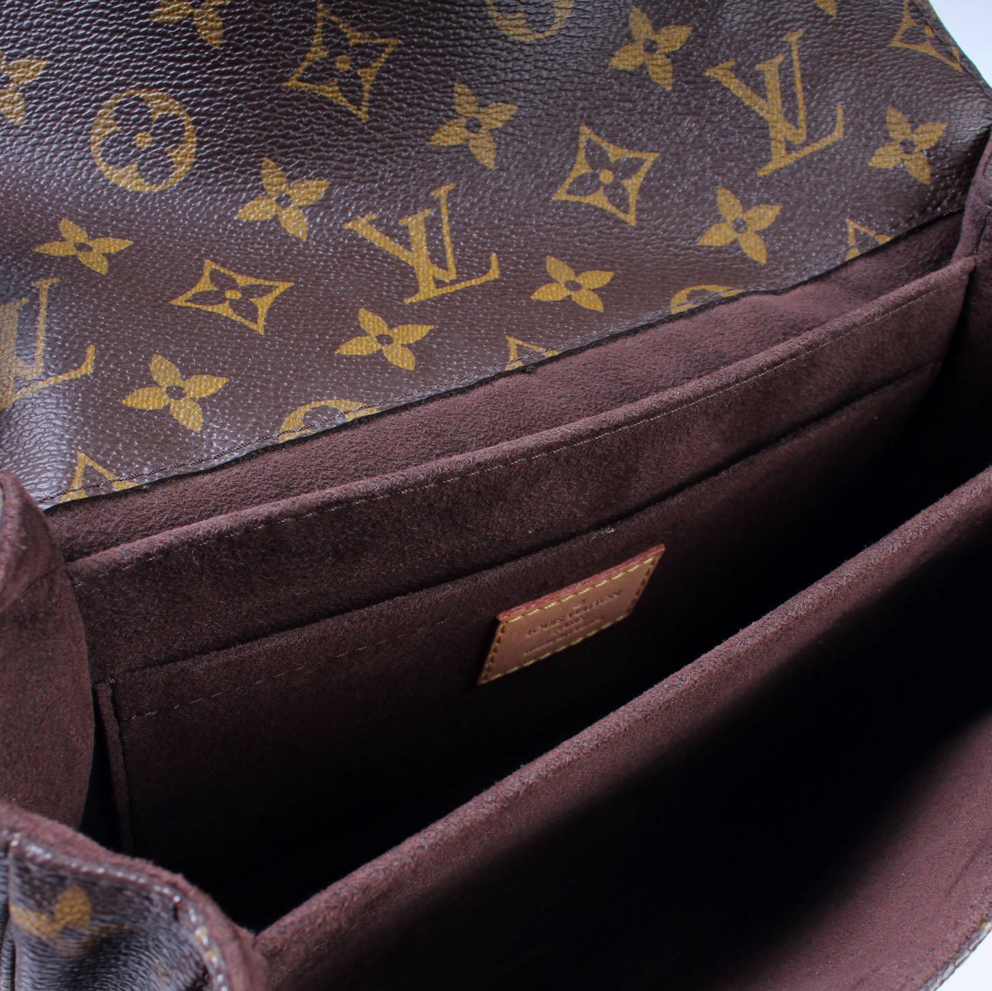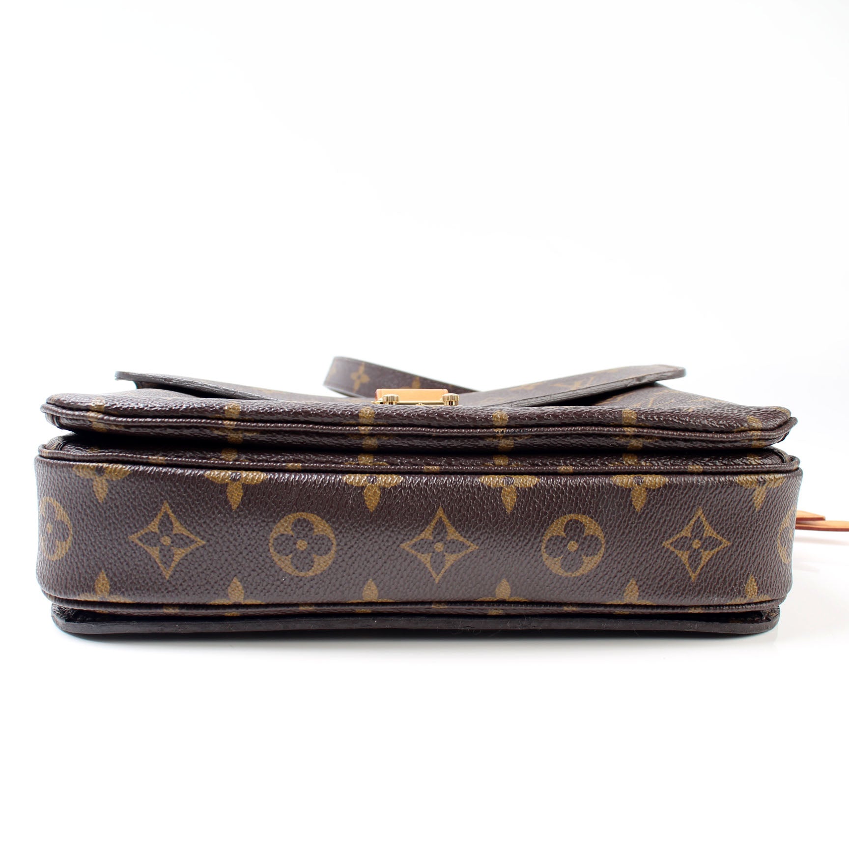 This pre-owned Louis Vuitton Pochette Metis is guaranteed 100% authentic. The exterior is in the classic Louis Vuitton Monogram coated canvas.