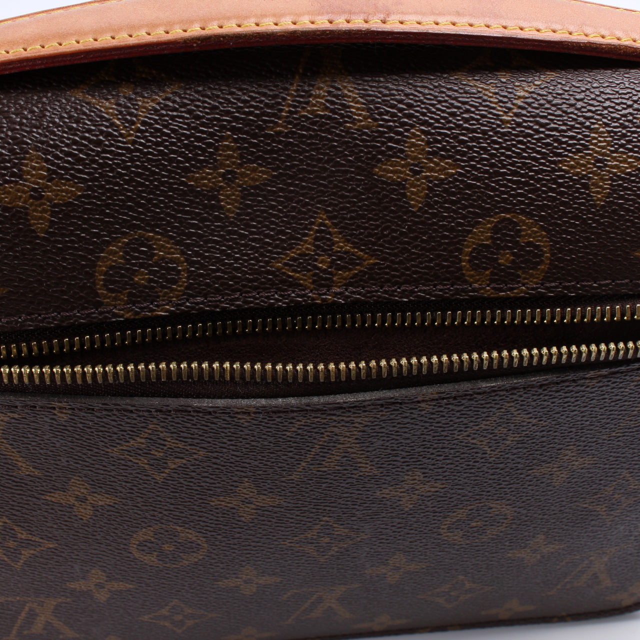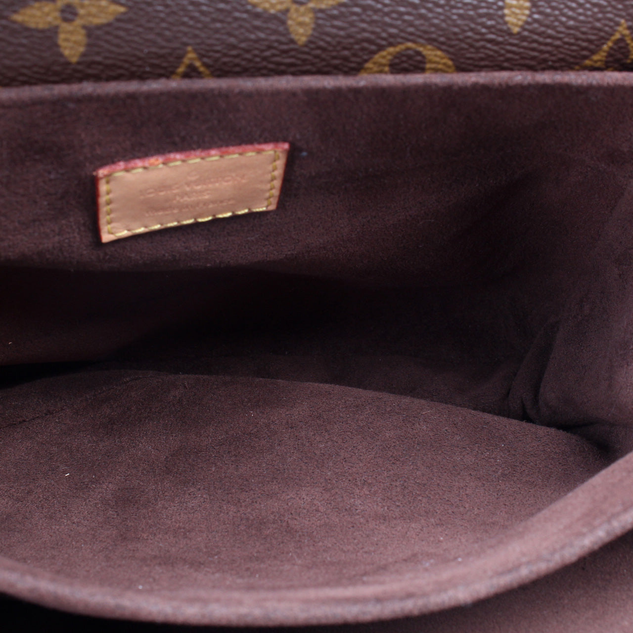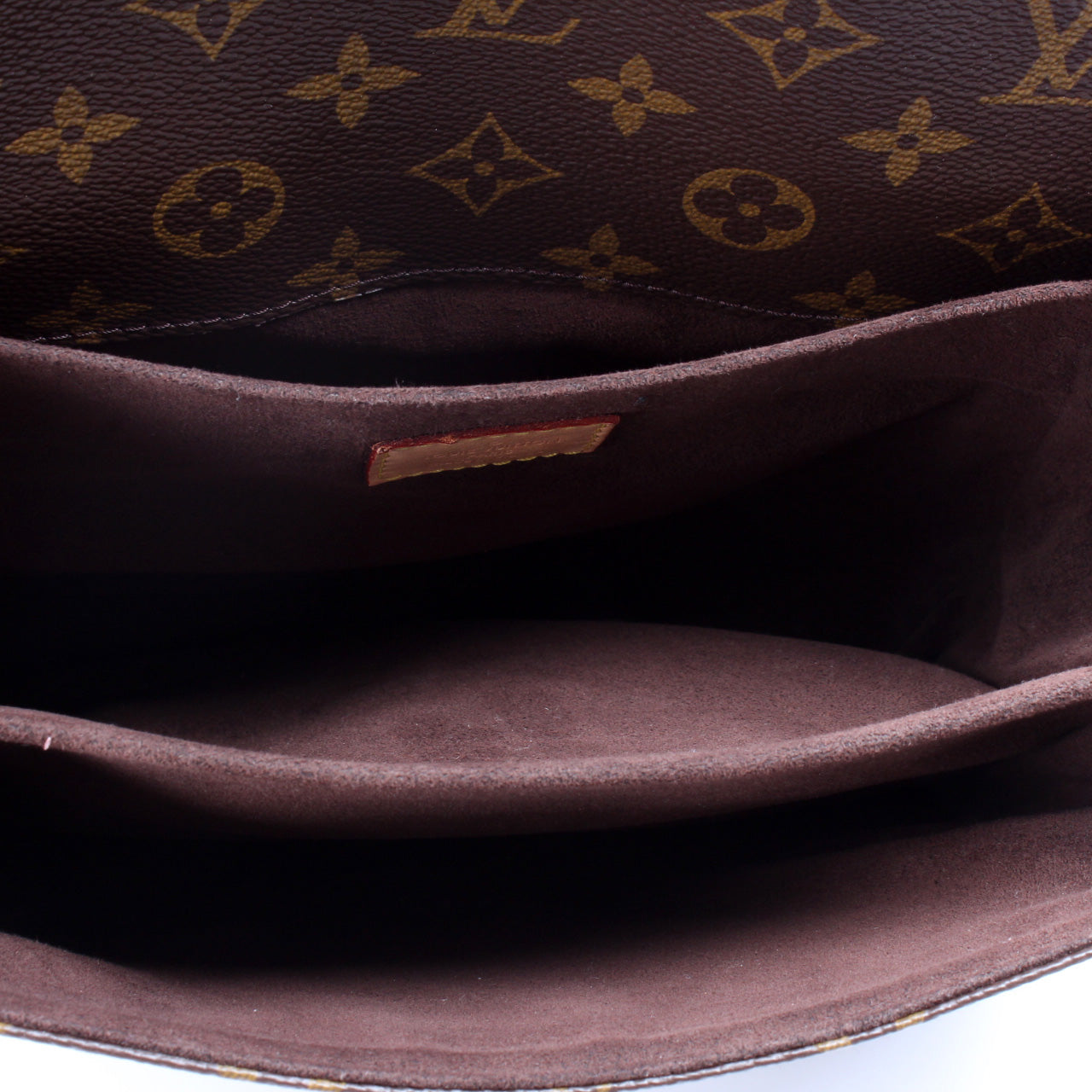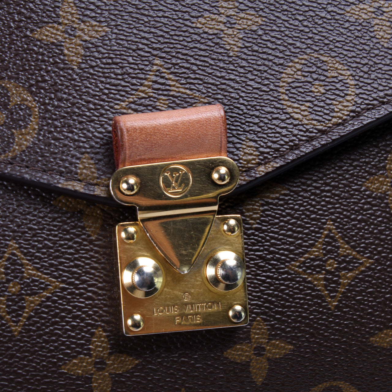 This pre-owned Louis Vuitton Pochette Metis is guaranteed 100% authentic. The exterior is in the classic Louis Vuitton Monogram coated canvas.