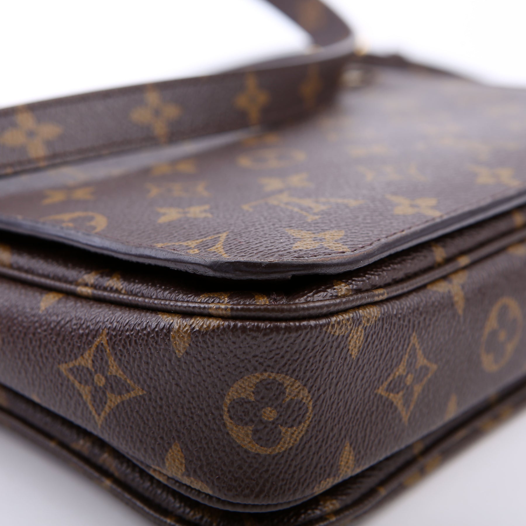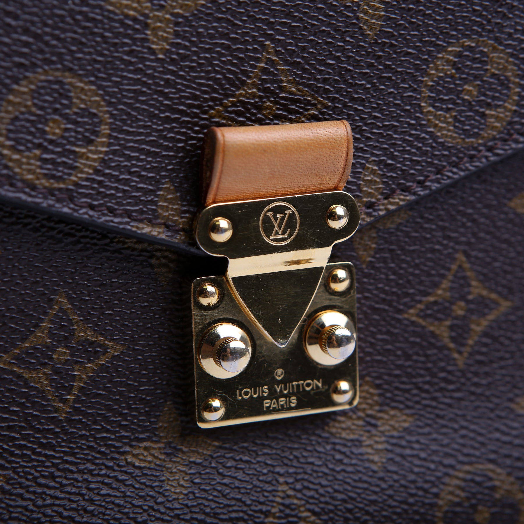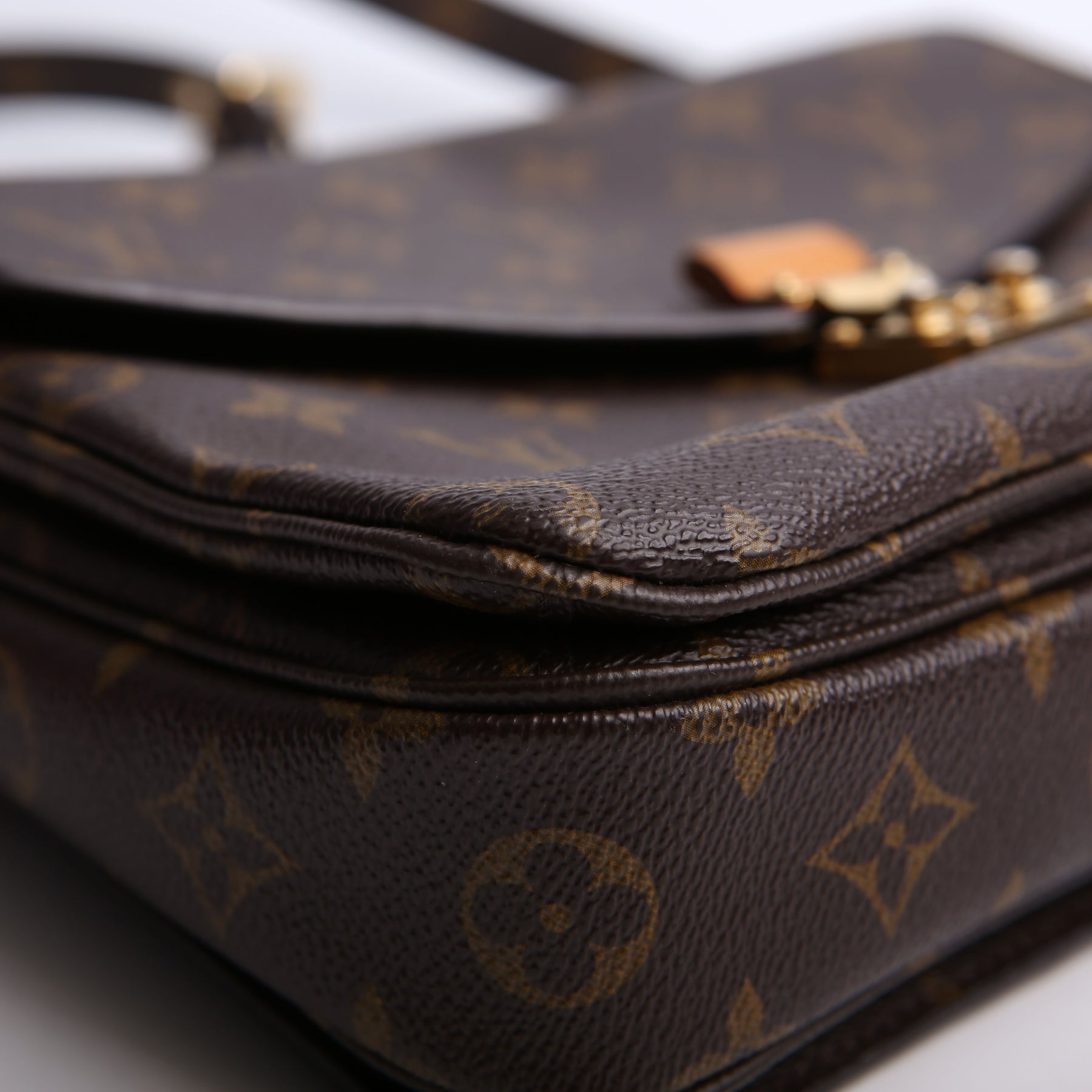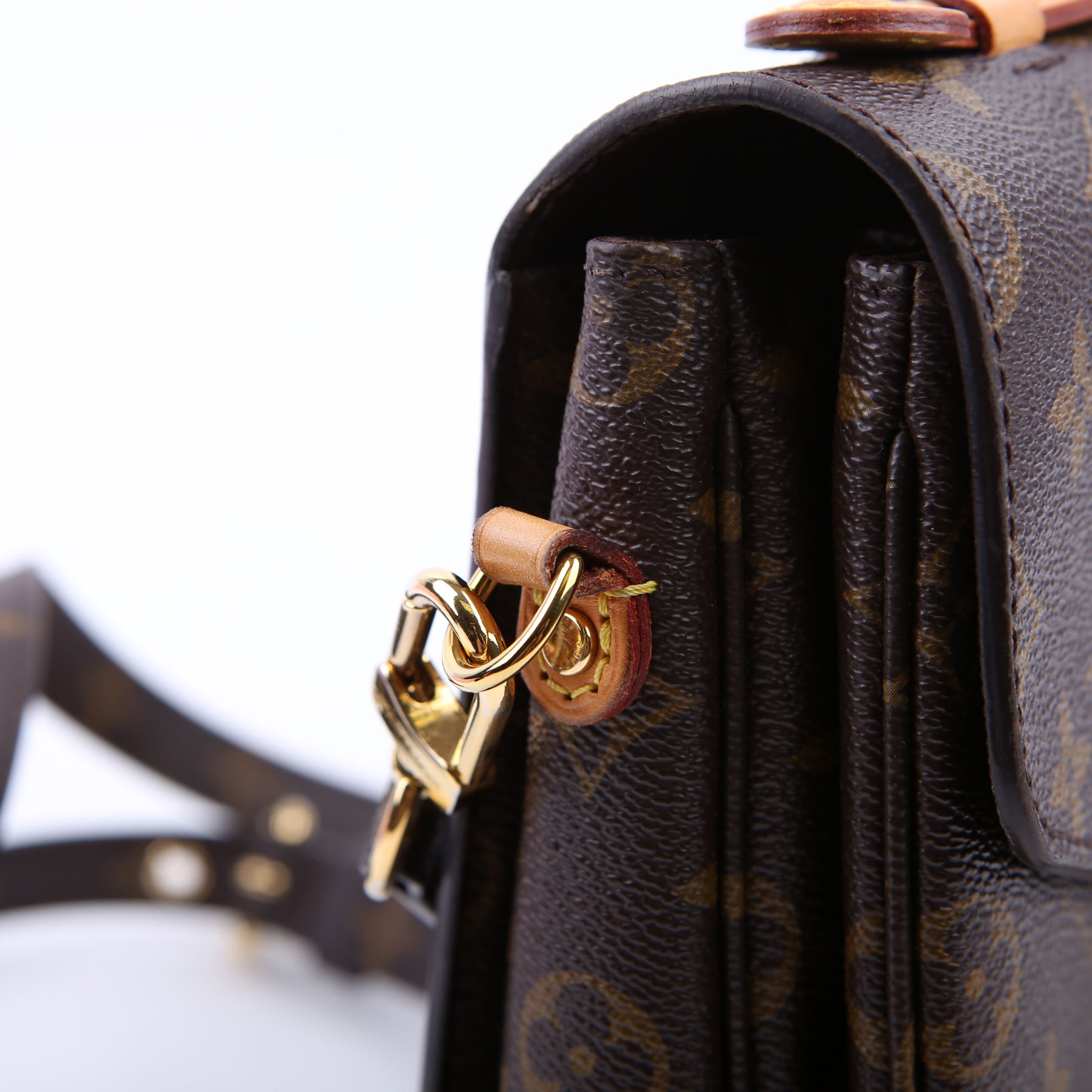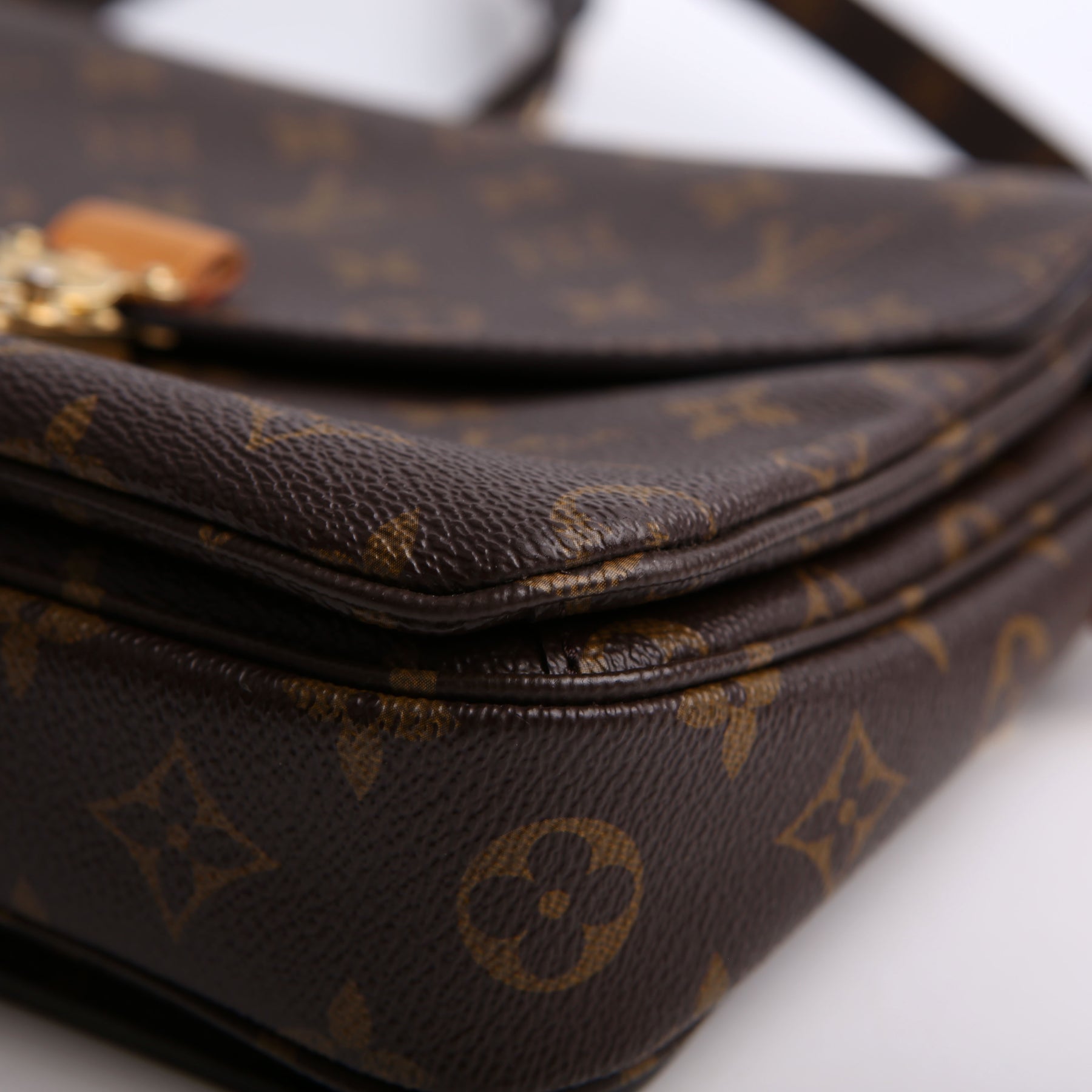 This pre-owned Louis Vuitton Pochette Metis is guaranteed 100% authentic. The exterior is in the classic Louis Vuitton Monogram coated canvas.
