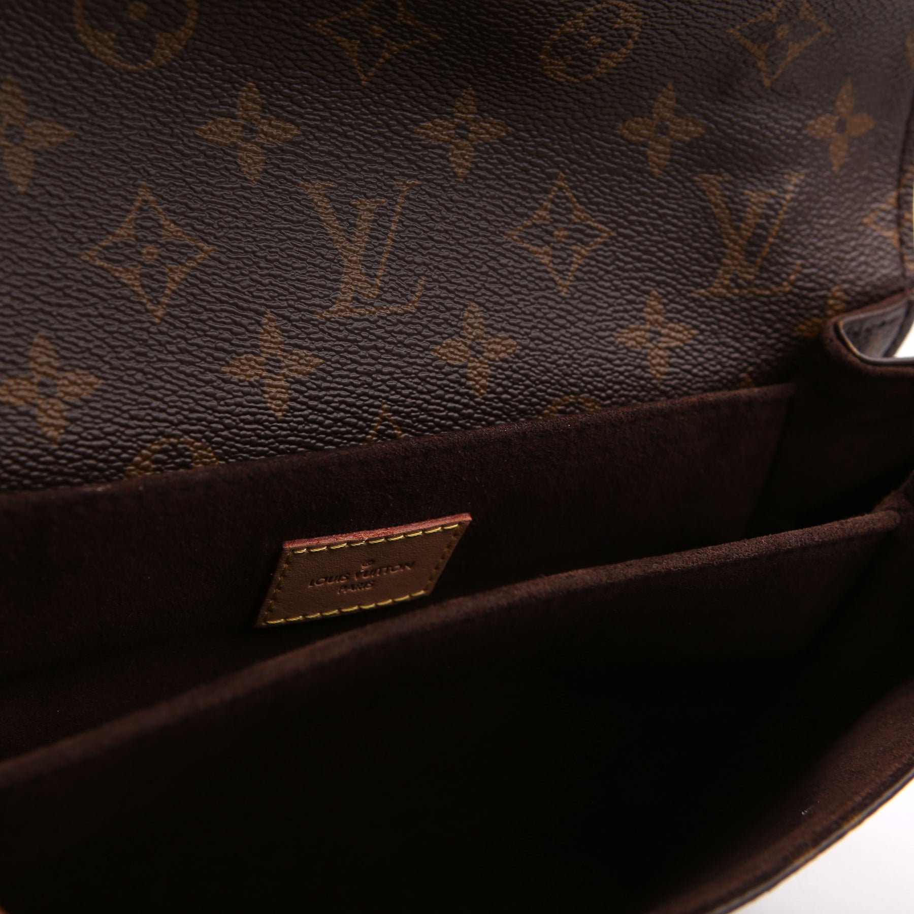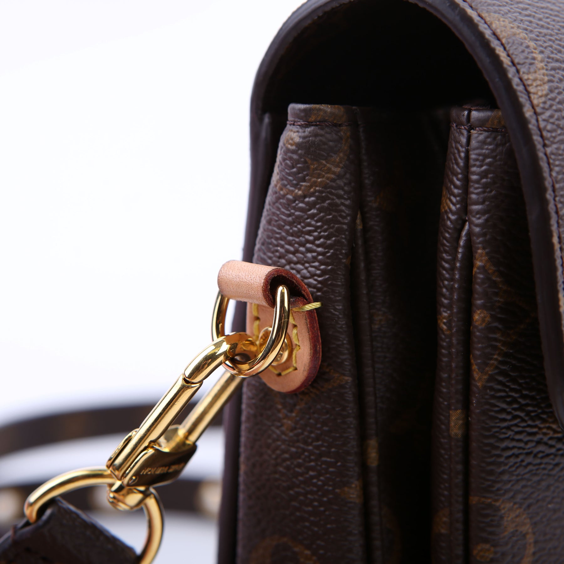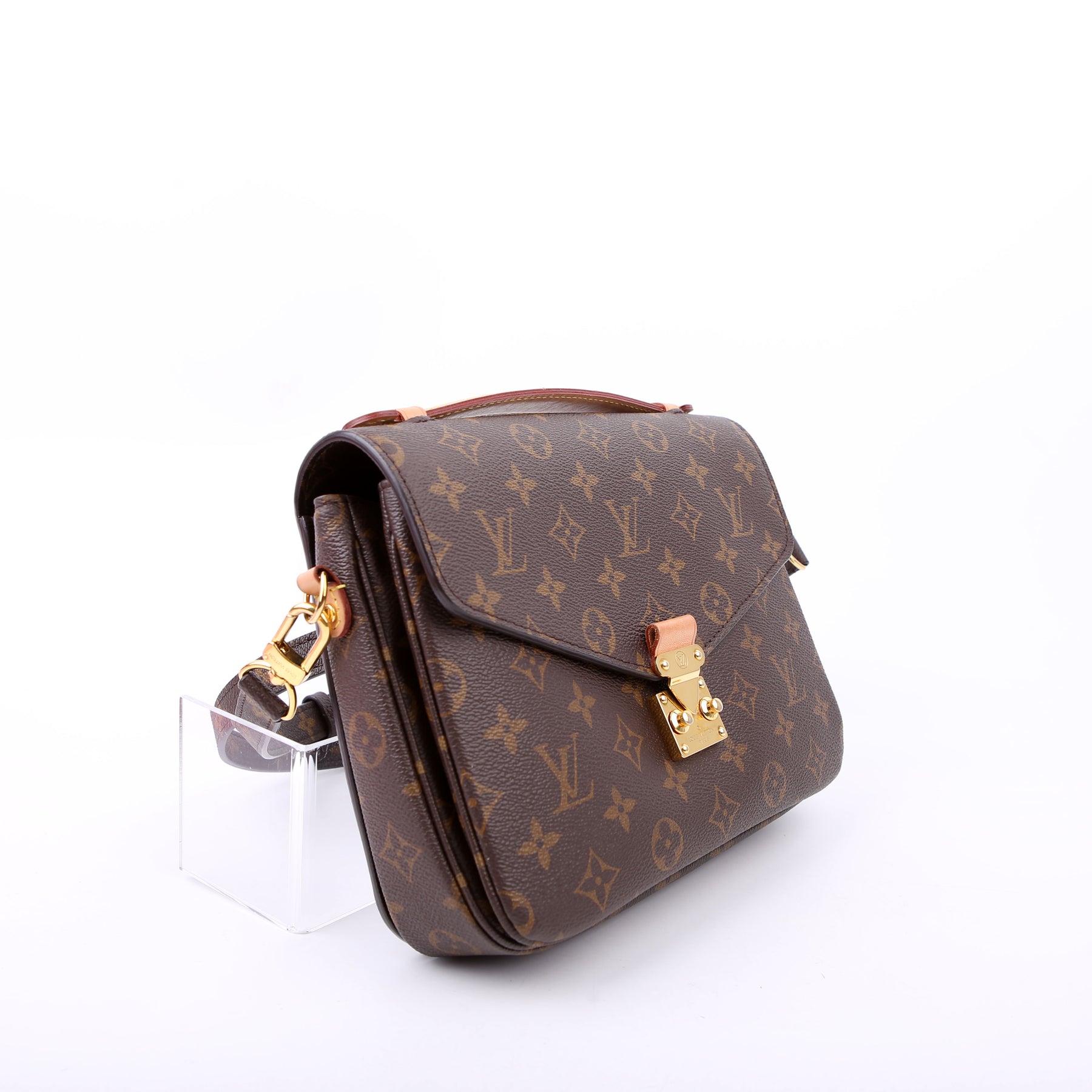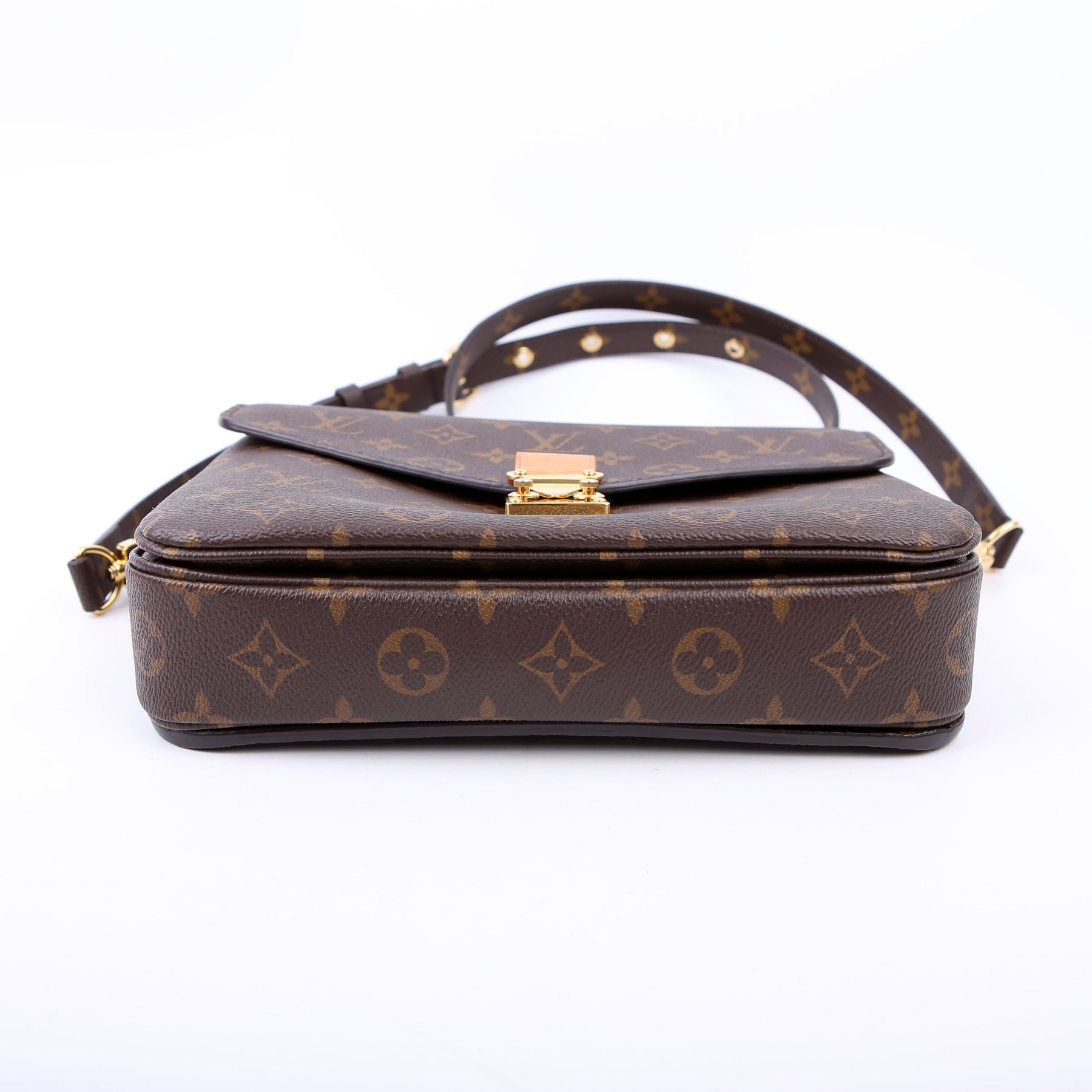 This pre-owned Louis Vuitton Pochette Metis is guaranteed 100% authentic. The exterior is in the classic Louis Vuitton Monogram coated canvas.