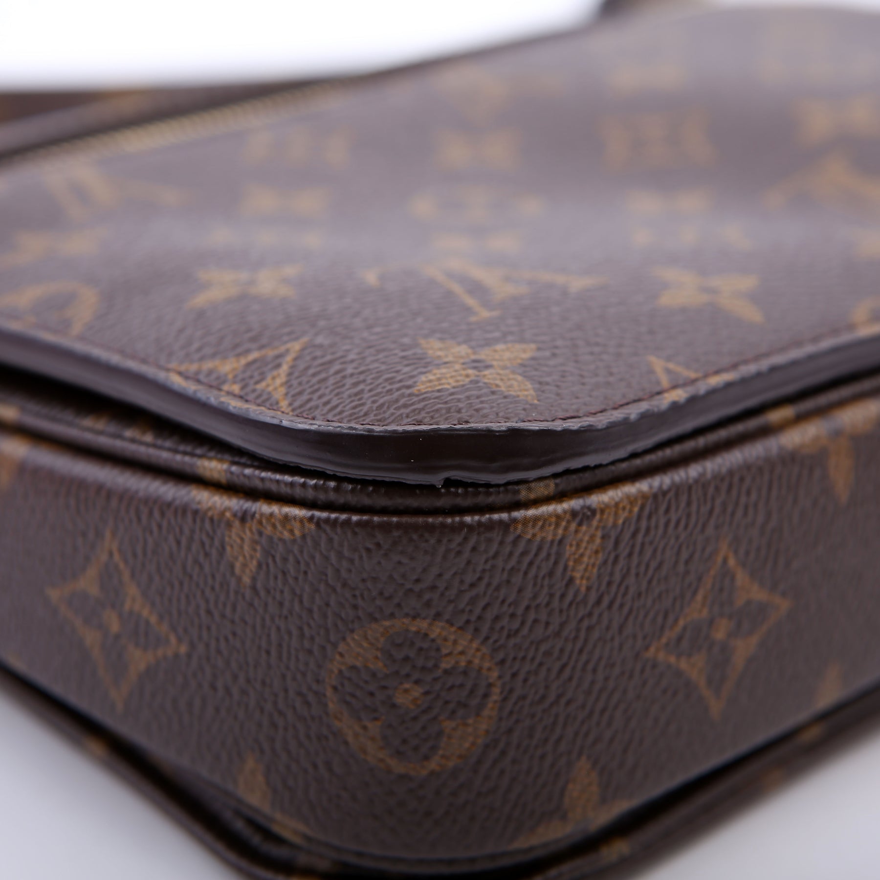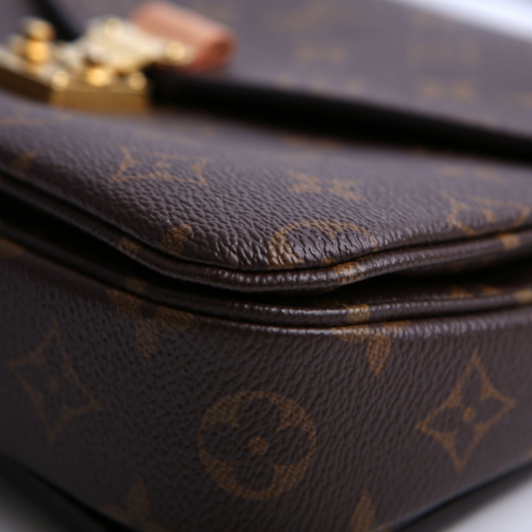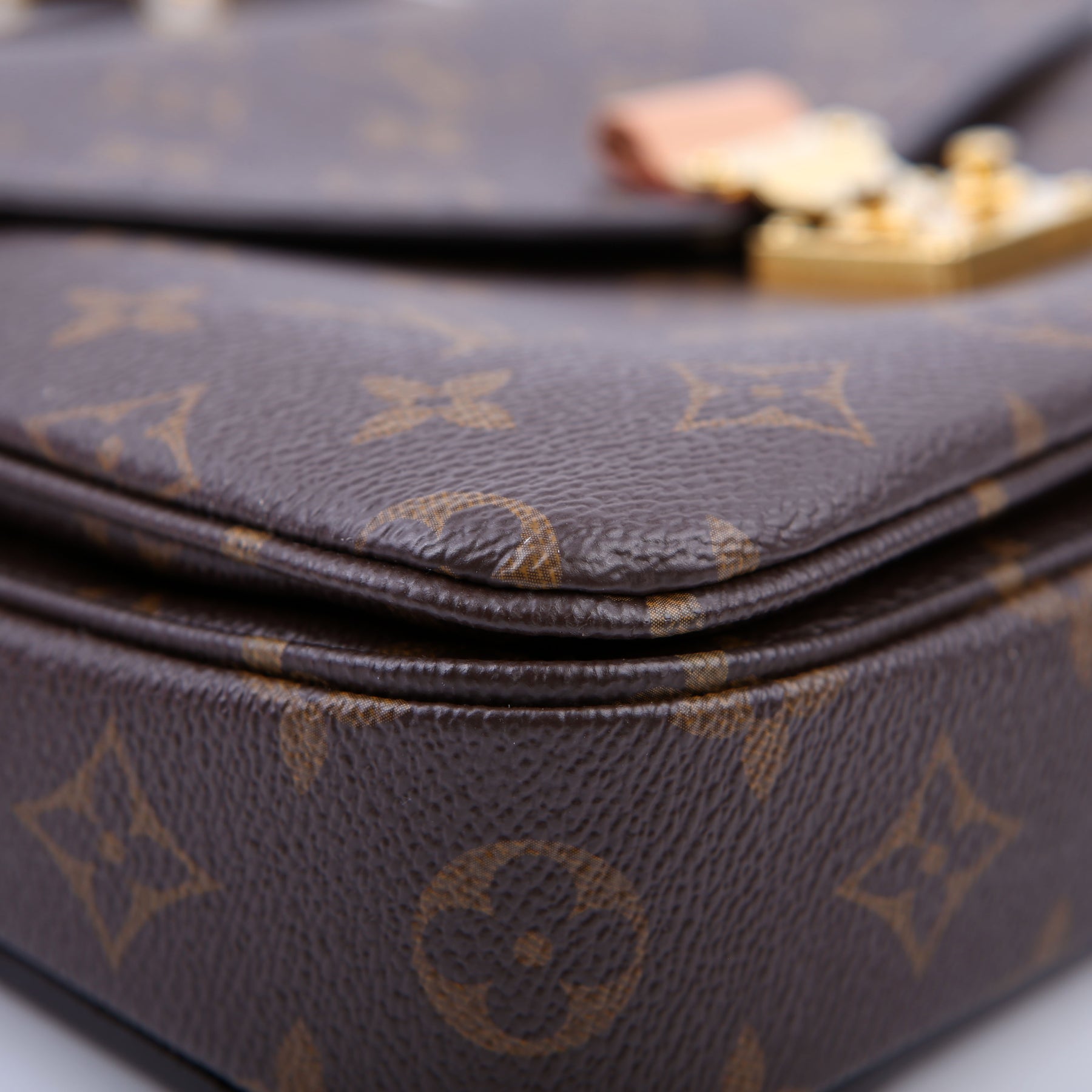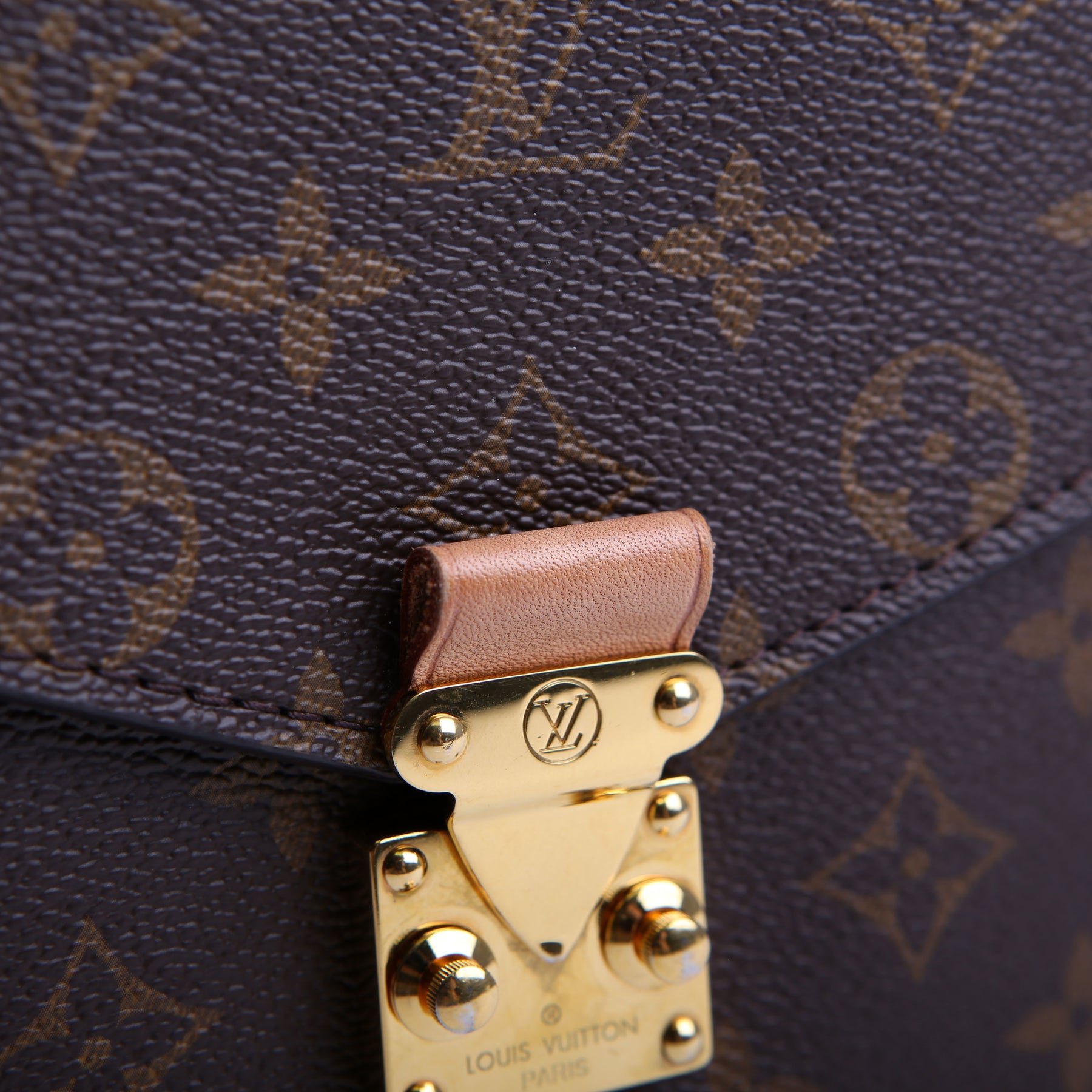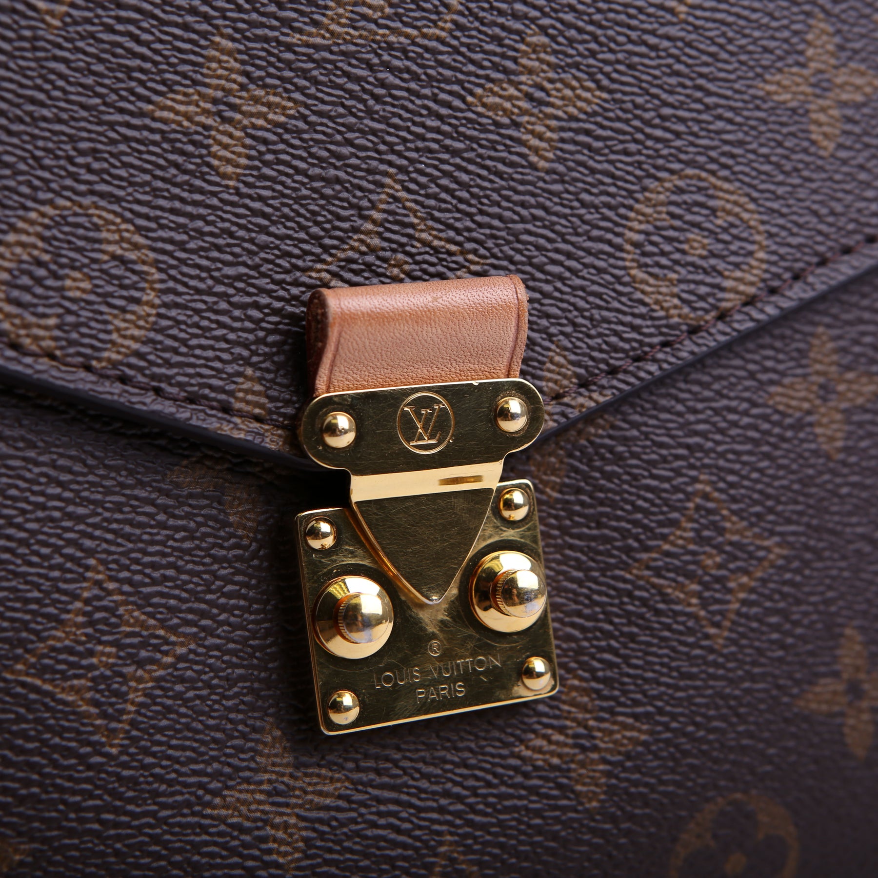 This pre-owned Louis Vuitton Pochette Metis is guaranteed 100% authentic. The exterior is in the classic Louis Vuitton Monogram coated canvas.