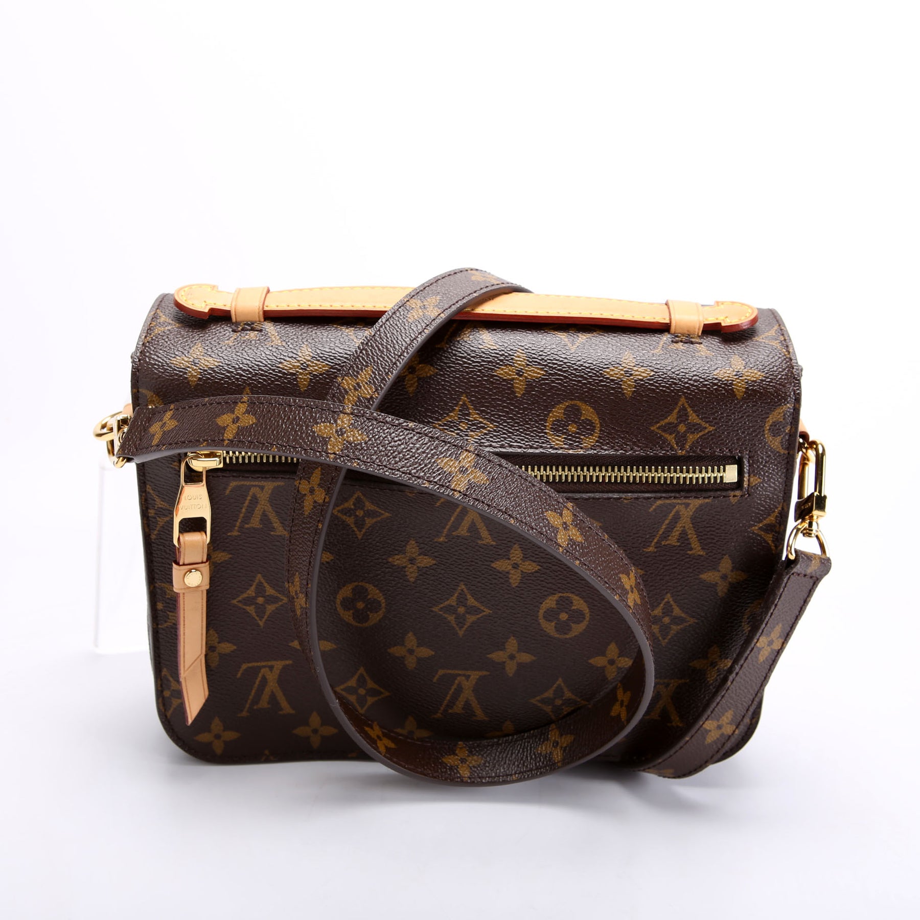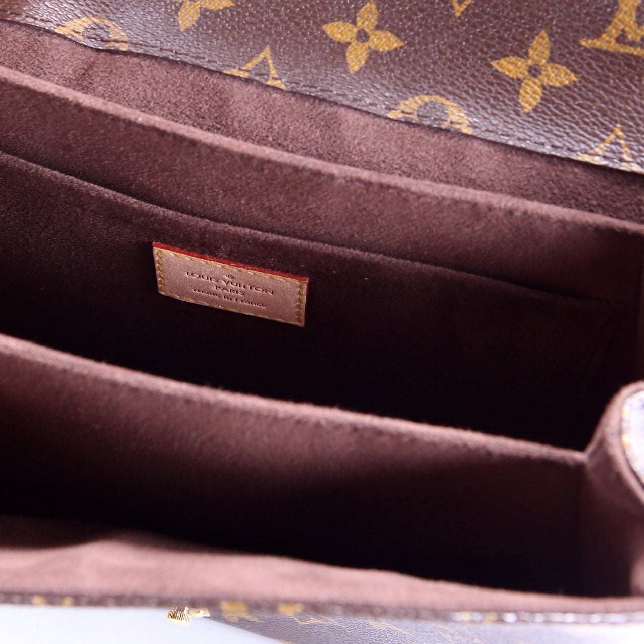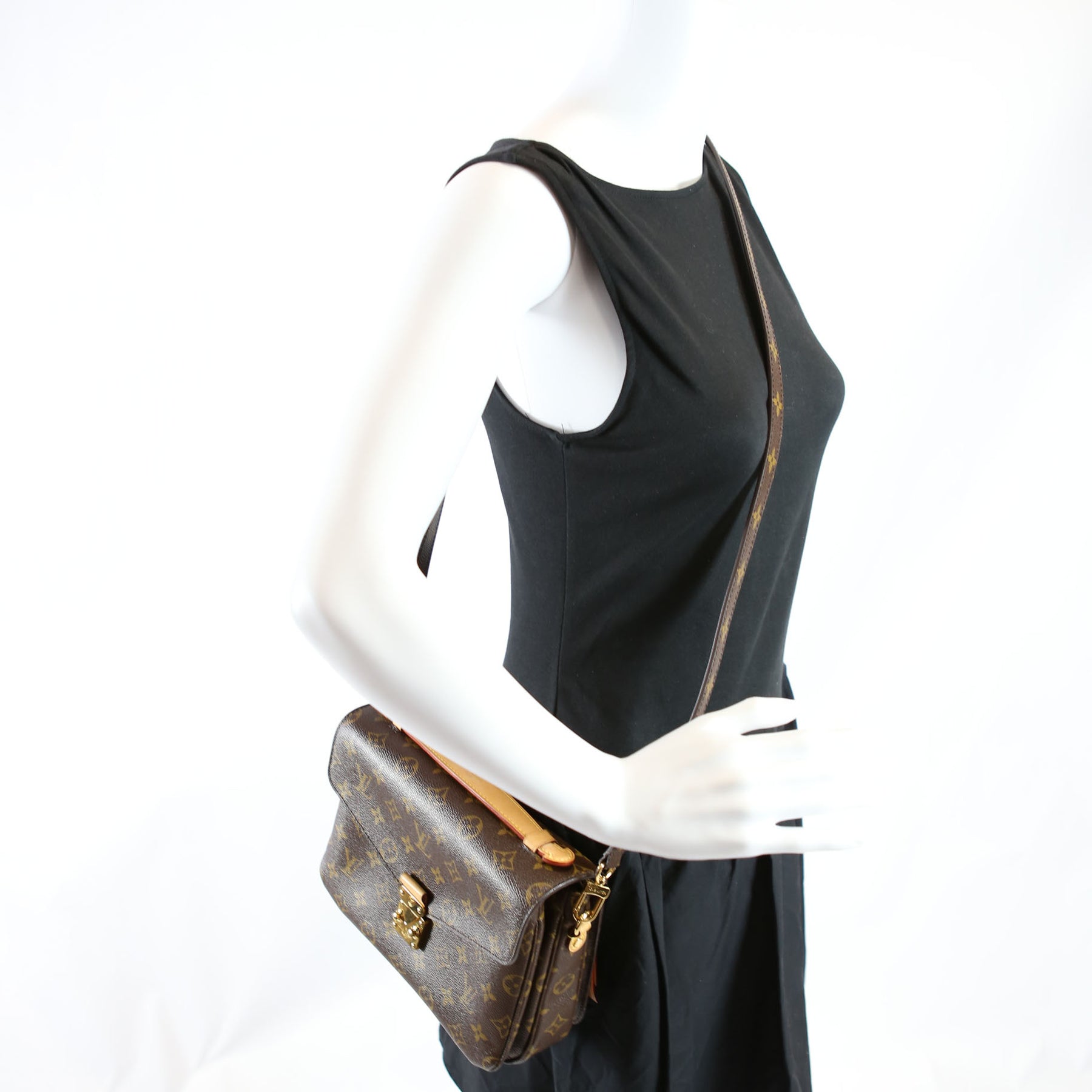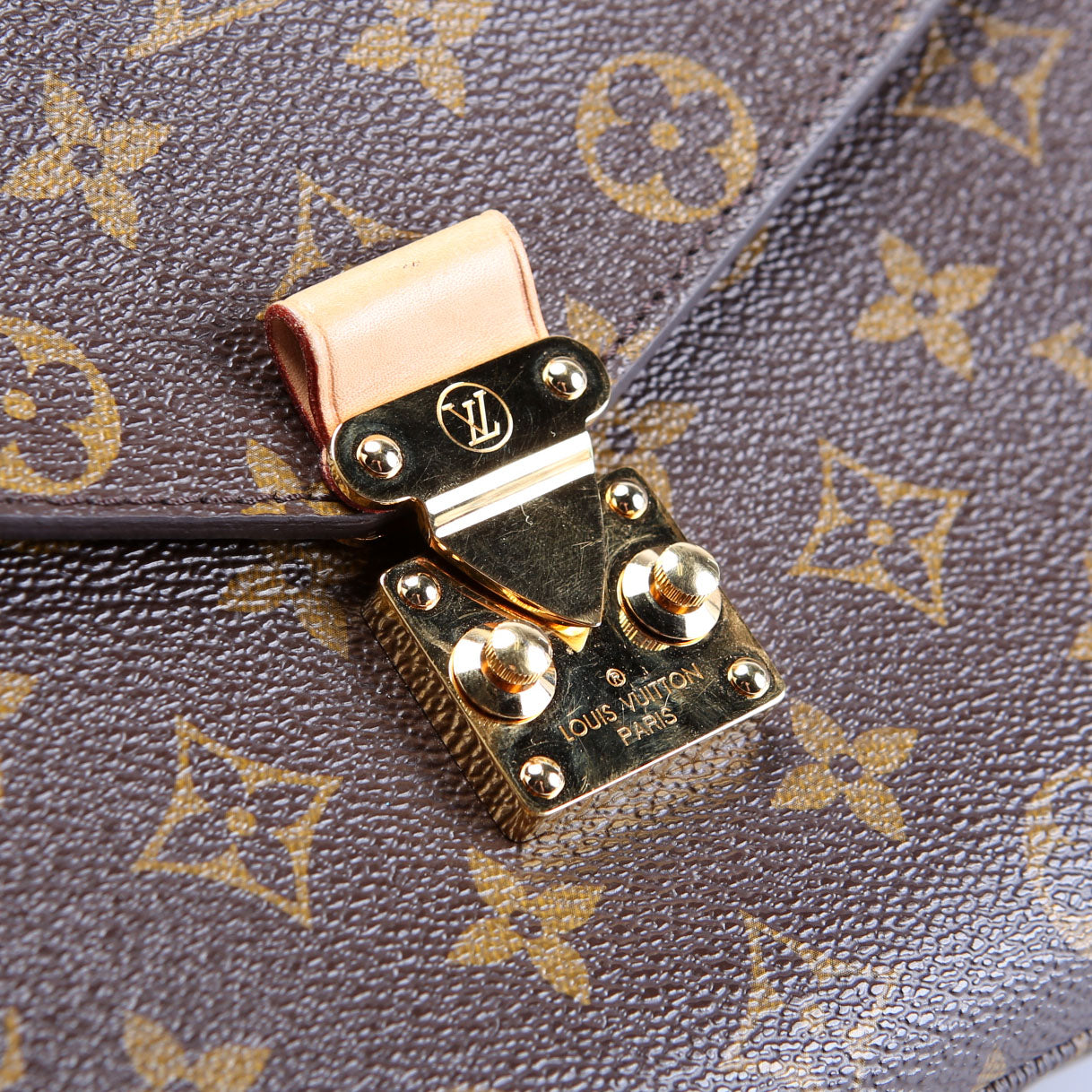 This pre-owned Louis Vuitton Pochette Metis Monogram is guaranteed 100% authentic. The exterior is in the classic Louis Vuitton Monogram coated canvas.
