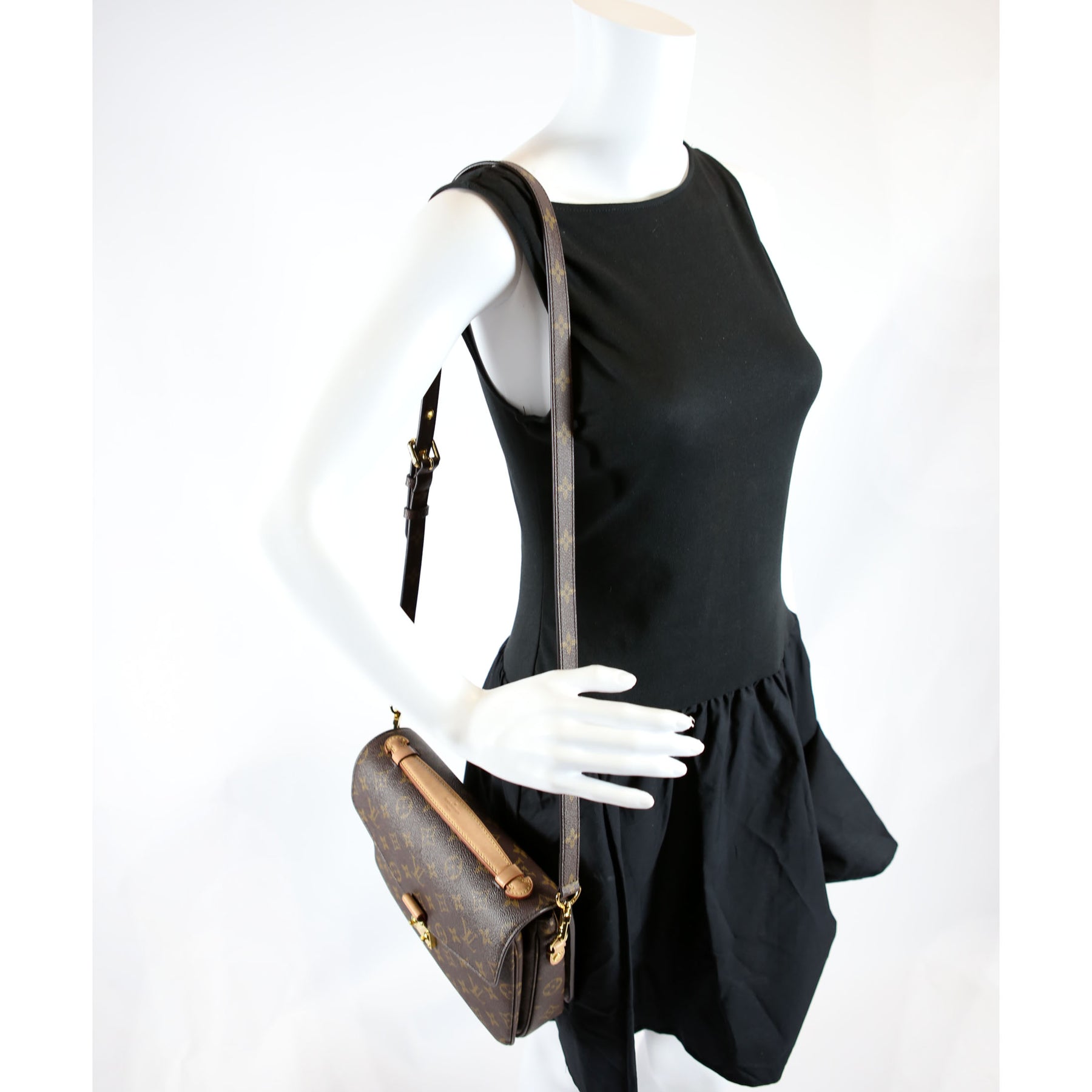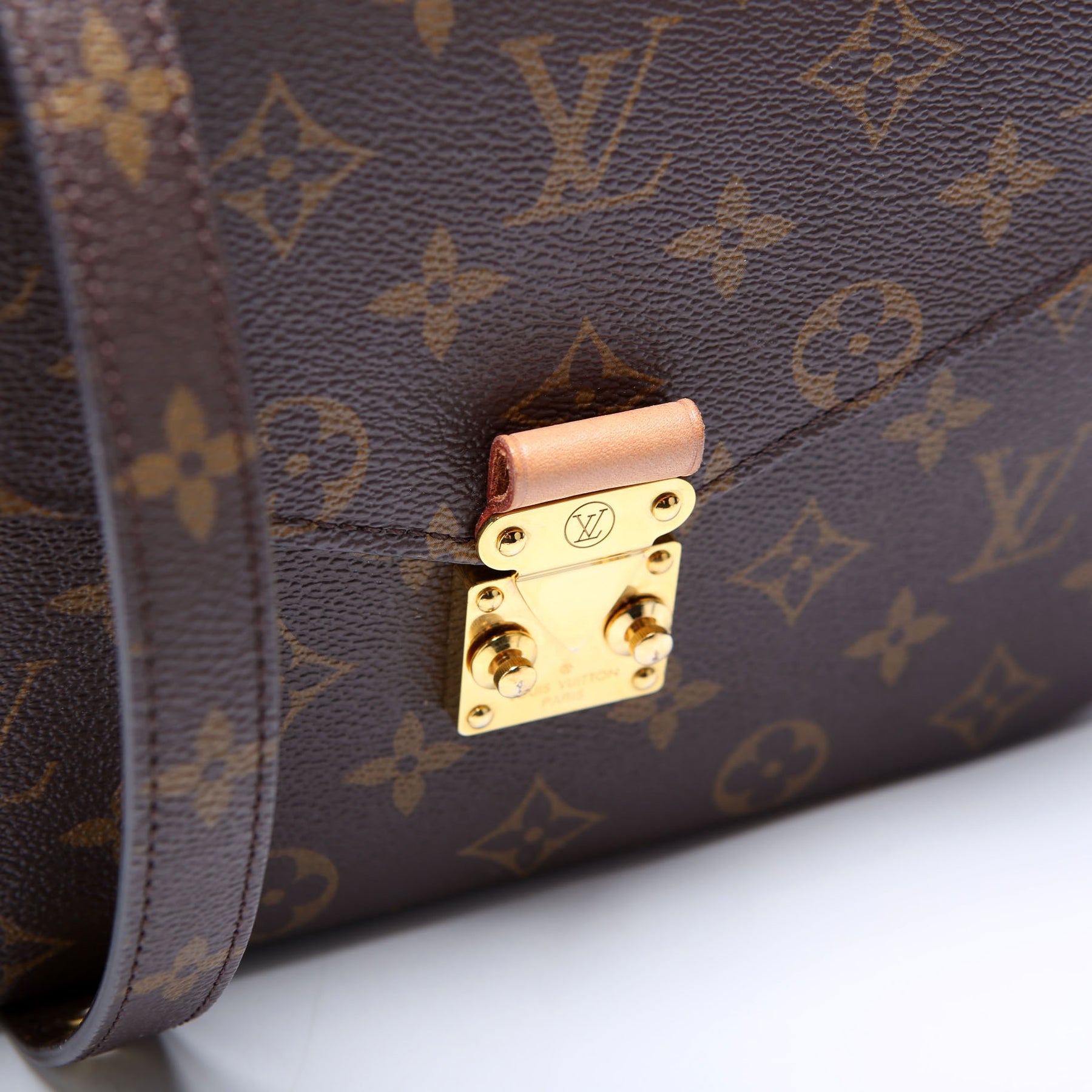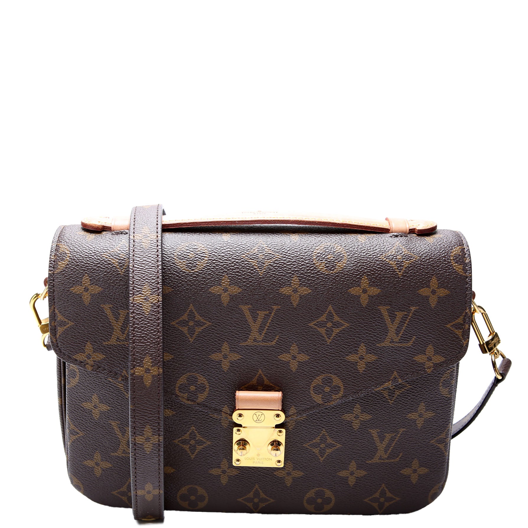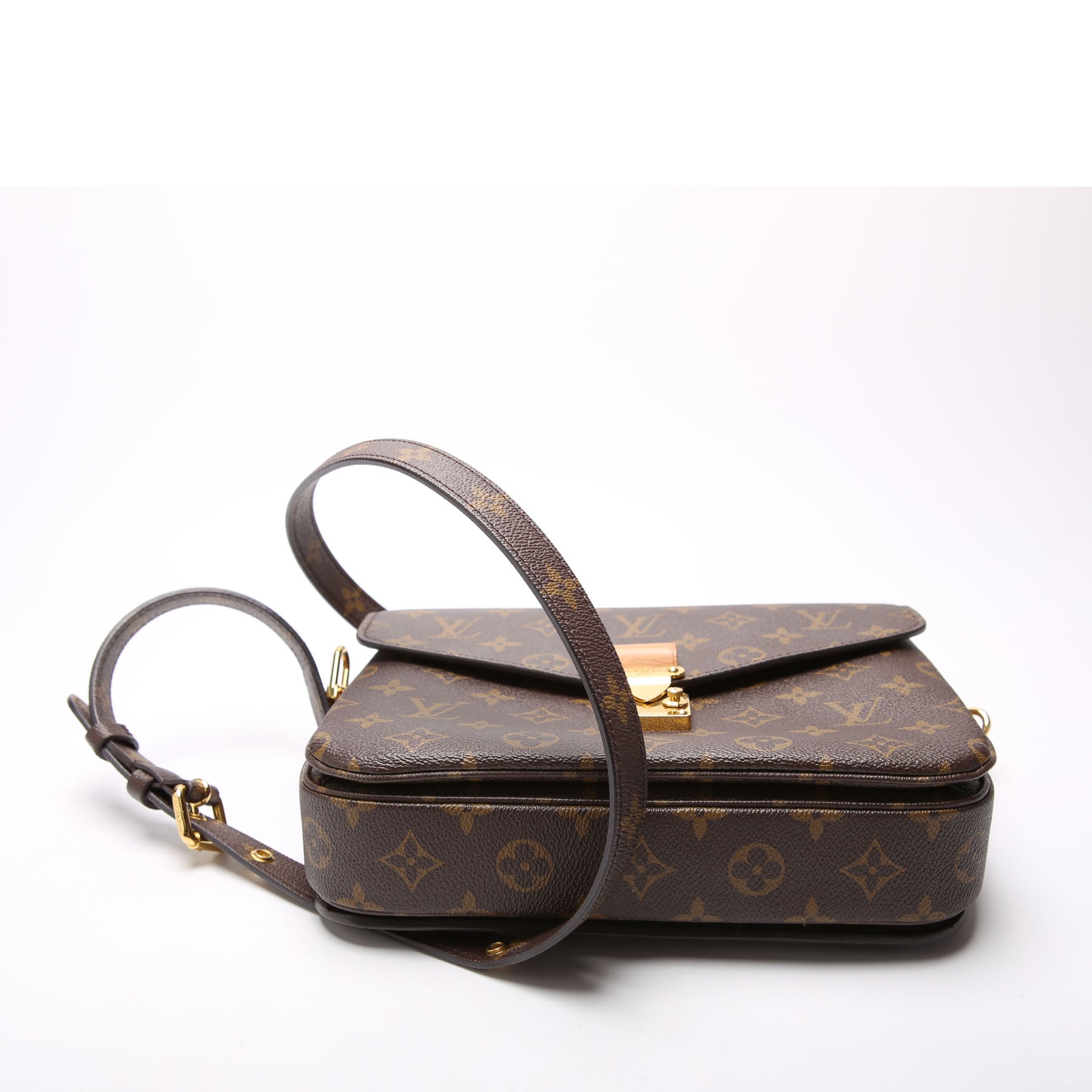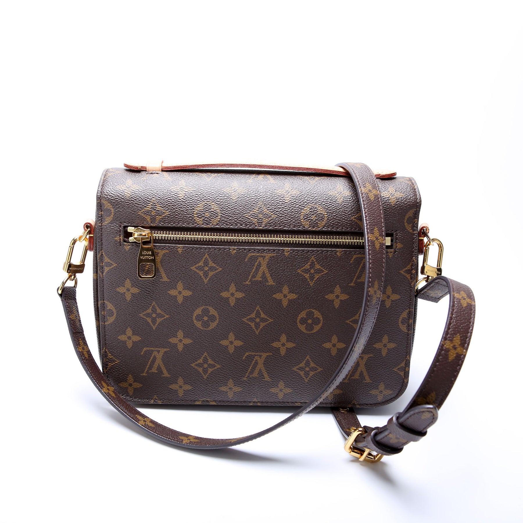 This pre-owned Louis Vuitton Pochette Metis is guaranteed 100% authentic. The exterior is in the classic Louis Vuitton Coated Canvas Monogram.