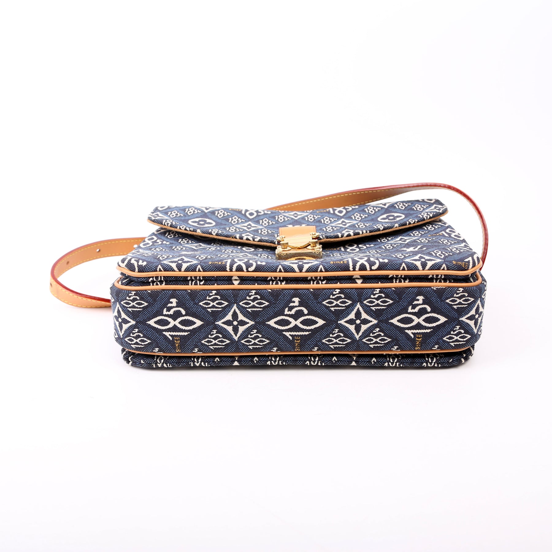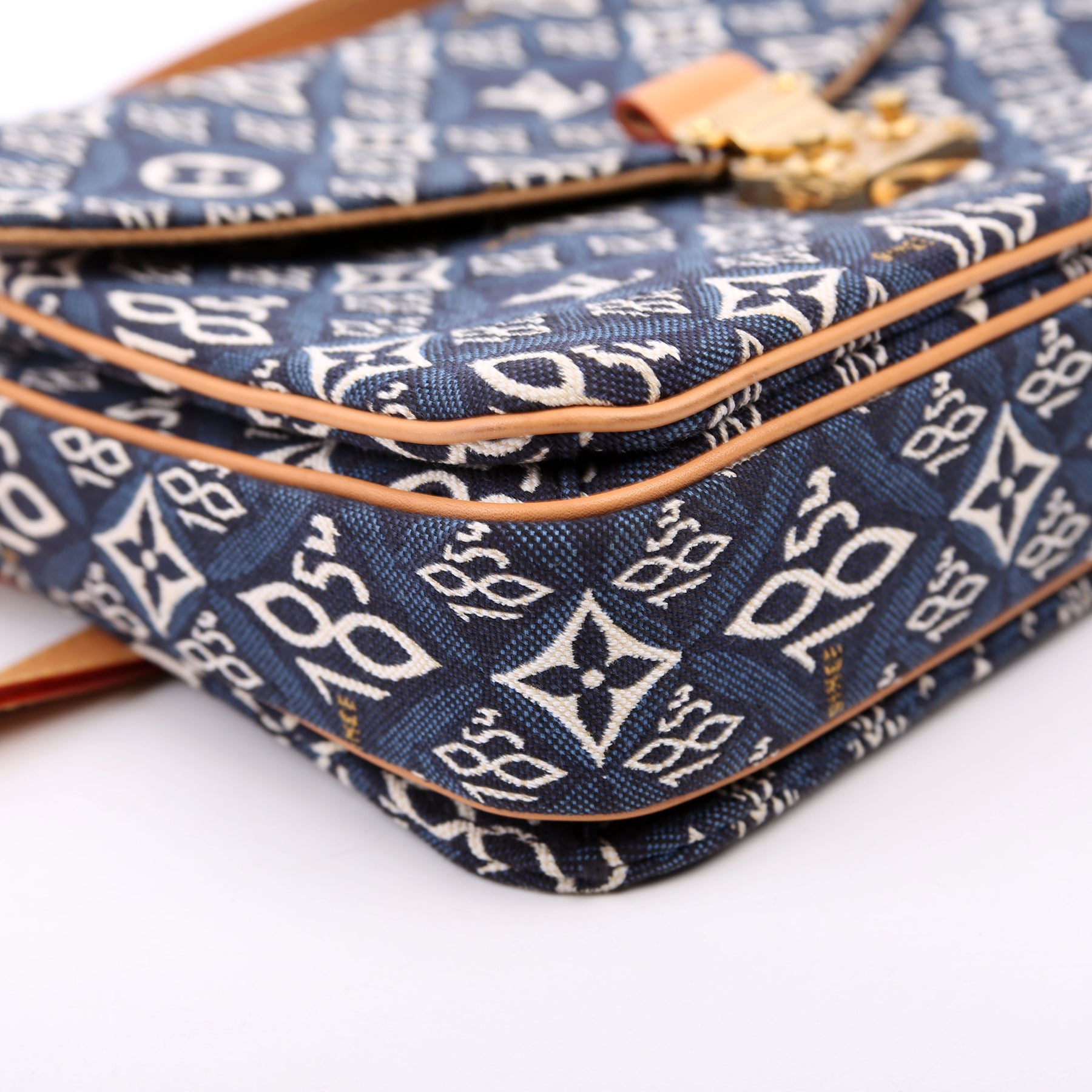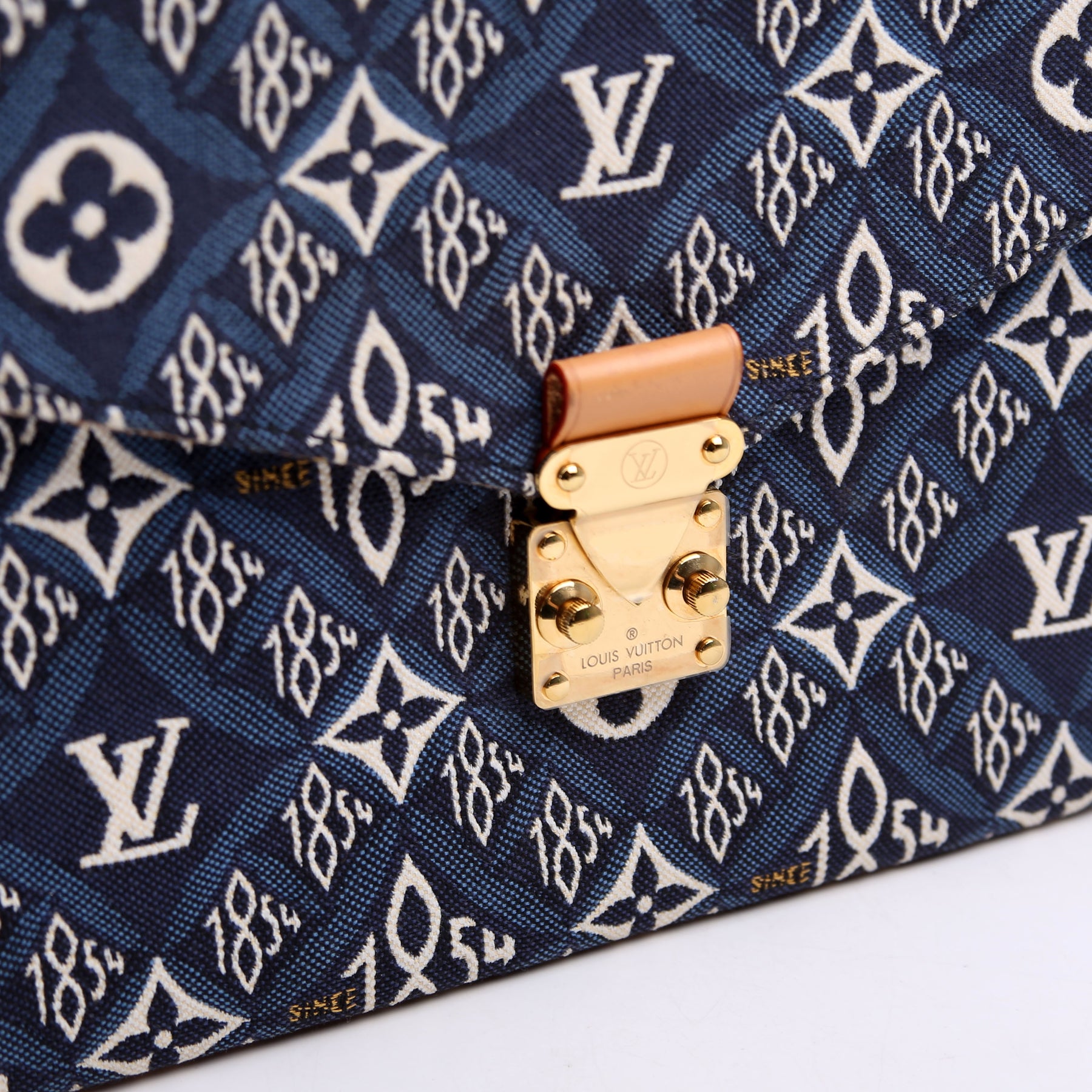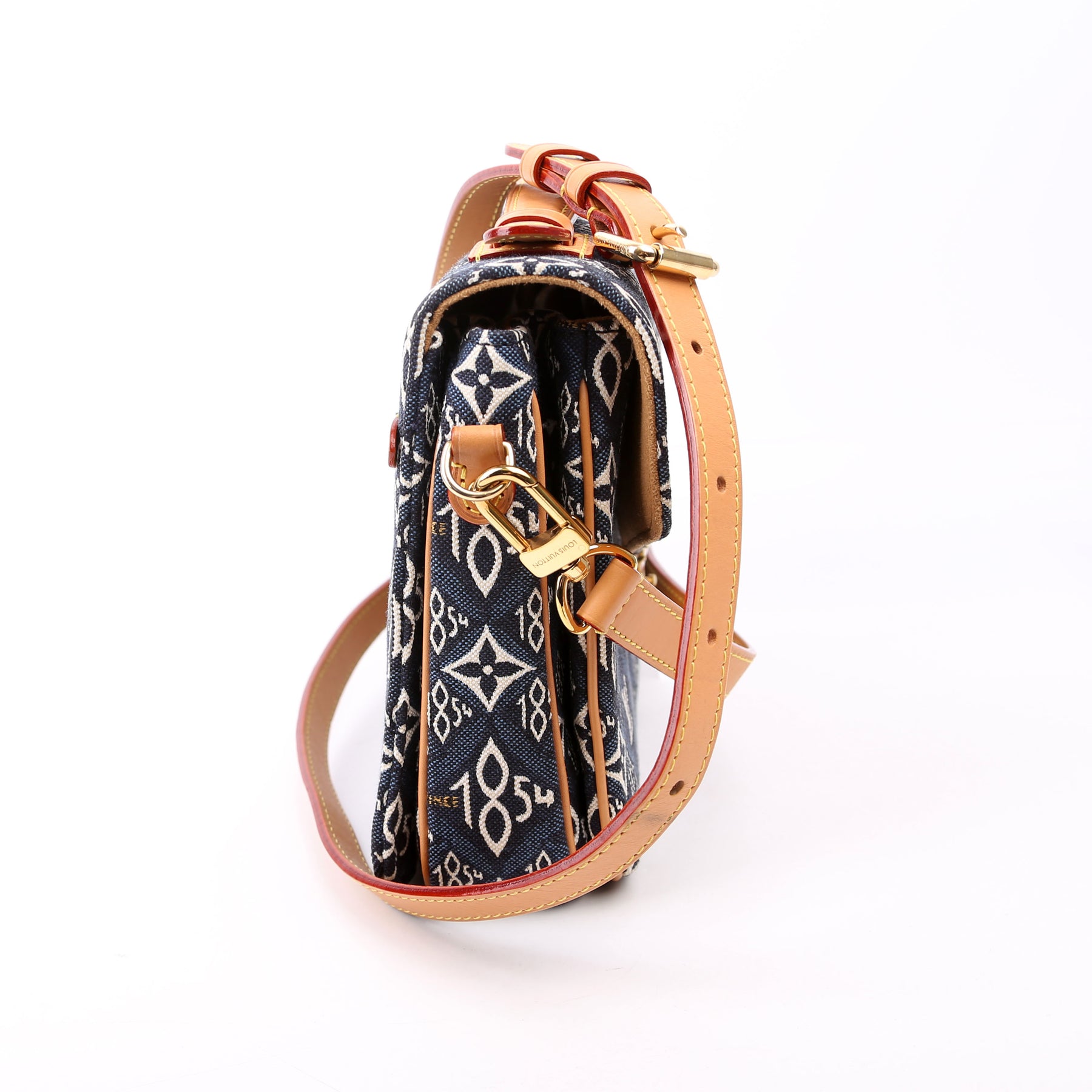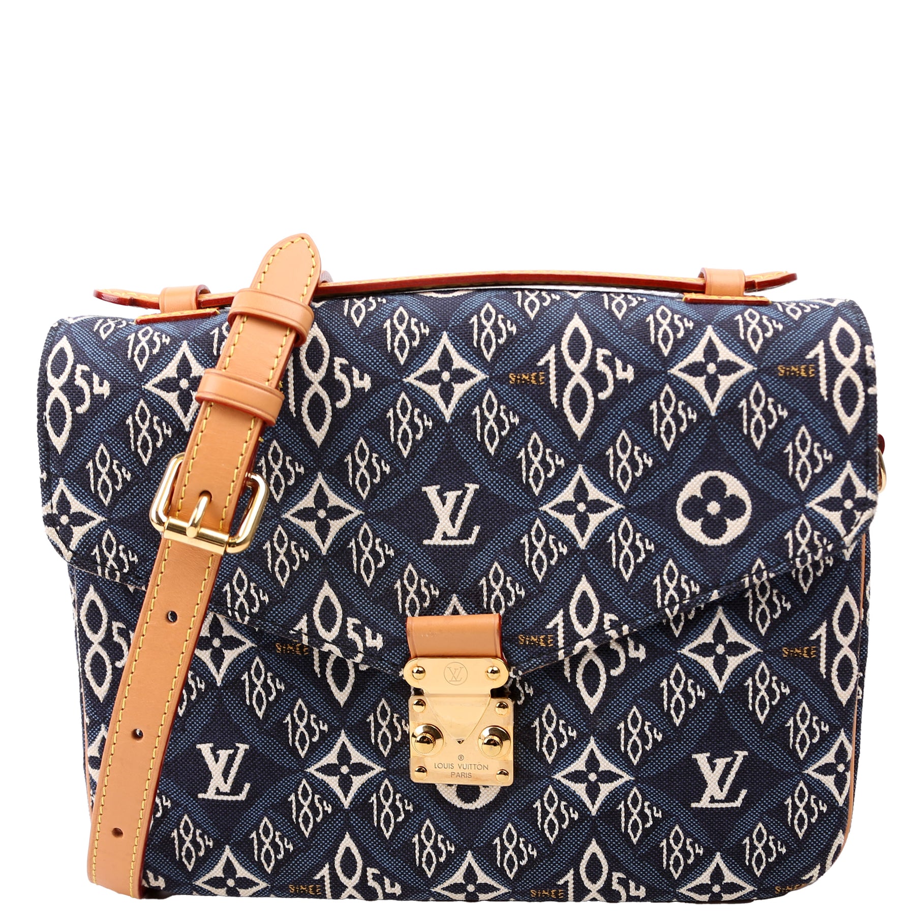 This pre-owned Louis Vuitton Pochette Metis is guaranteed 100% authentic. The exterior is in the Louis Vuitton Since 1854 Jacquard canvas.
