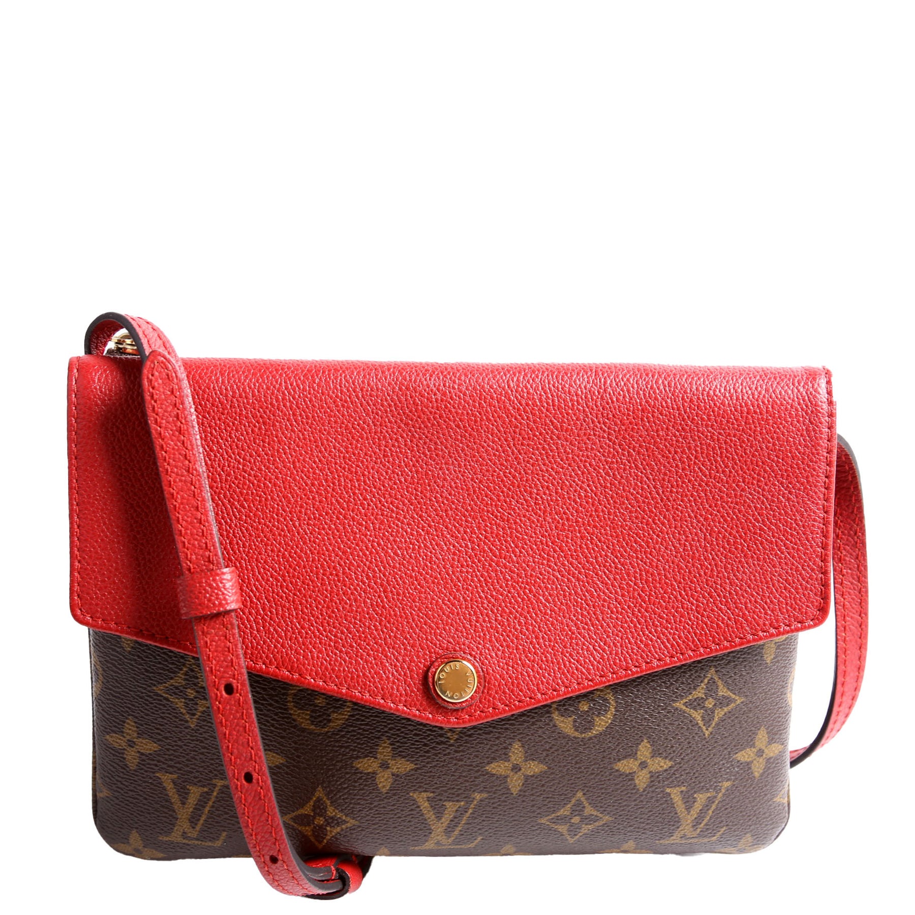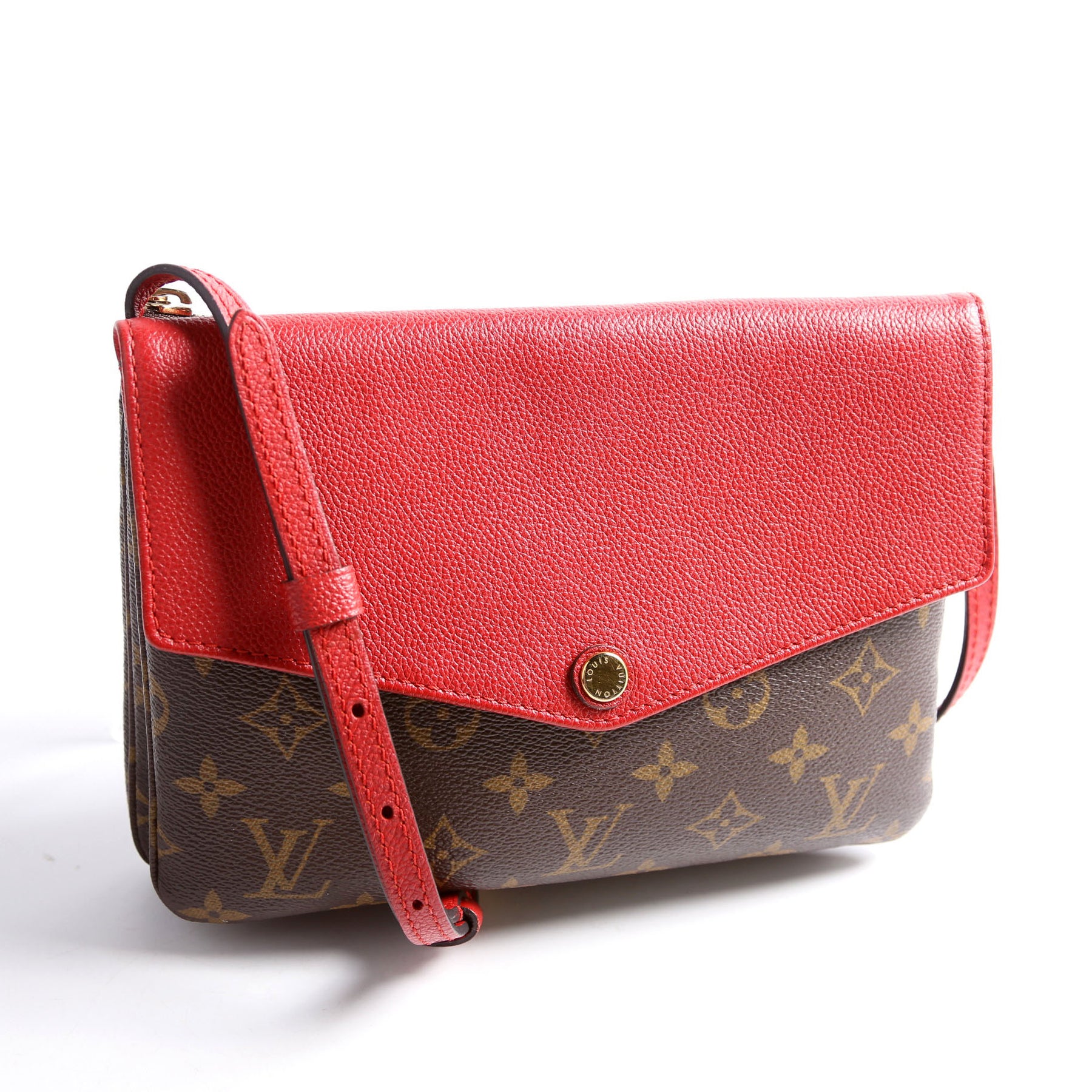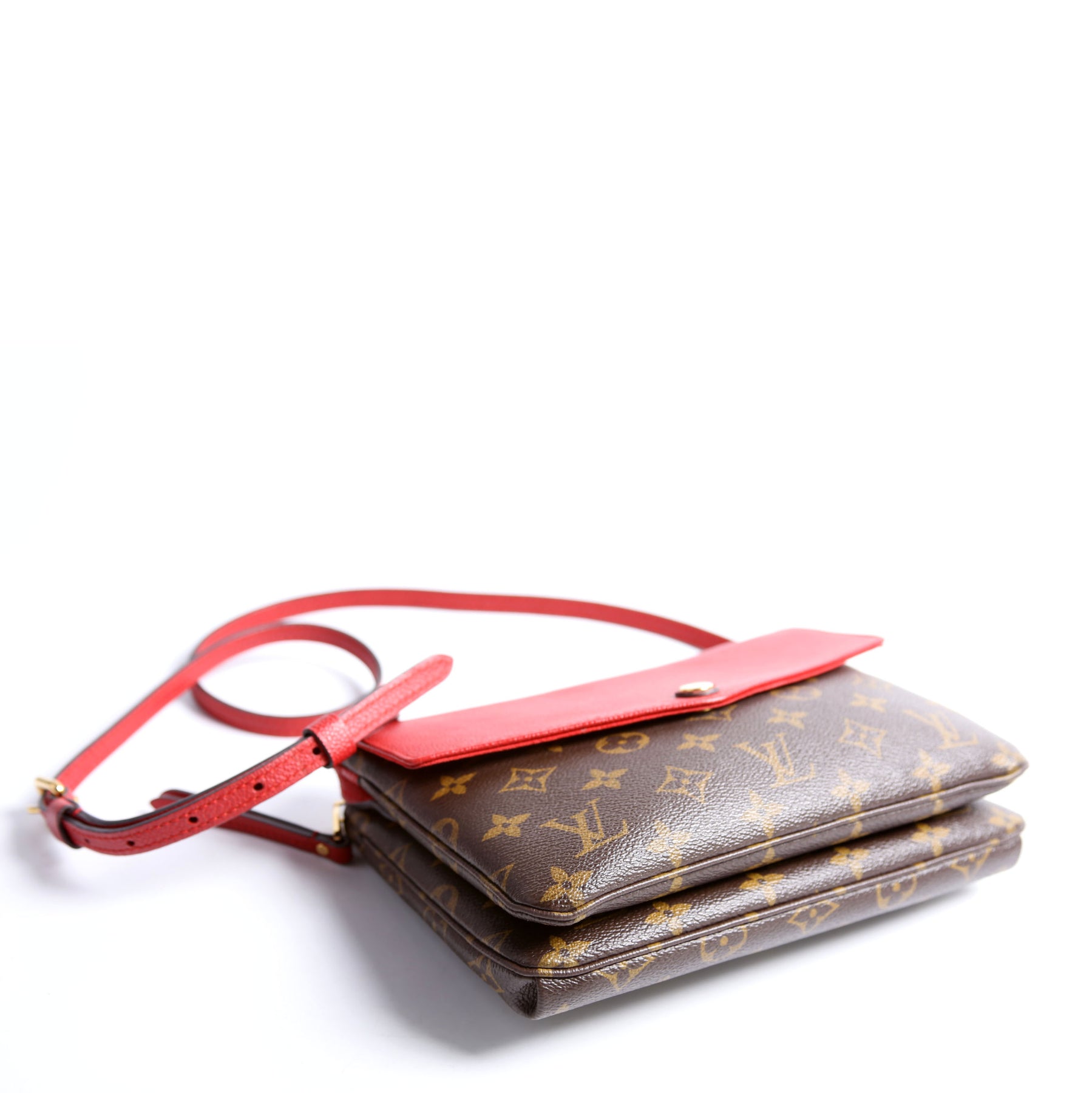 This pre-owned Louis Vuitton Pochette Twice is guaranteed 100% authentic. The exterior is in the classic Louis Vuitton Coated Canvas Monogram