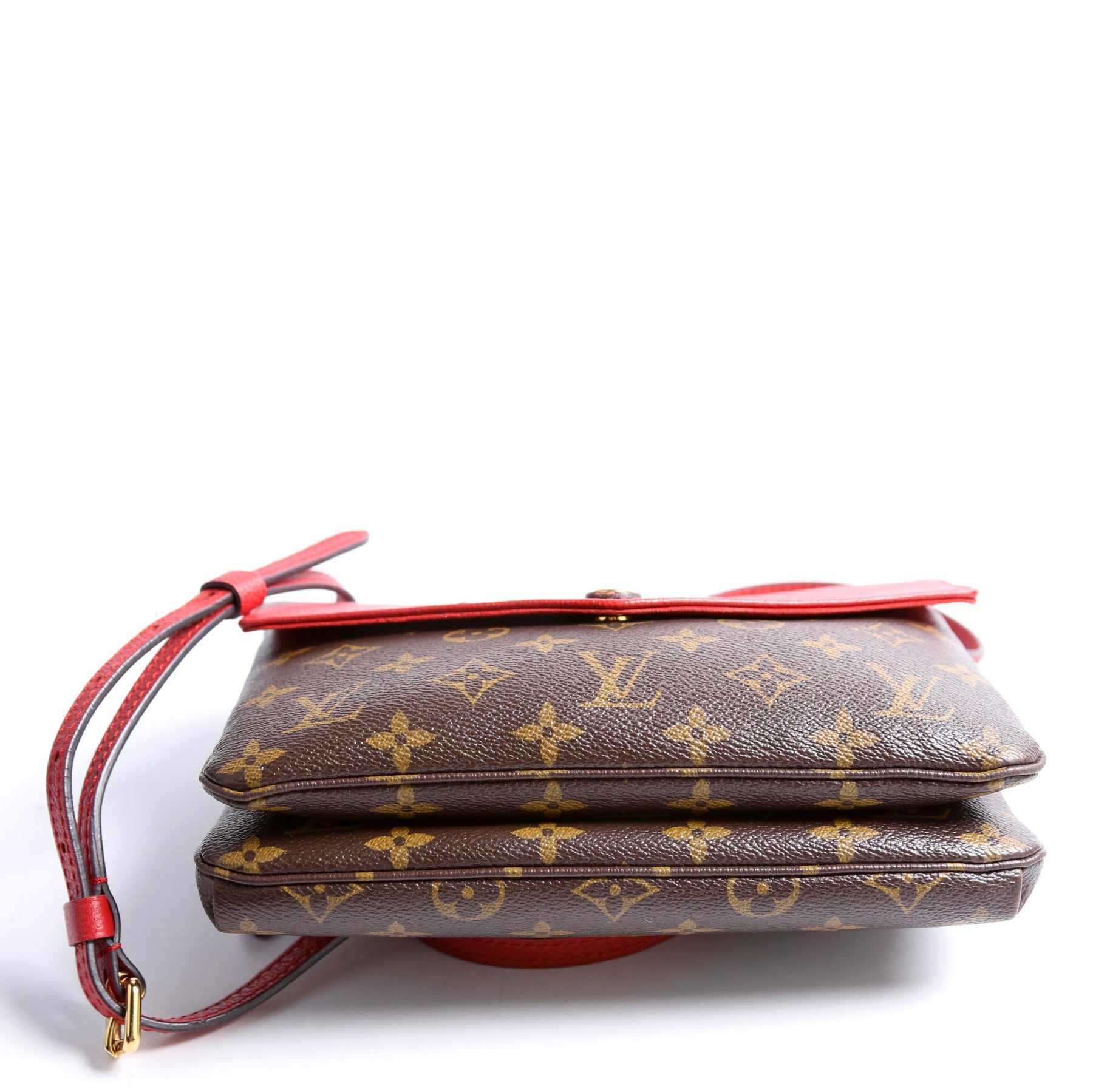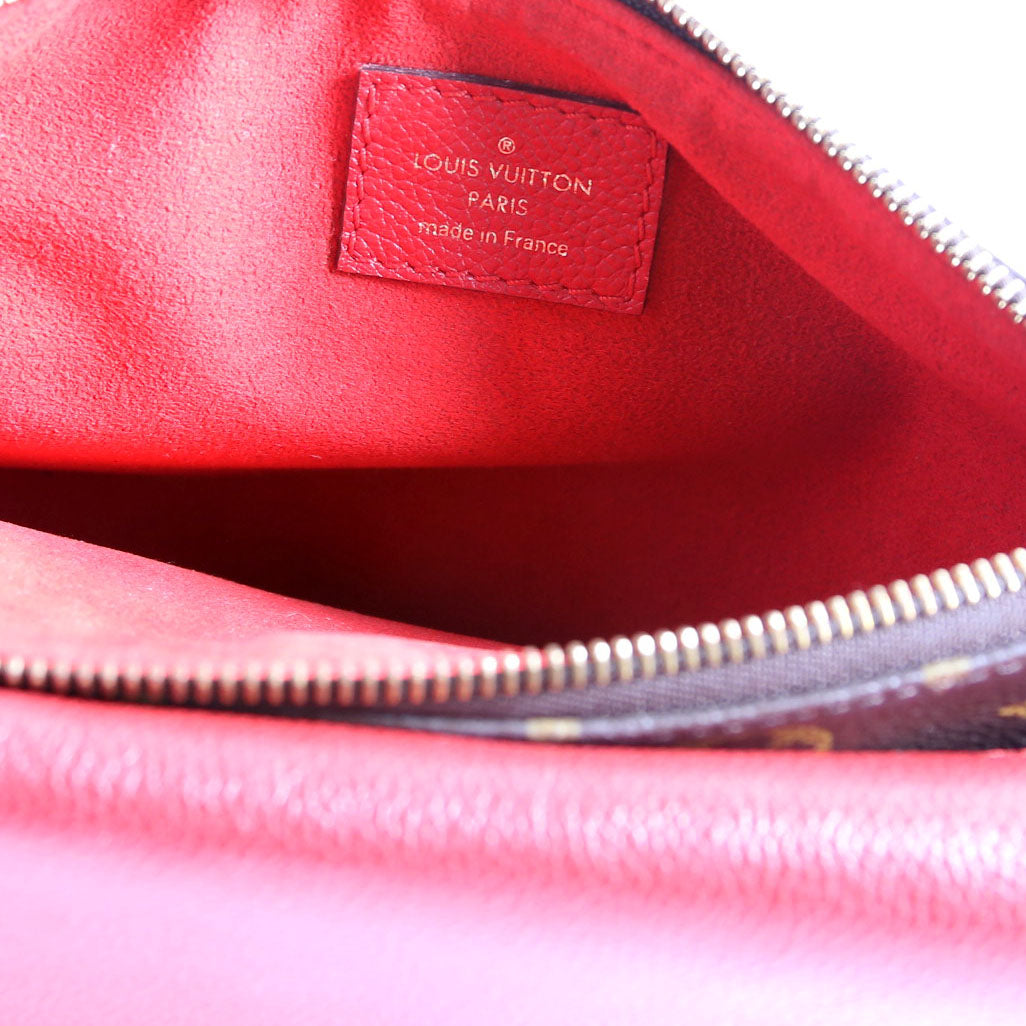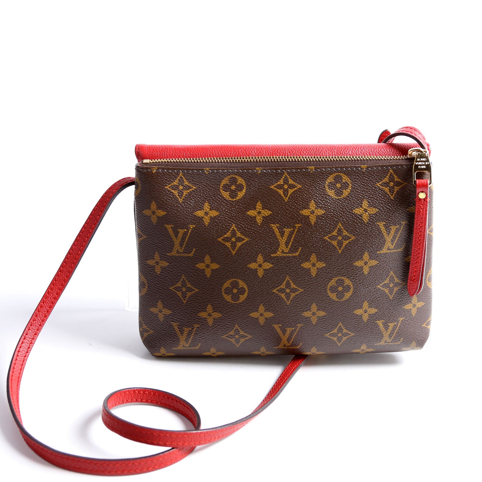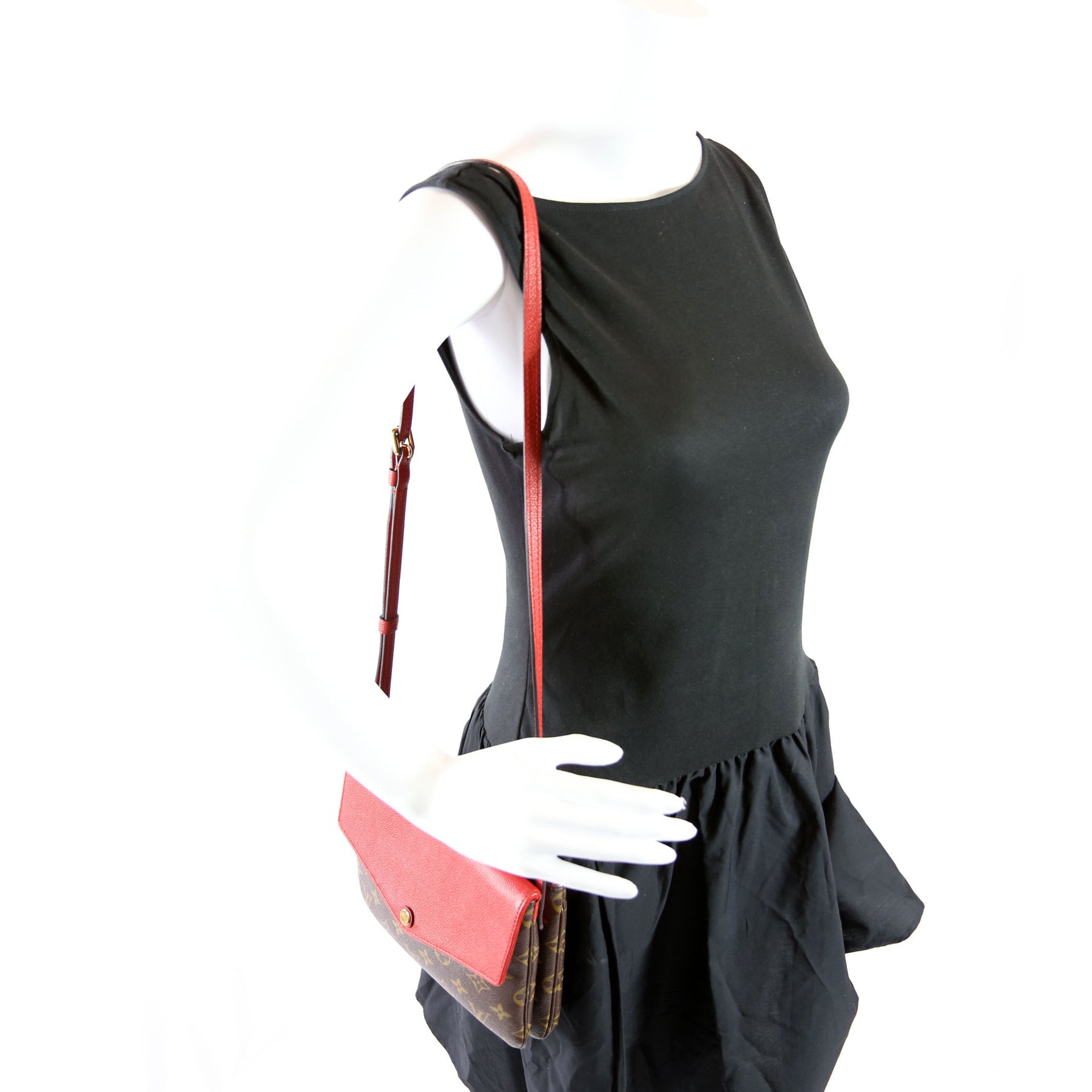 This pre-owned Louis Vuitton Pochette Twice is guaranteed 100% authentic. The exterior is in the classic Louis Vuitton Coated Canvas Monogram