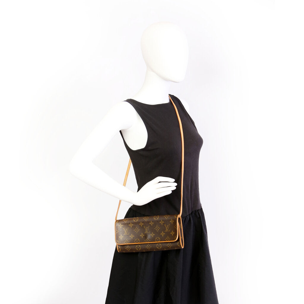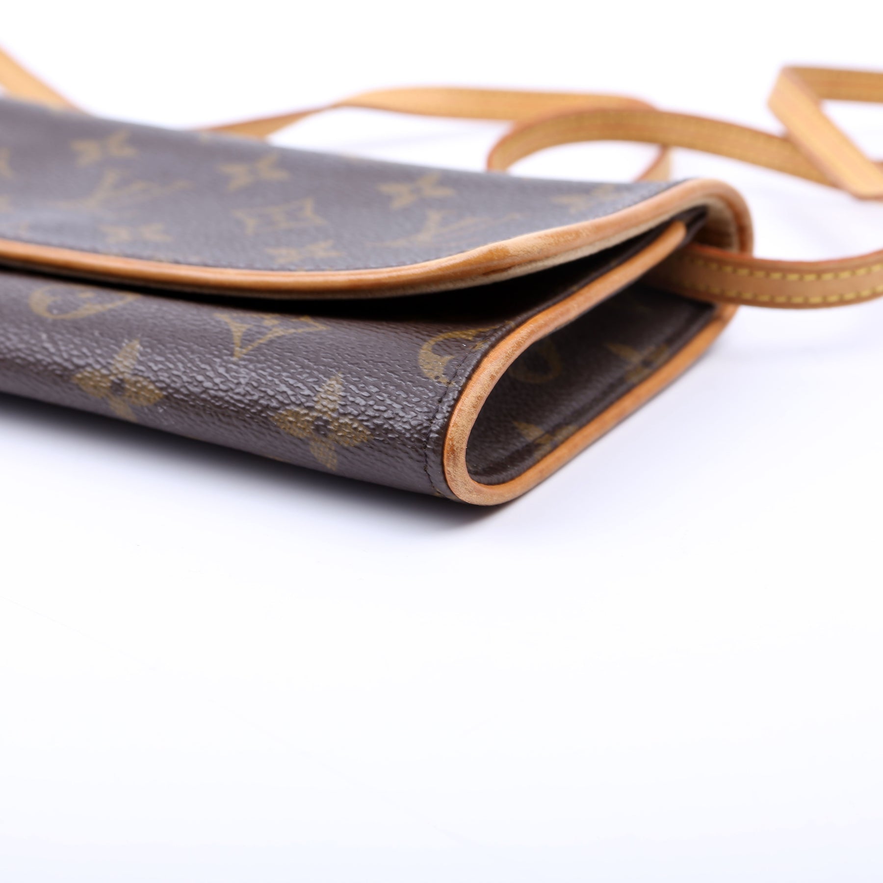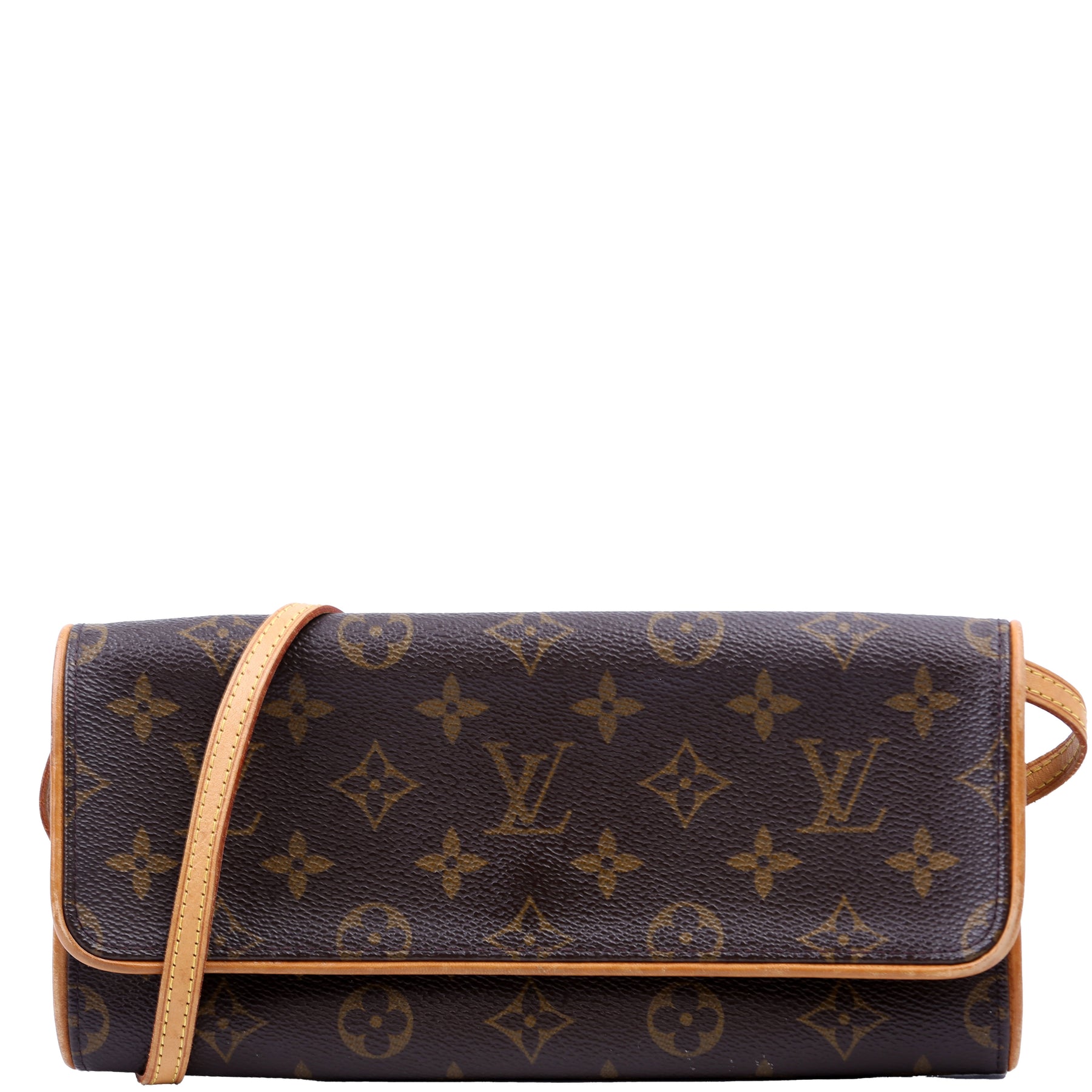 This pre-owned Louis Vuitton Pochette Twin GM is guaranteed 100% authentic. The exterior is in the classic Louis Vuitton Monogram coated canvas.