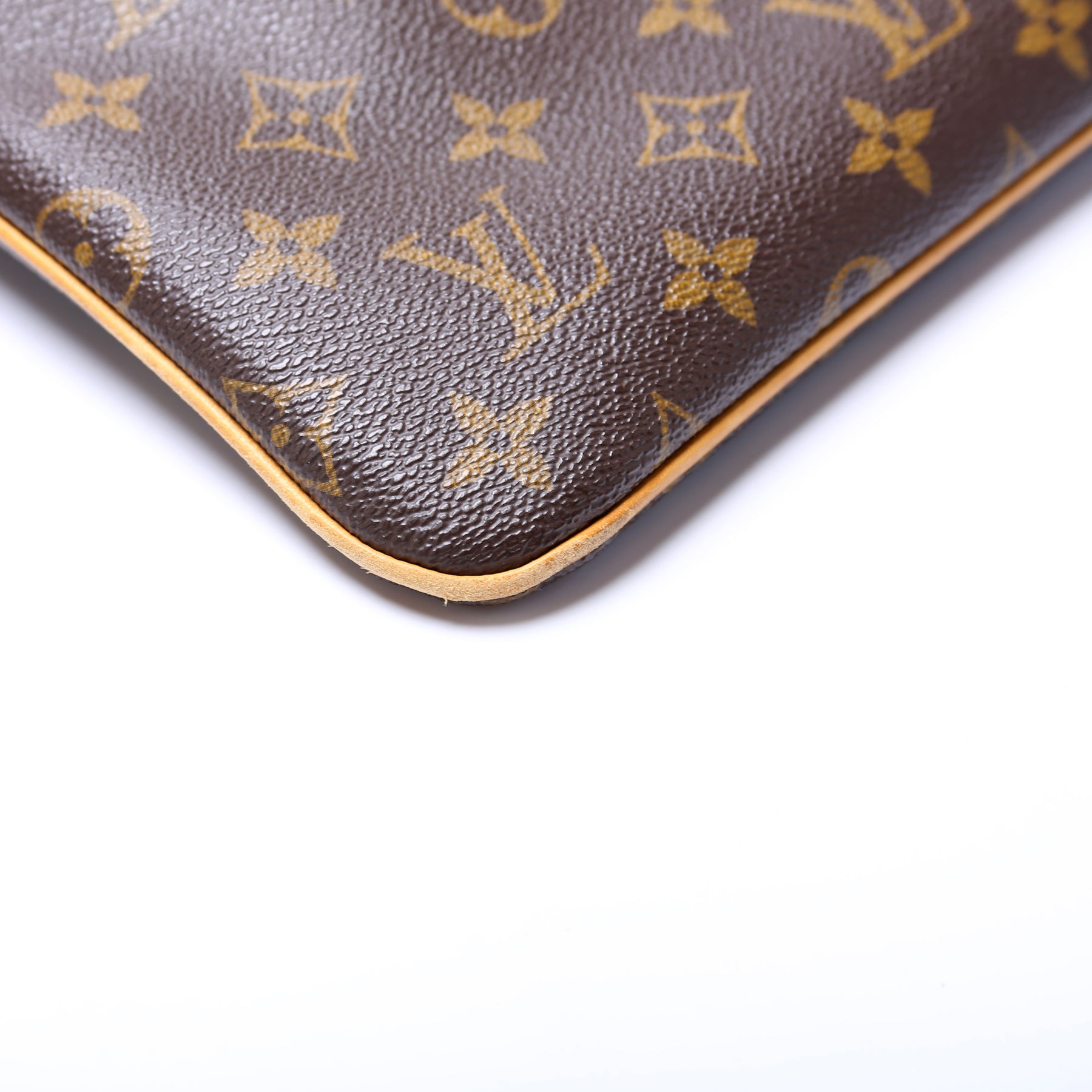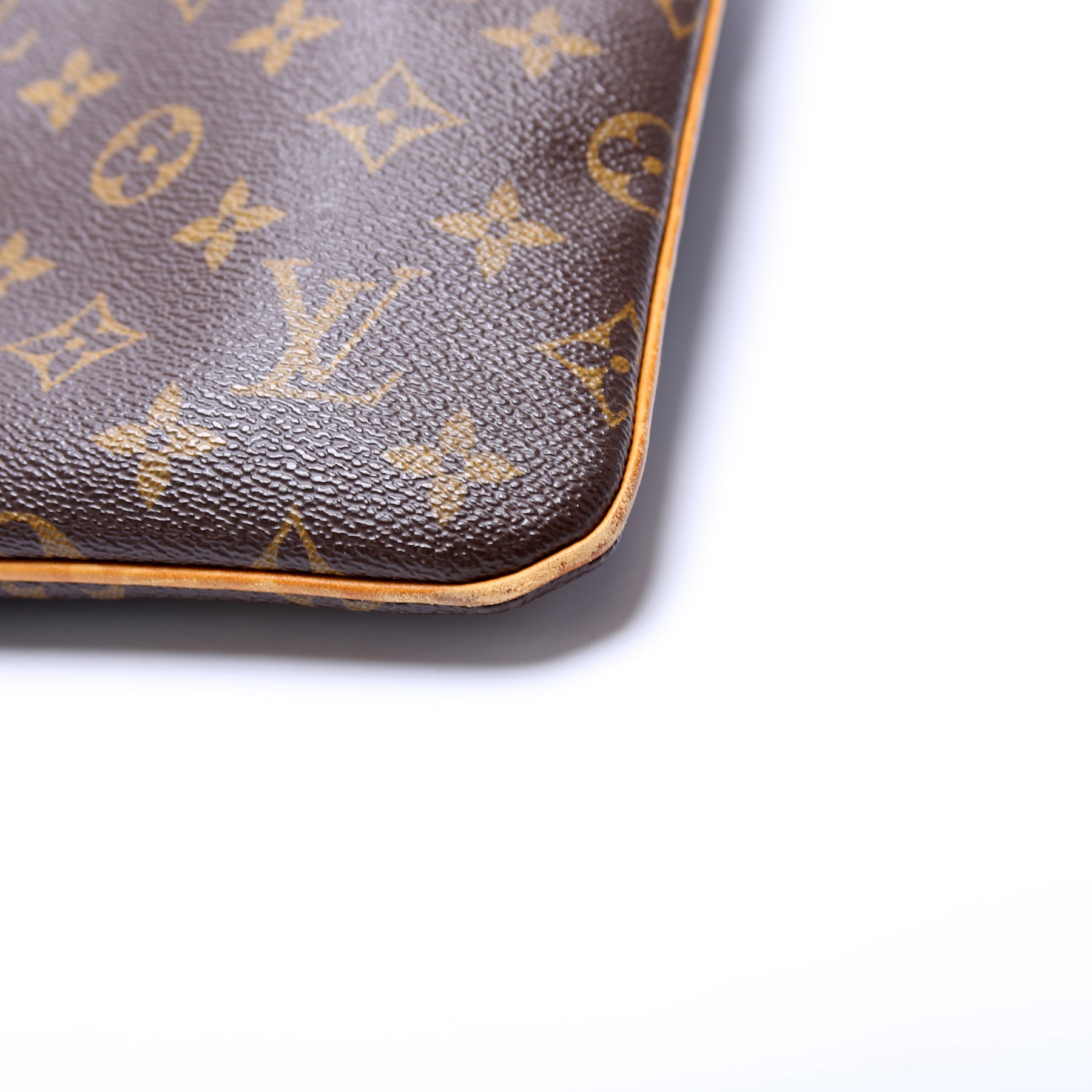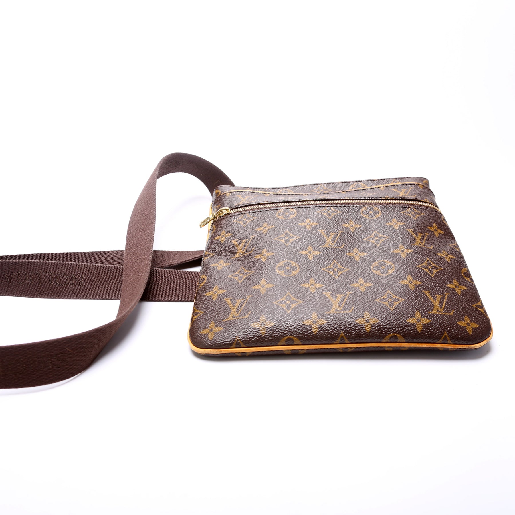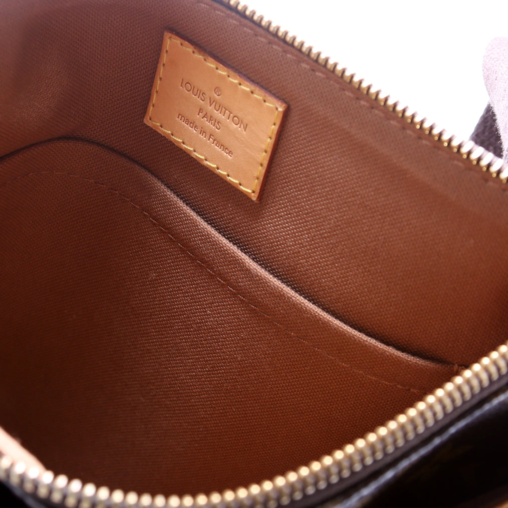 This pre-owned Louis Vuitton Pochette Valmy is guaranteed 100% authentic. The exterior is in the classic Louis Vuitton Damier Ebene coated canvas.
