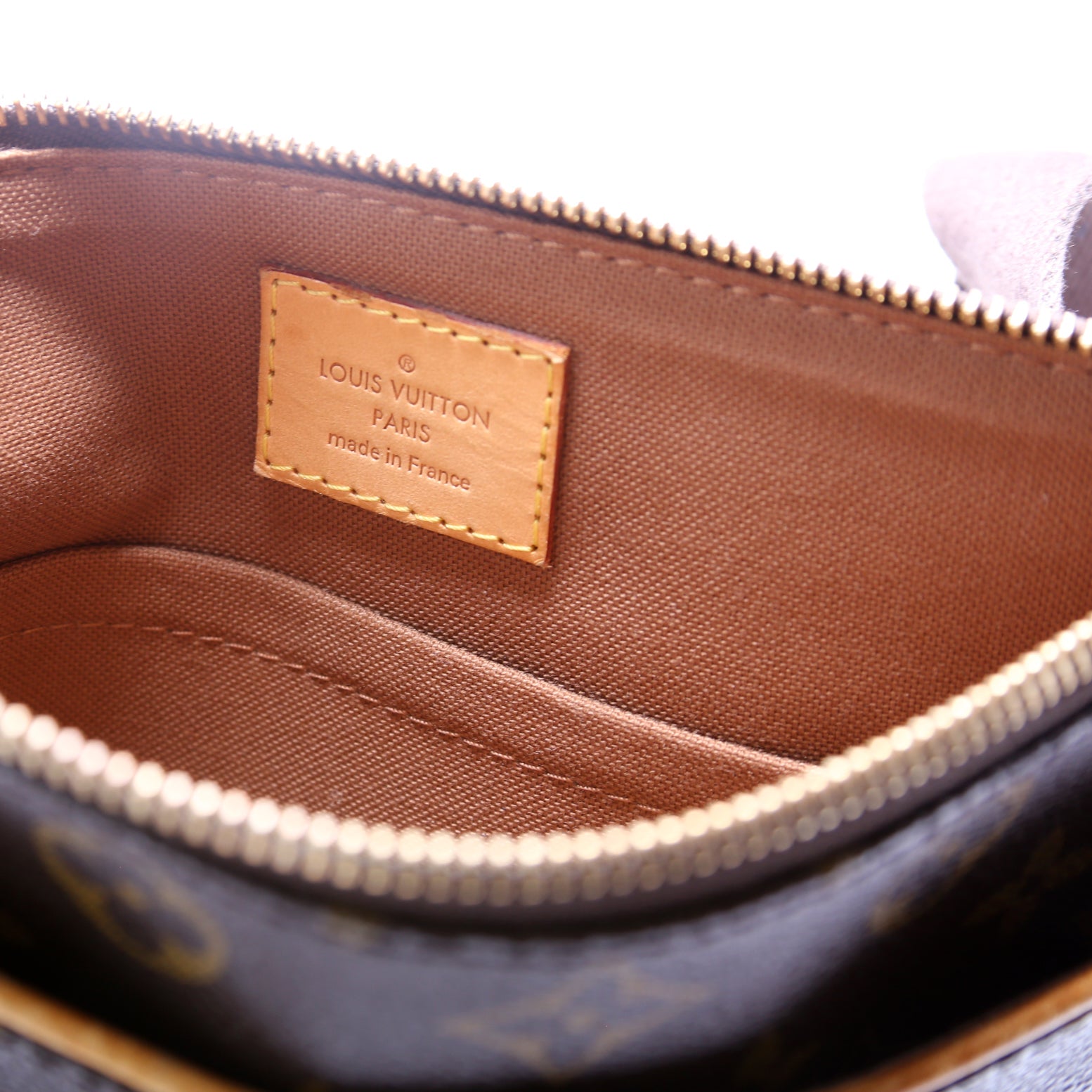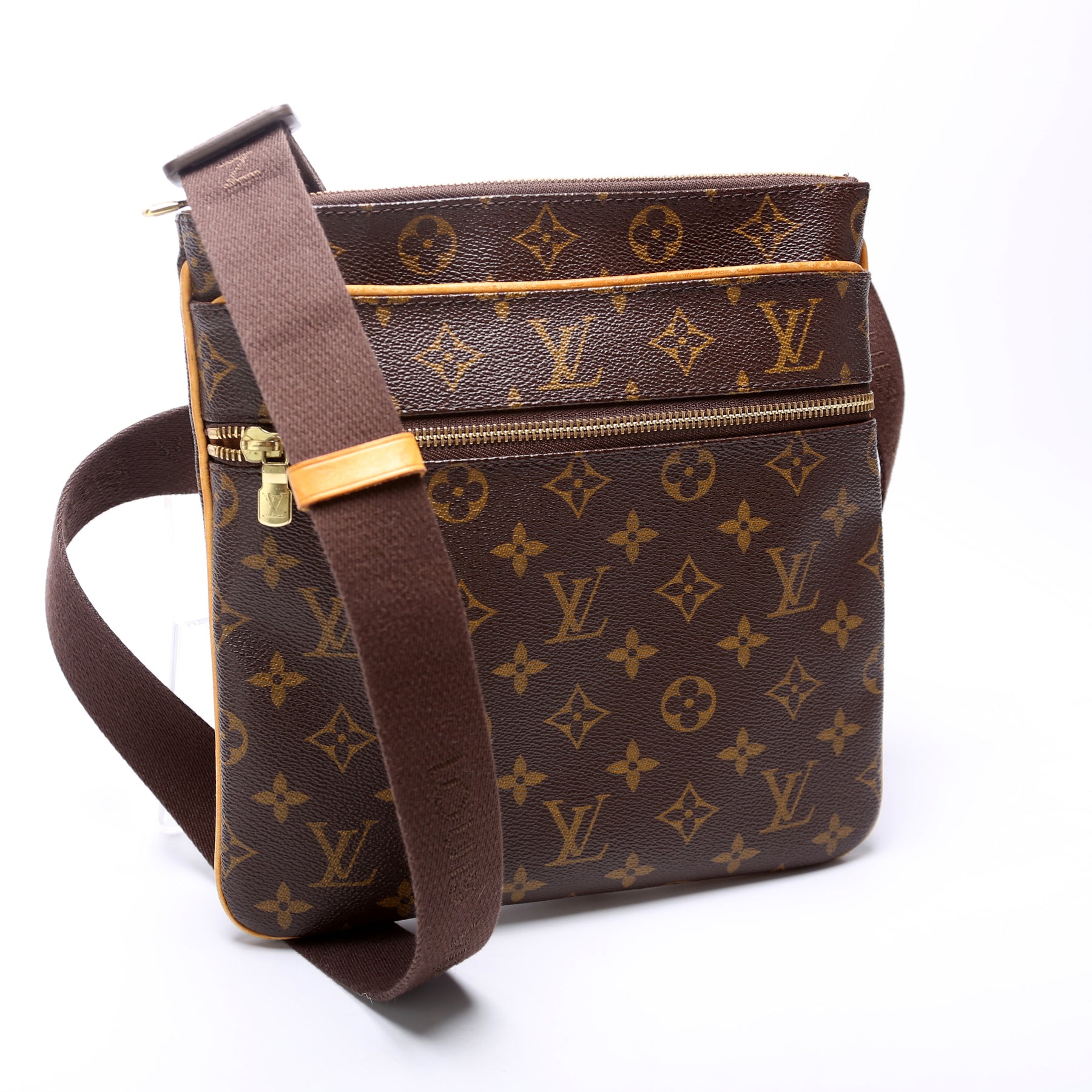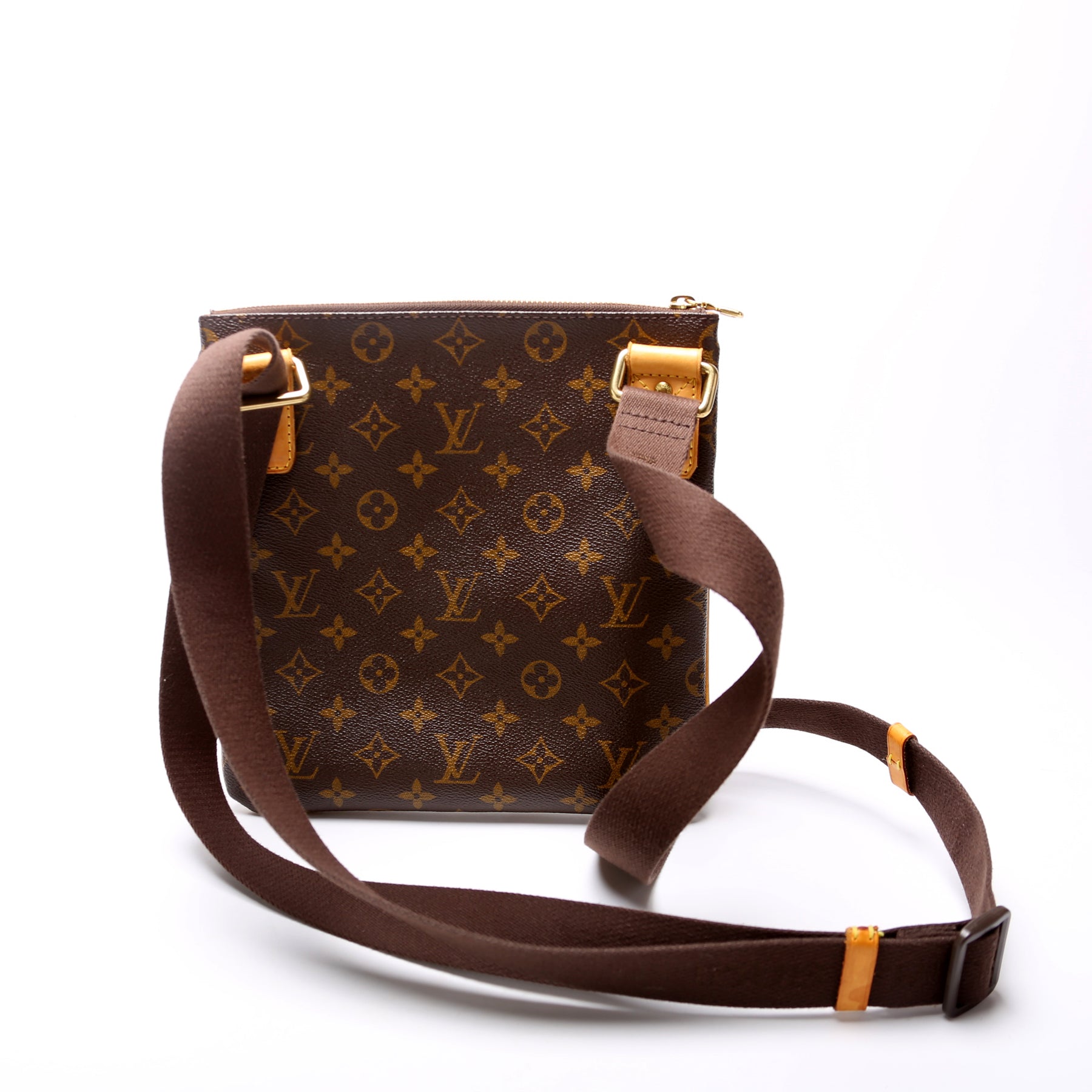 This pre-owned Louis Vuitton Pochette Valmy is guaranteed 100% authentic. The exterior is in the classic Louis Vuitton Damier Ebene coated canvas.