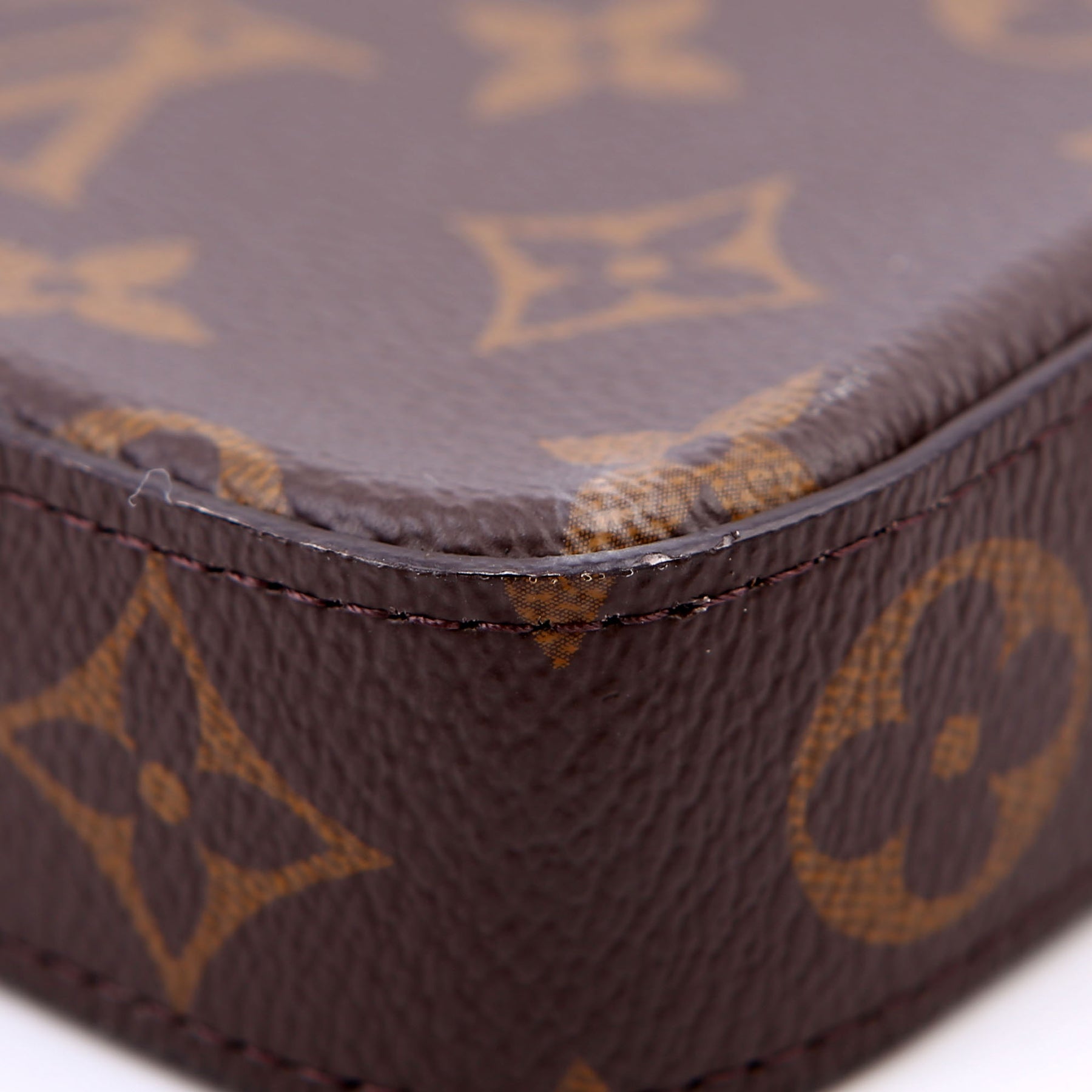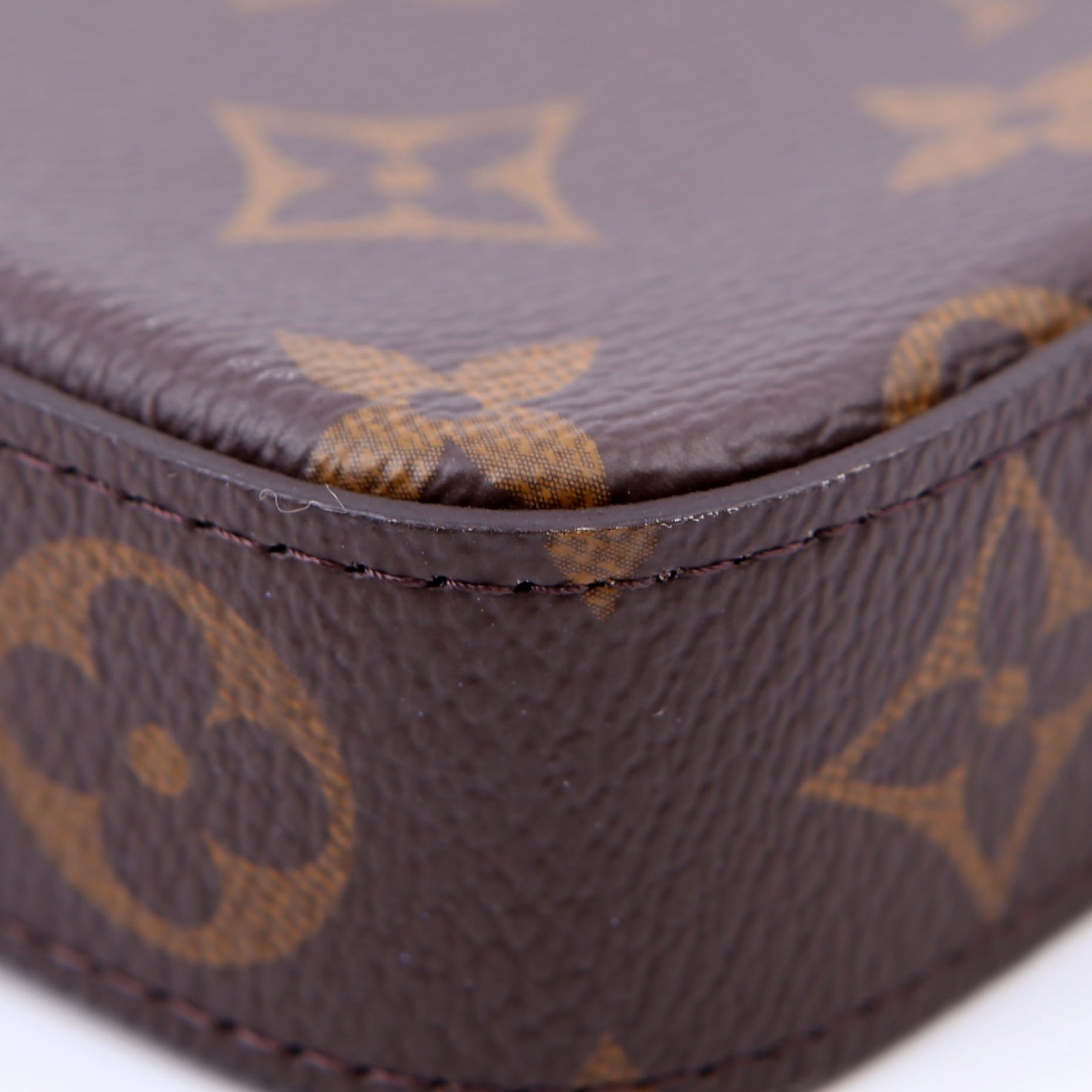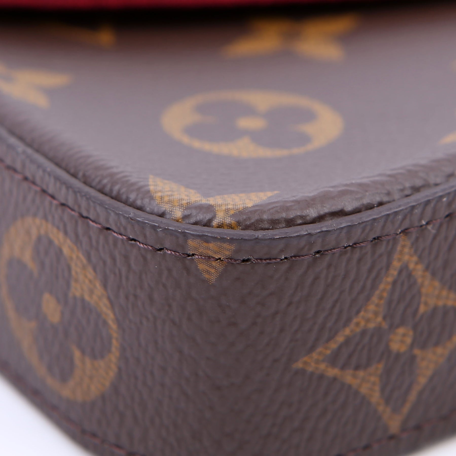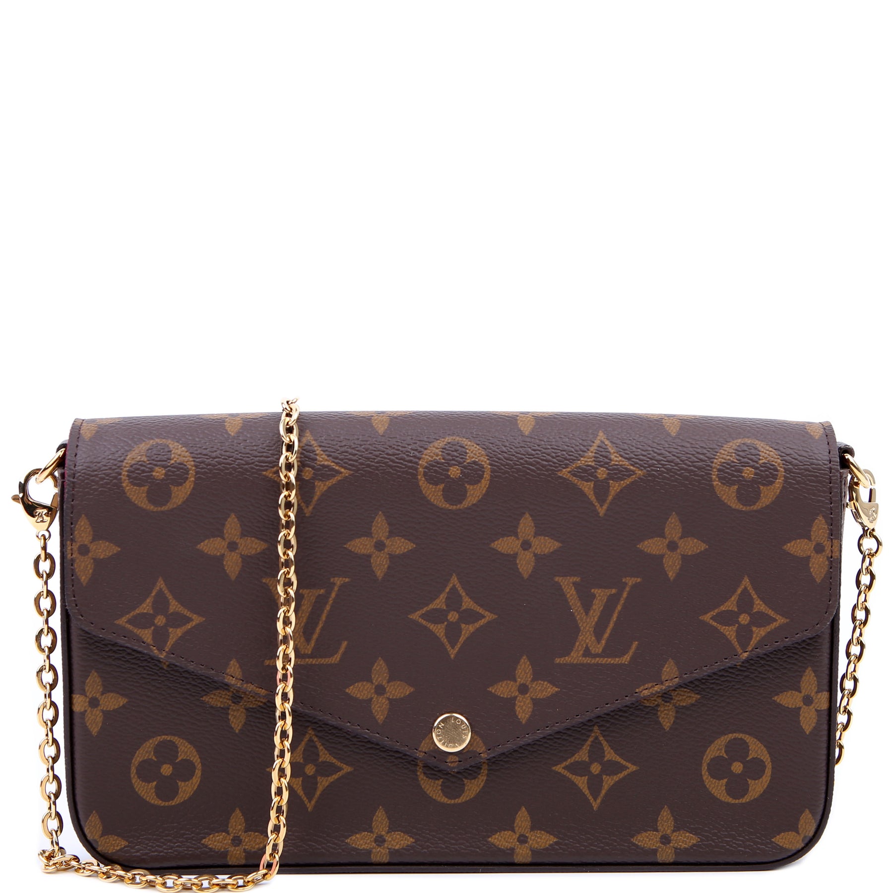 This pre-owned Louis Vuitton Pochette Felicie is guaranteed 100% authentic. The exterior is in the classic Louis Vuitton Monogram coated canvas.
