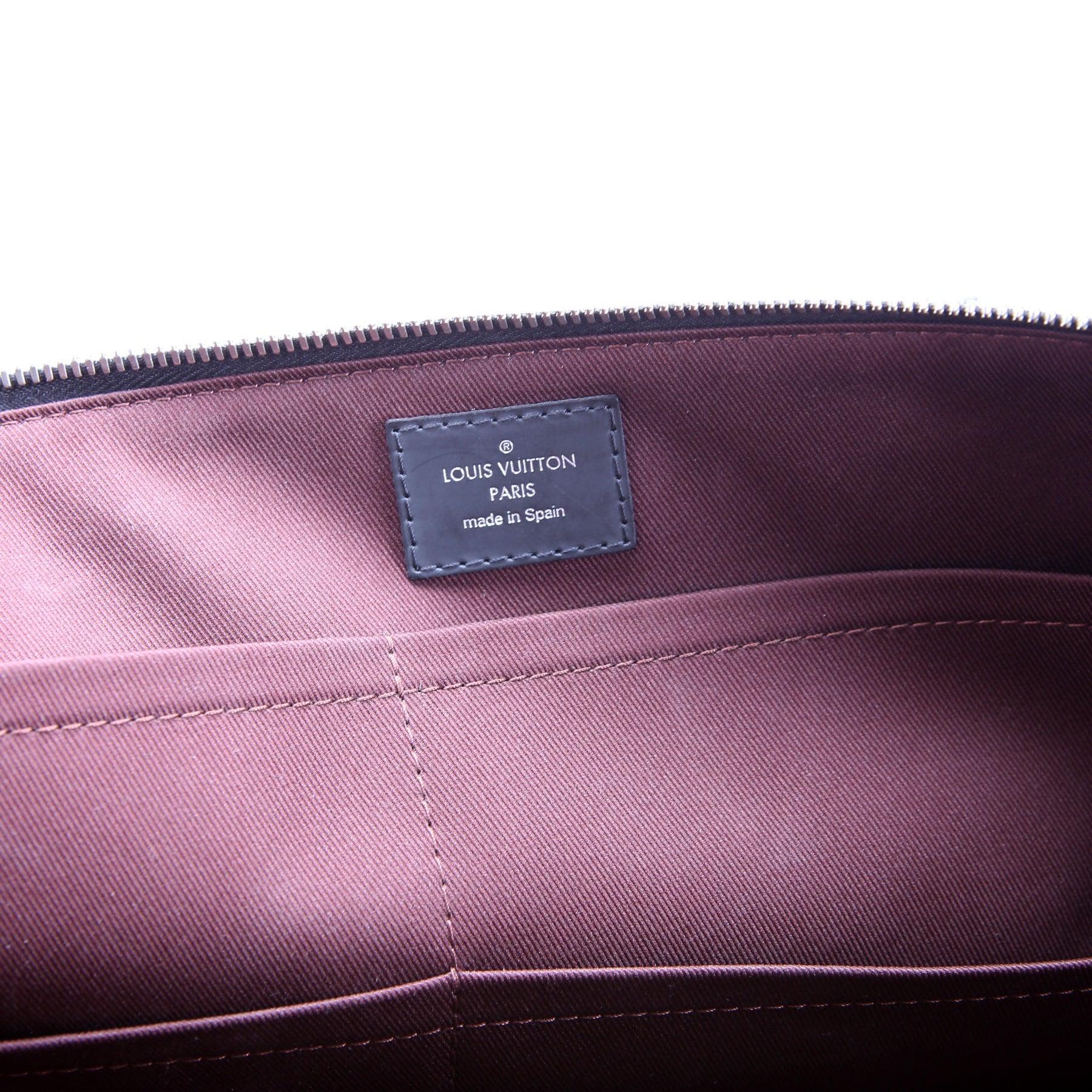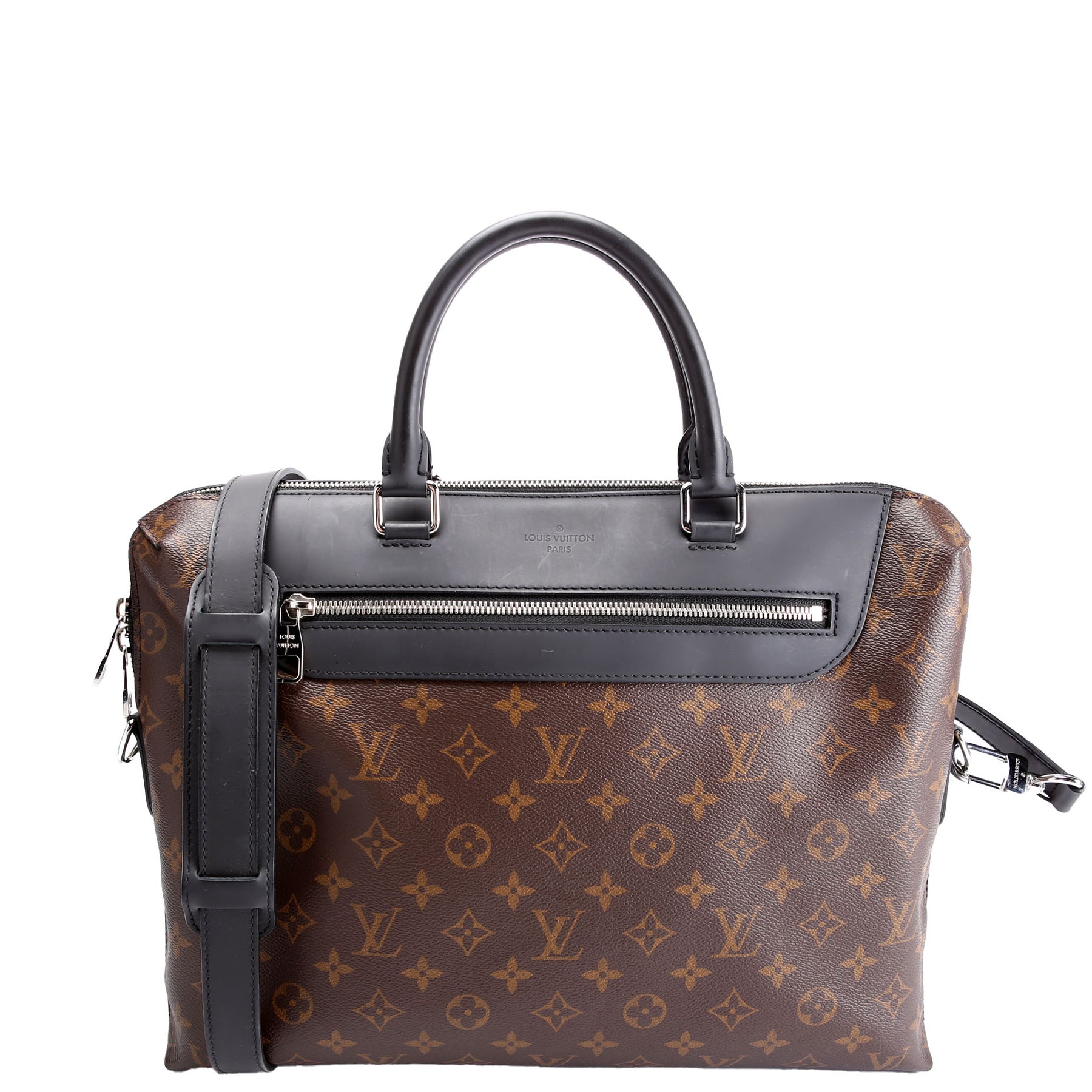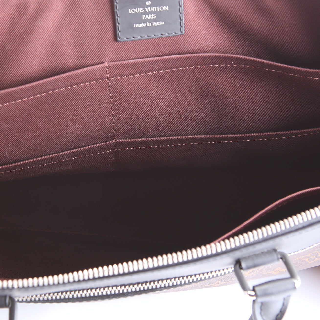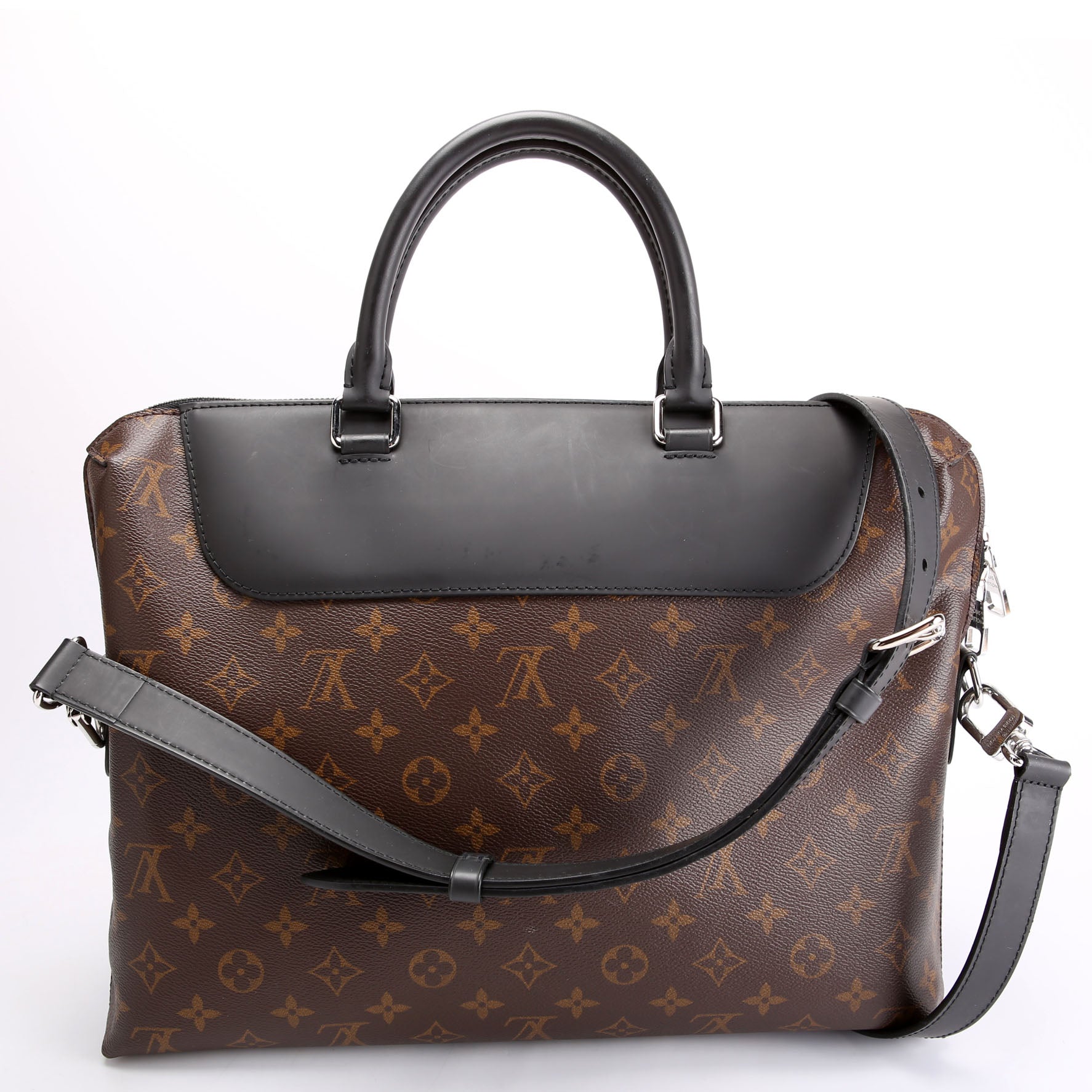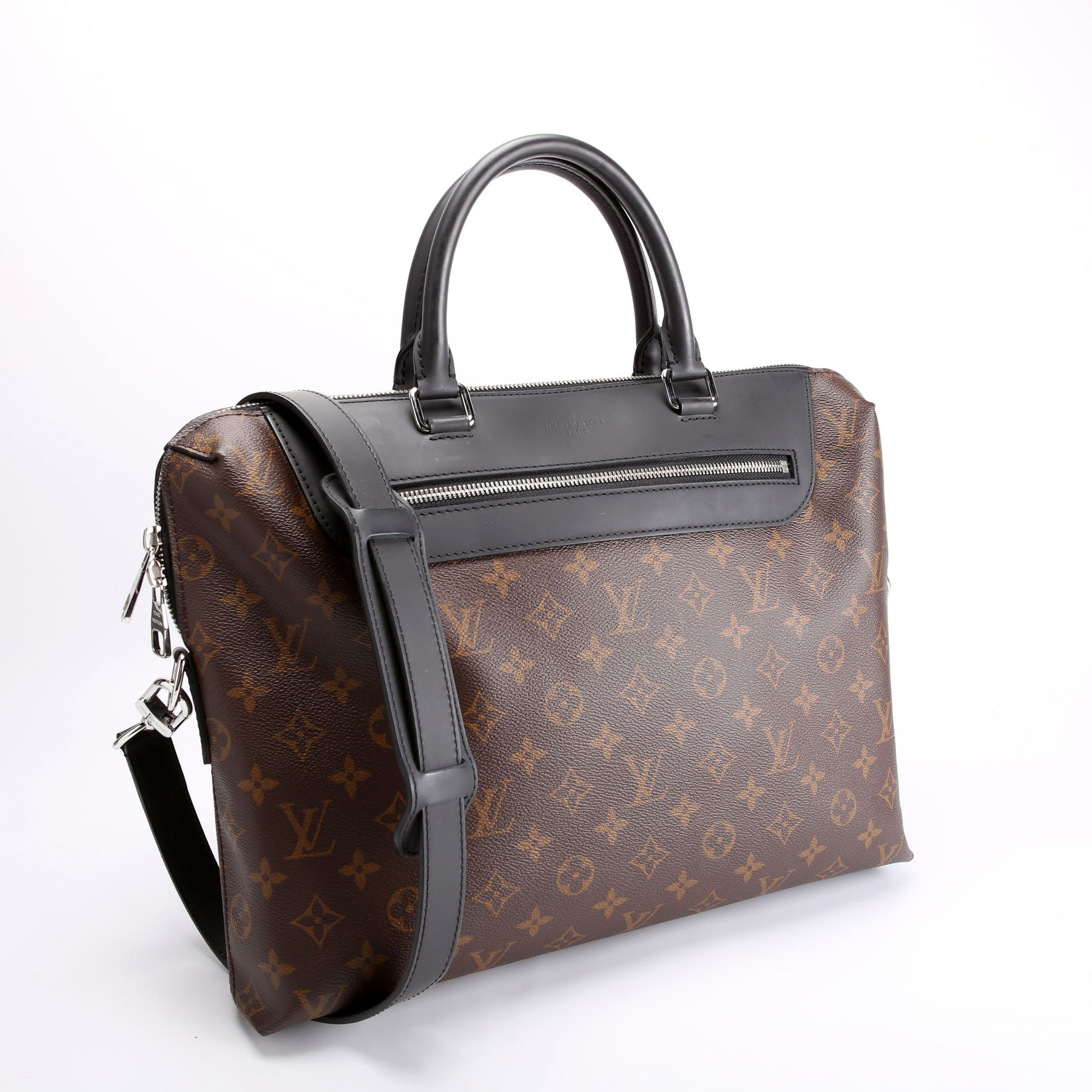 This pre-owned Louis Vuitton Porte Documents Jour Monogram Macassar is guaranteed 100% authentic. The exterior is in the classic Louis Vuitton Monogram coated canvas.