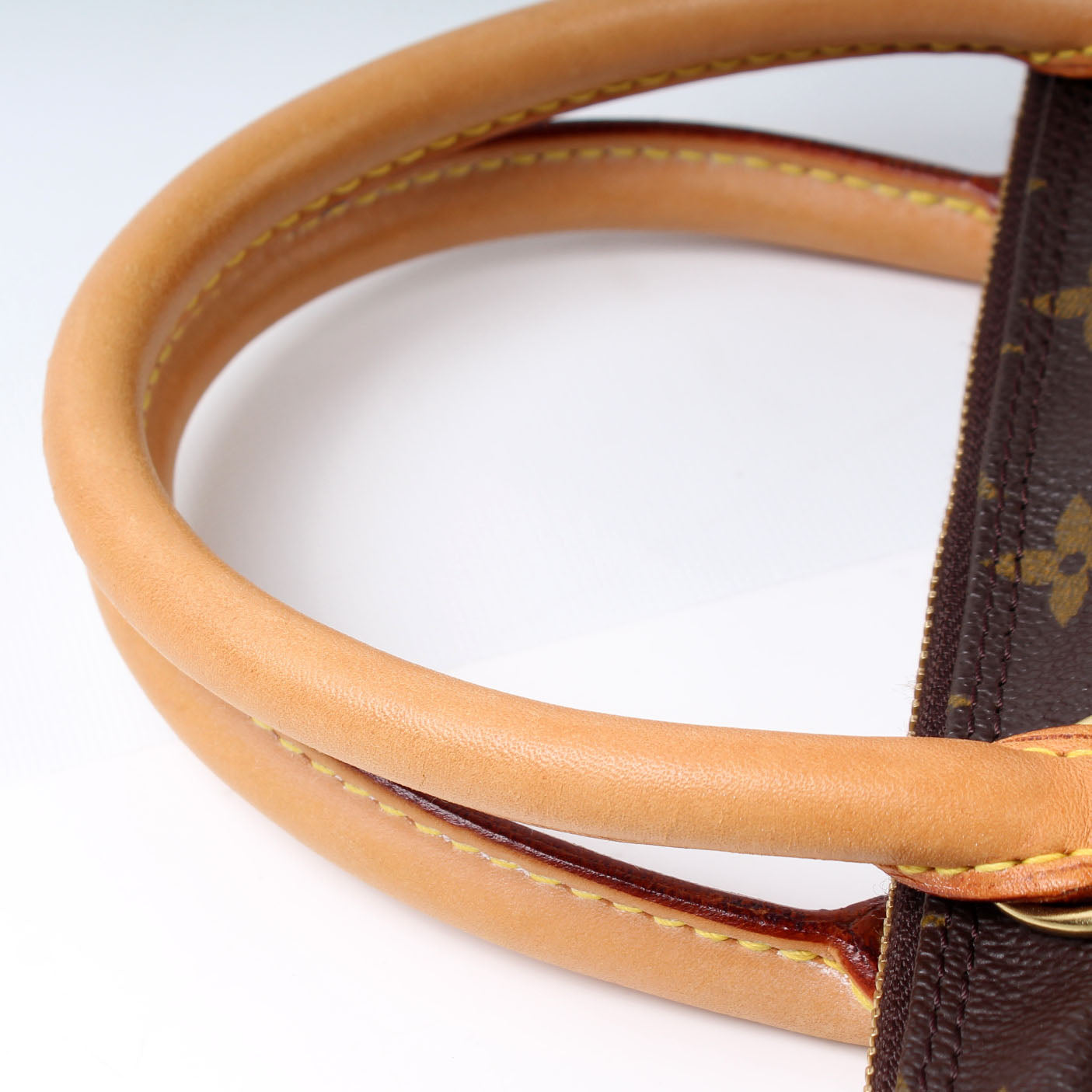 Exterior: The exterior coated canvas is free of any rips or cracks. The corners and leather details show signs of wear as pictured.