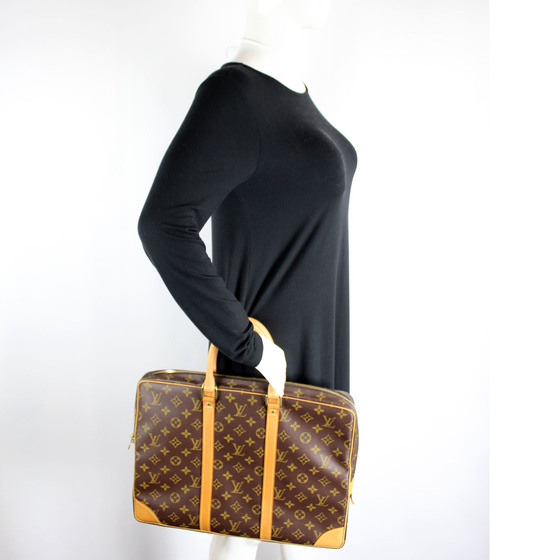 This pre-owned Louis Vuitton Porte Documents Voyage is guaranteed 100% authentic. The exterior is in the classic Louis Vuitton Monogram coated canvas.