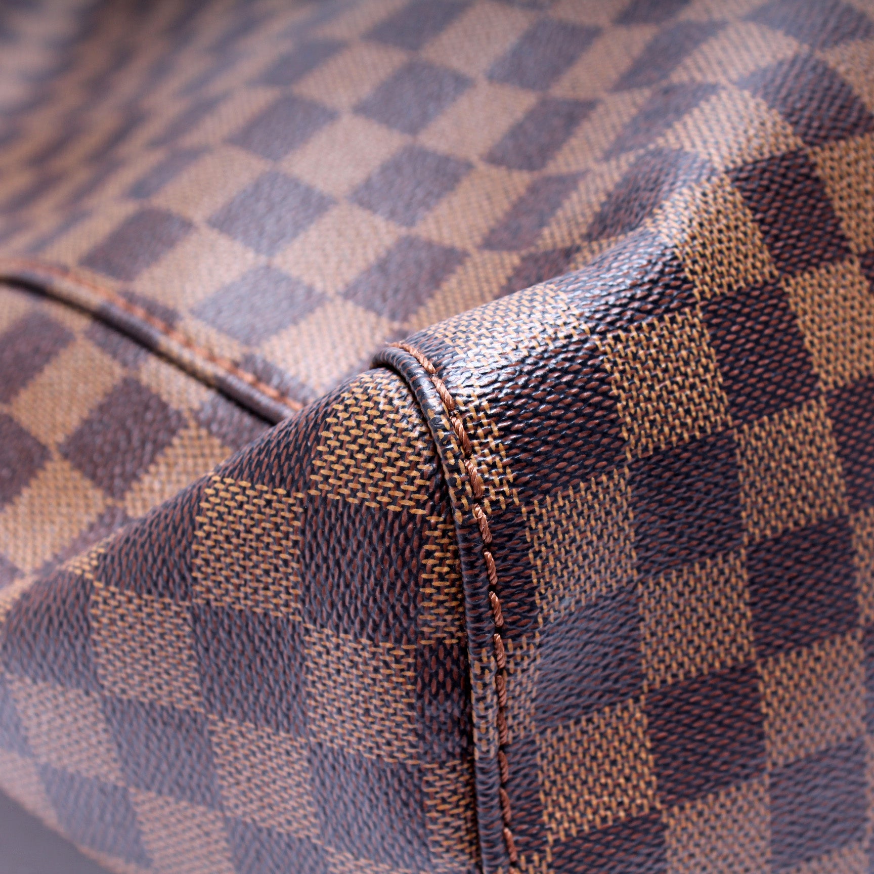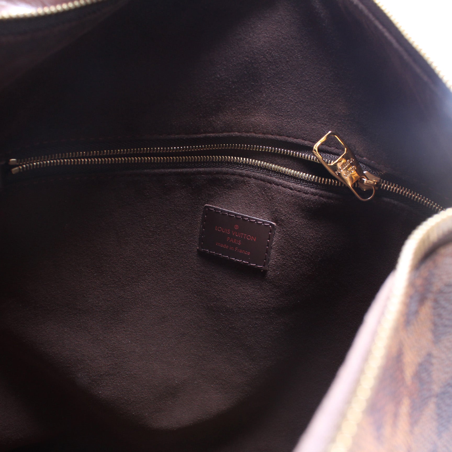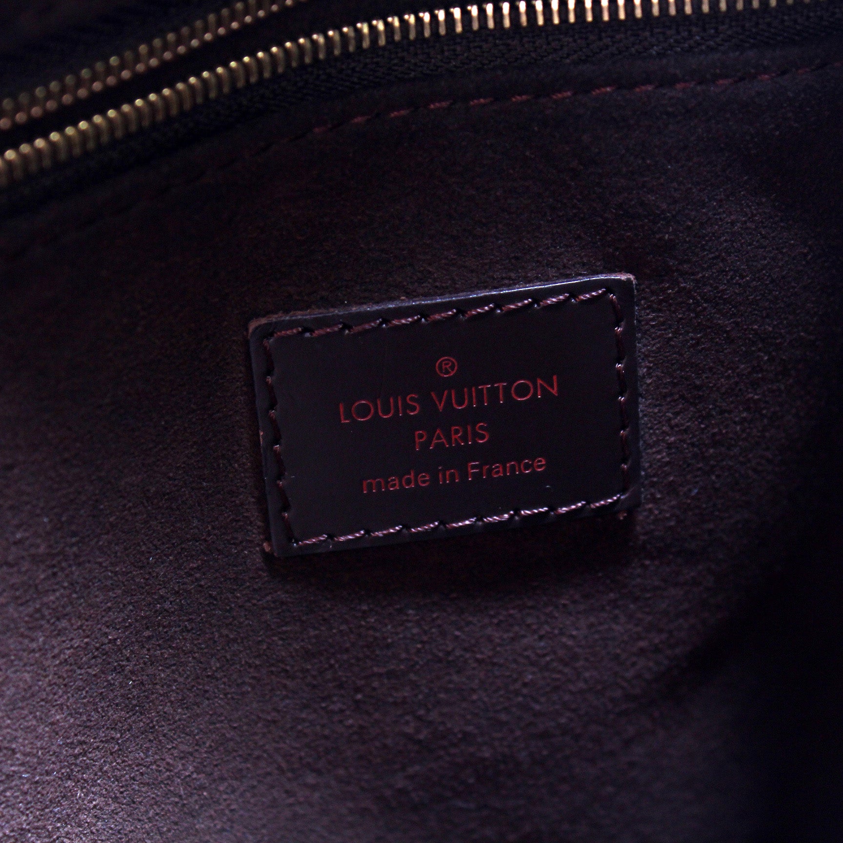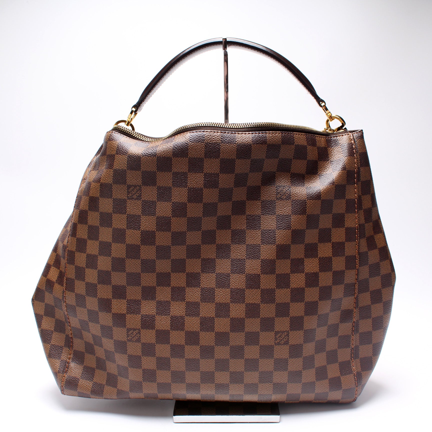 This pre-owned Louis Vuitton Portobello GM is guaranteed 100% authentic. The exterior is in the classic Damier Ebene coated canvas.