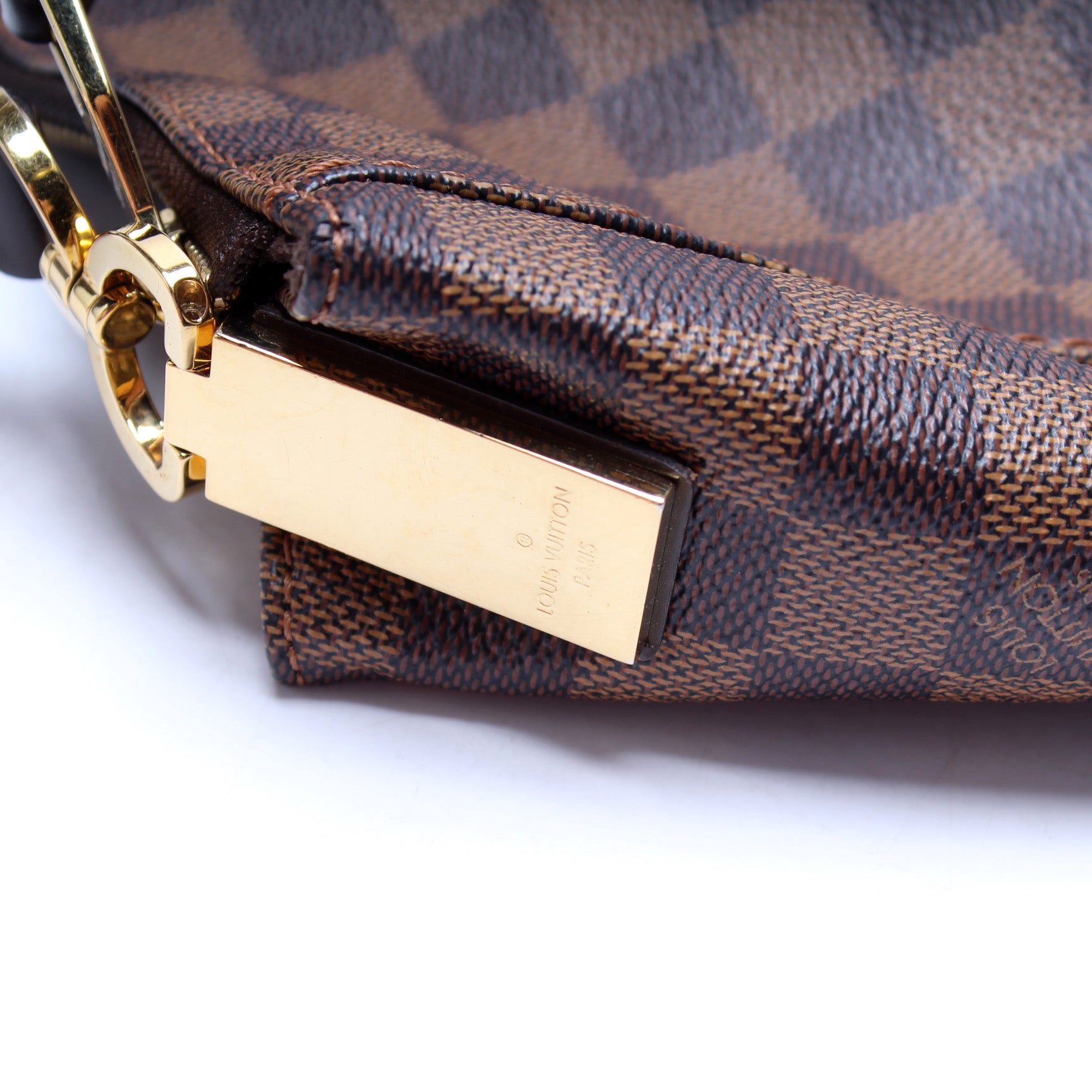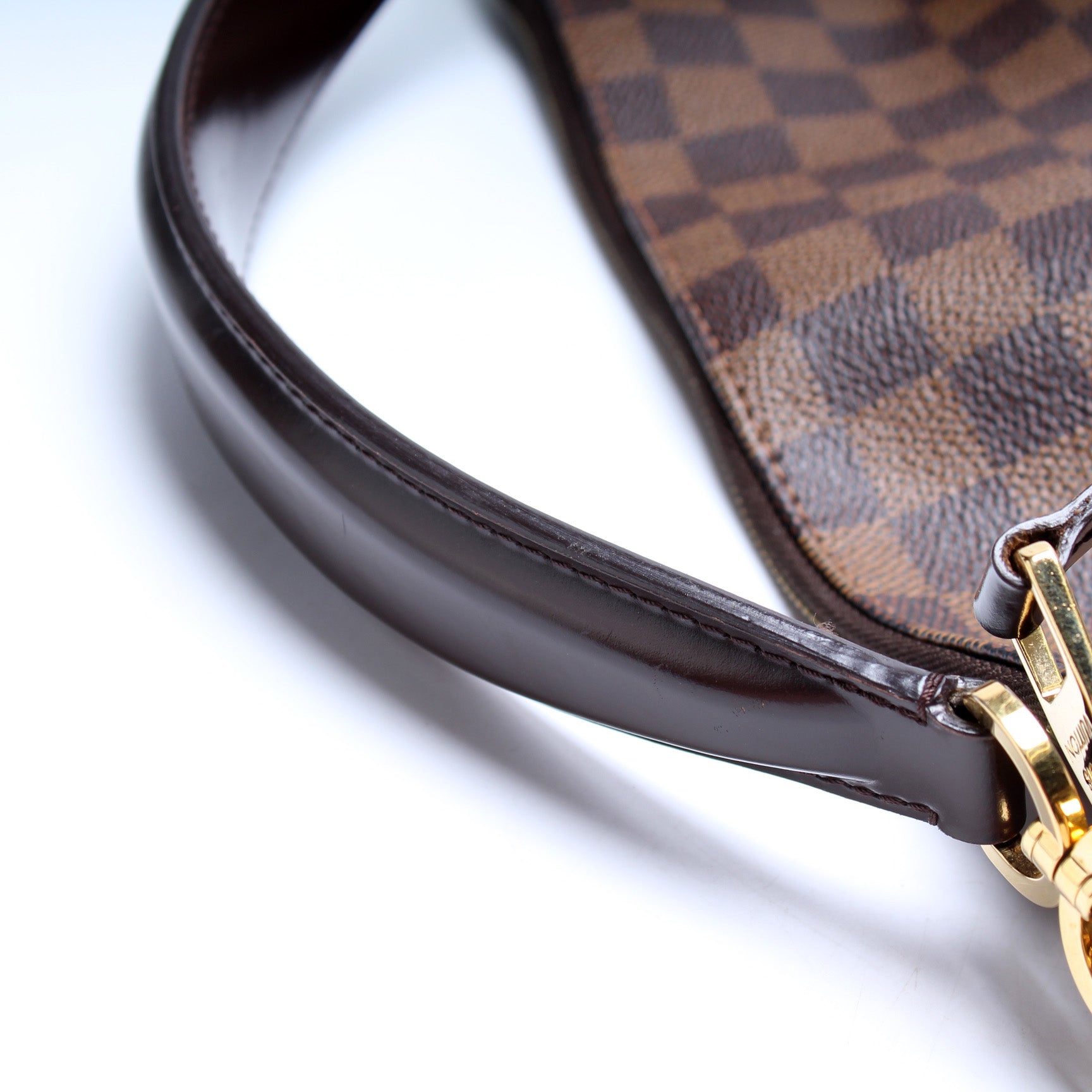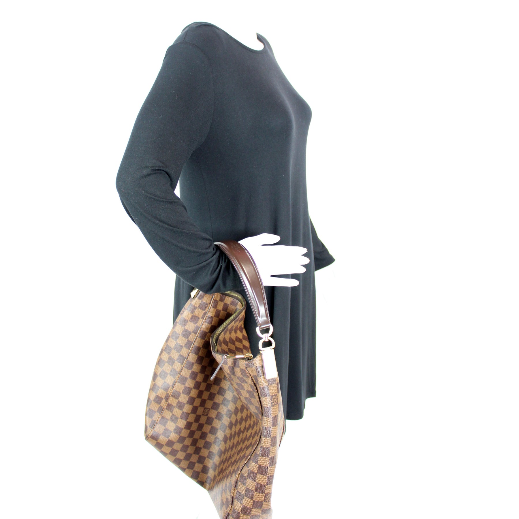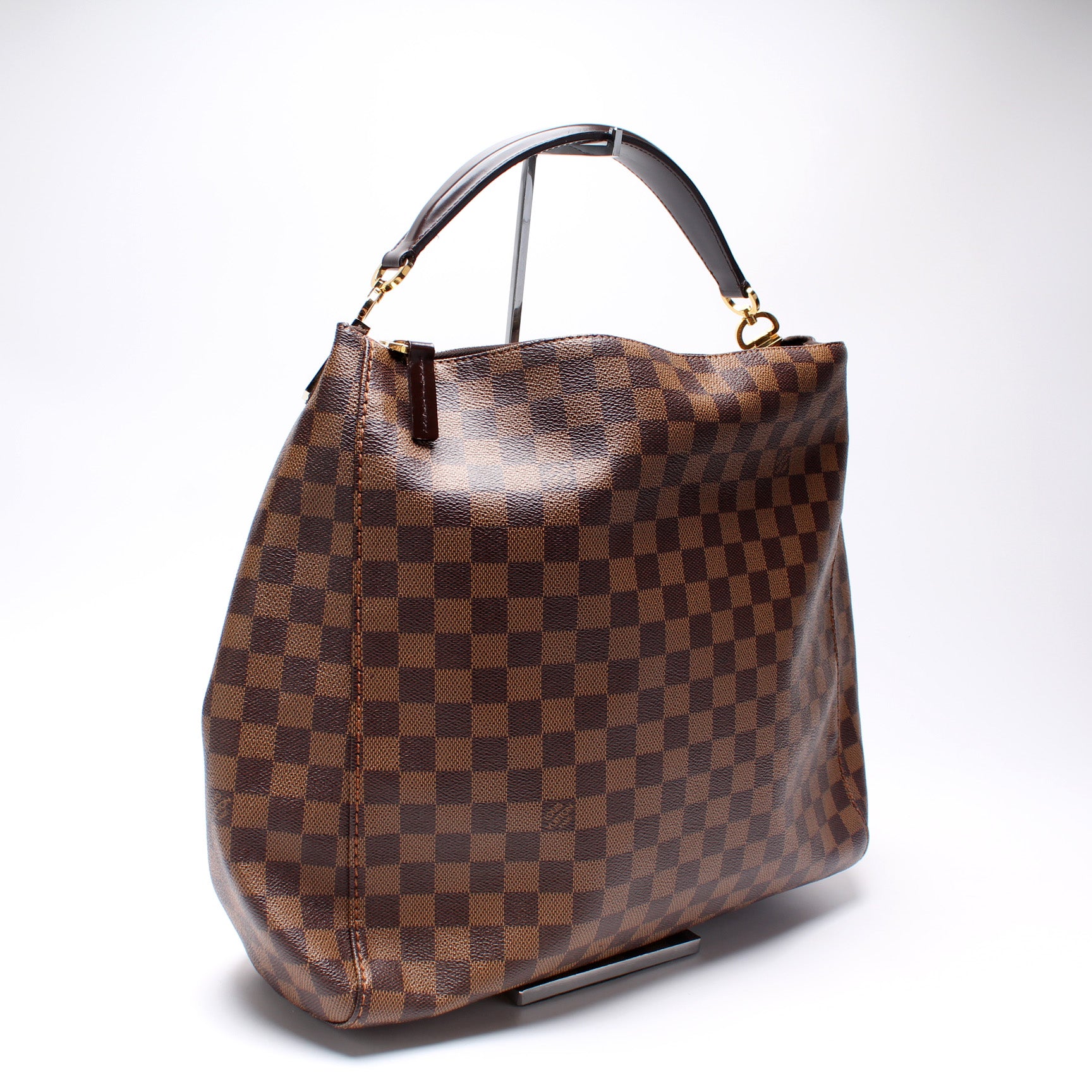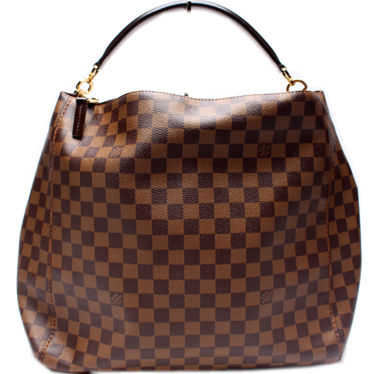 This pre-owned Louis Vuitton Portobello GM is guaranteed 100% authentic. The exterior is in the classic Damier Ebene coated canvas.