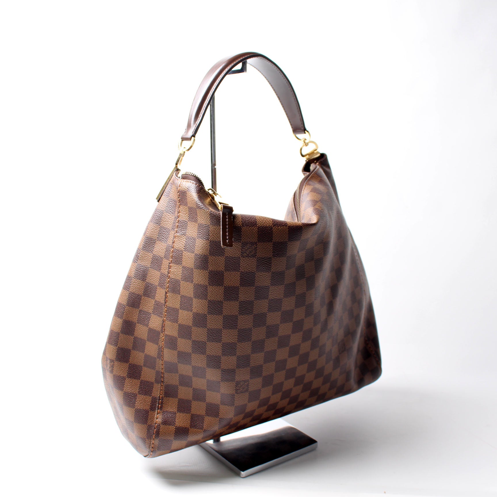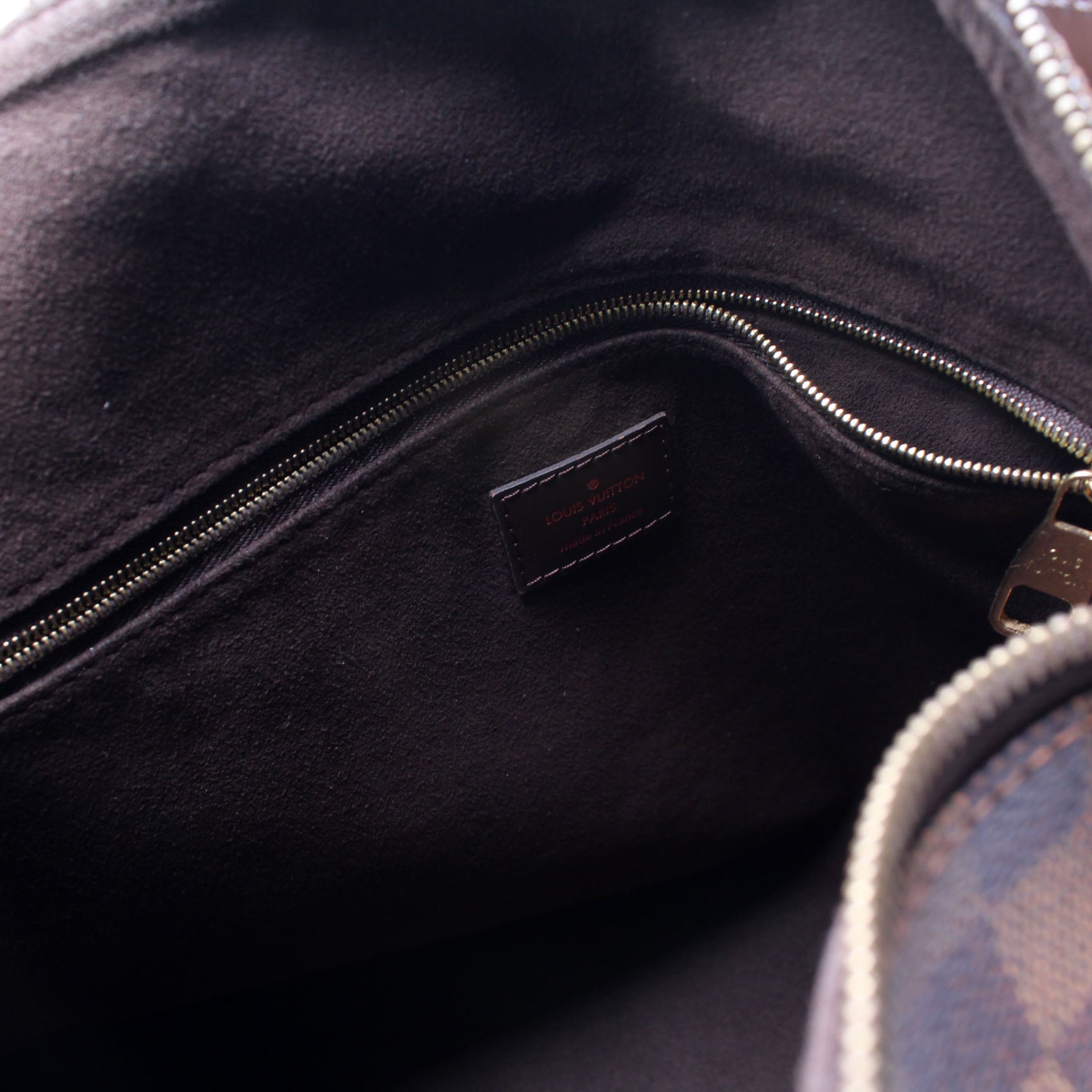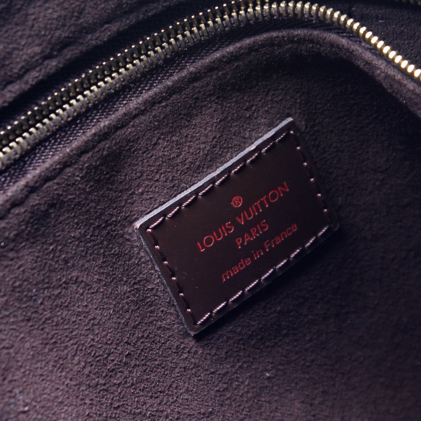 This pre-owned Louis Vuitton Portobello GM is guaranteed 100% authentic. The exterior is in the classic Damier Ebene coated canvas.