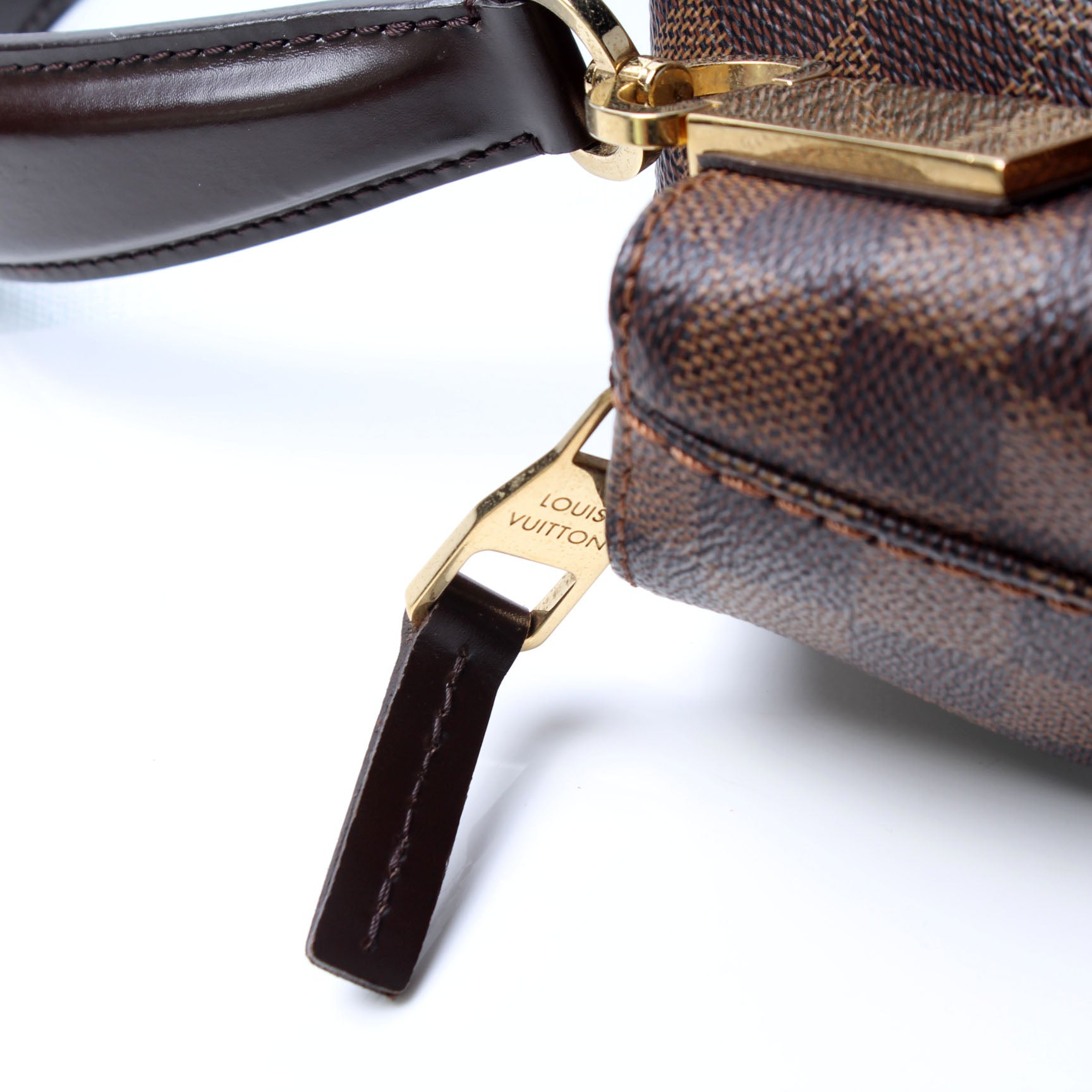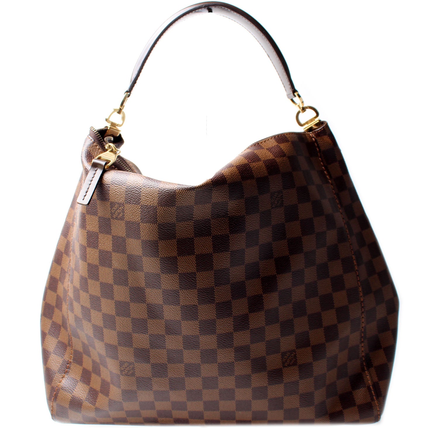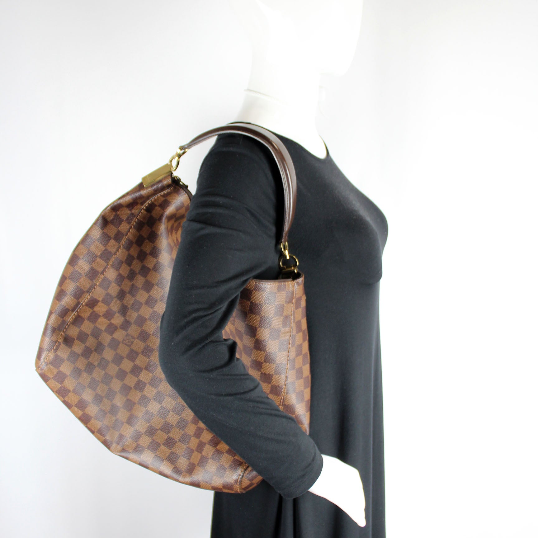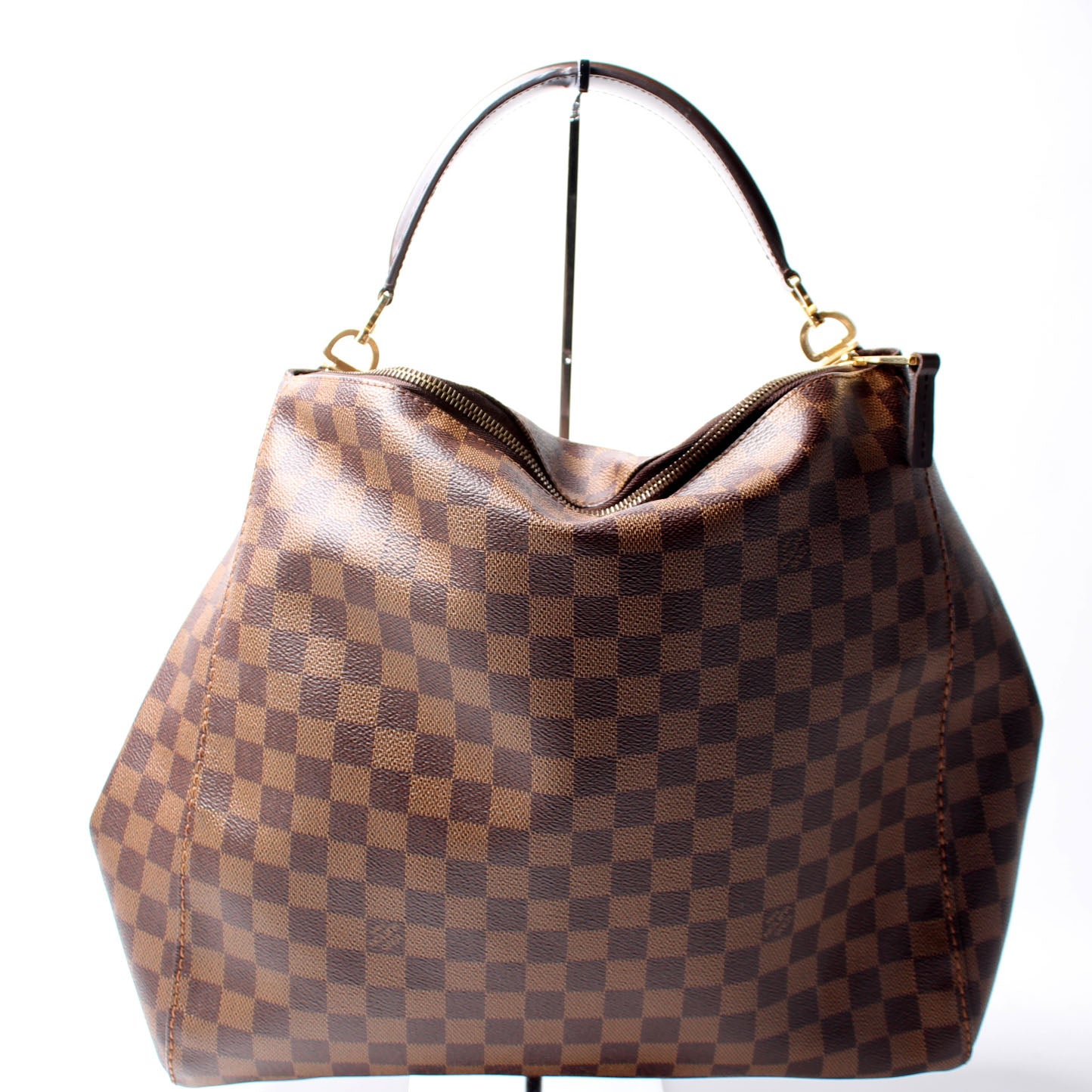This pre-owned Louis Vuitton Portobello GM is guaranteed 100% authentic. The exterior is in the classic Damier Ebene coated canvas.