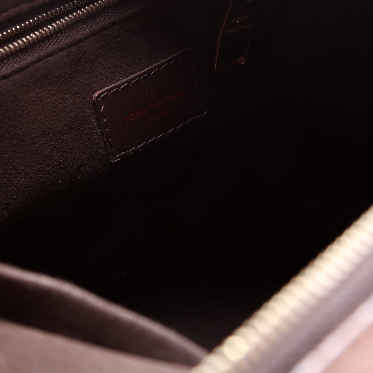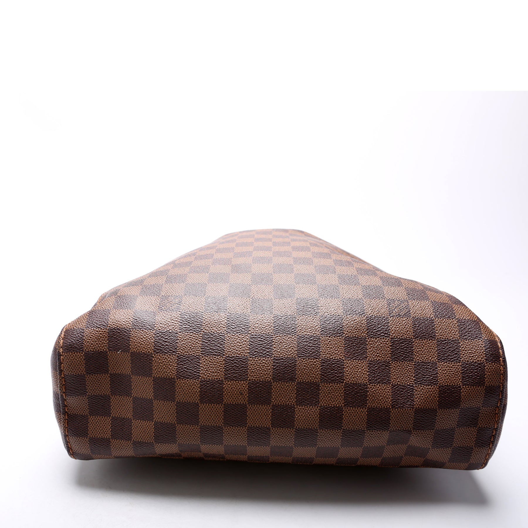 This pre-owned Louis Vuitton Portobello PM is guaranteed 100% authentic. The exterior is in the Louis Vuitton Damier Ebene coated canvas.