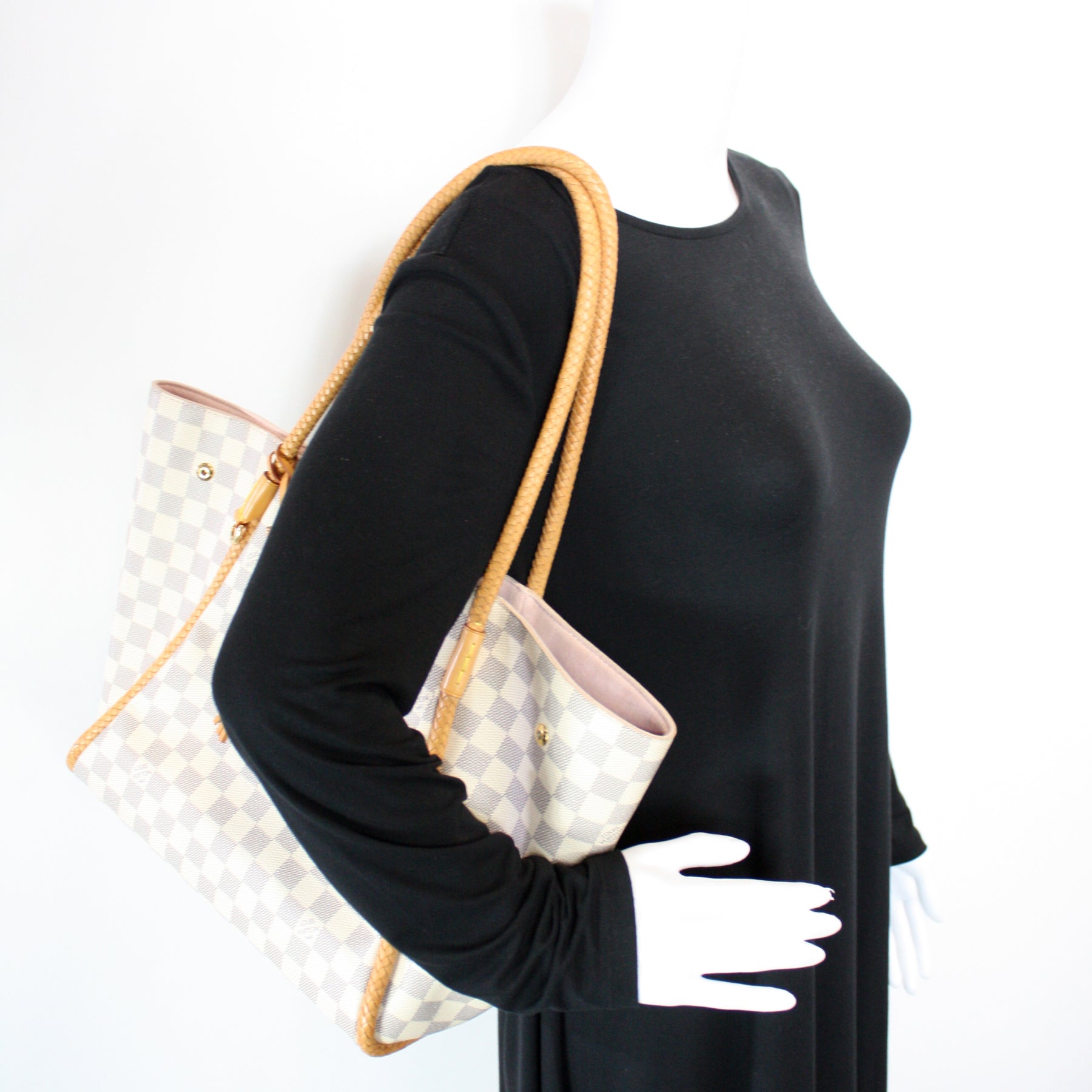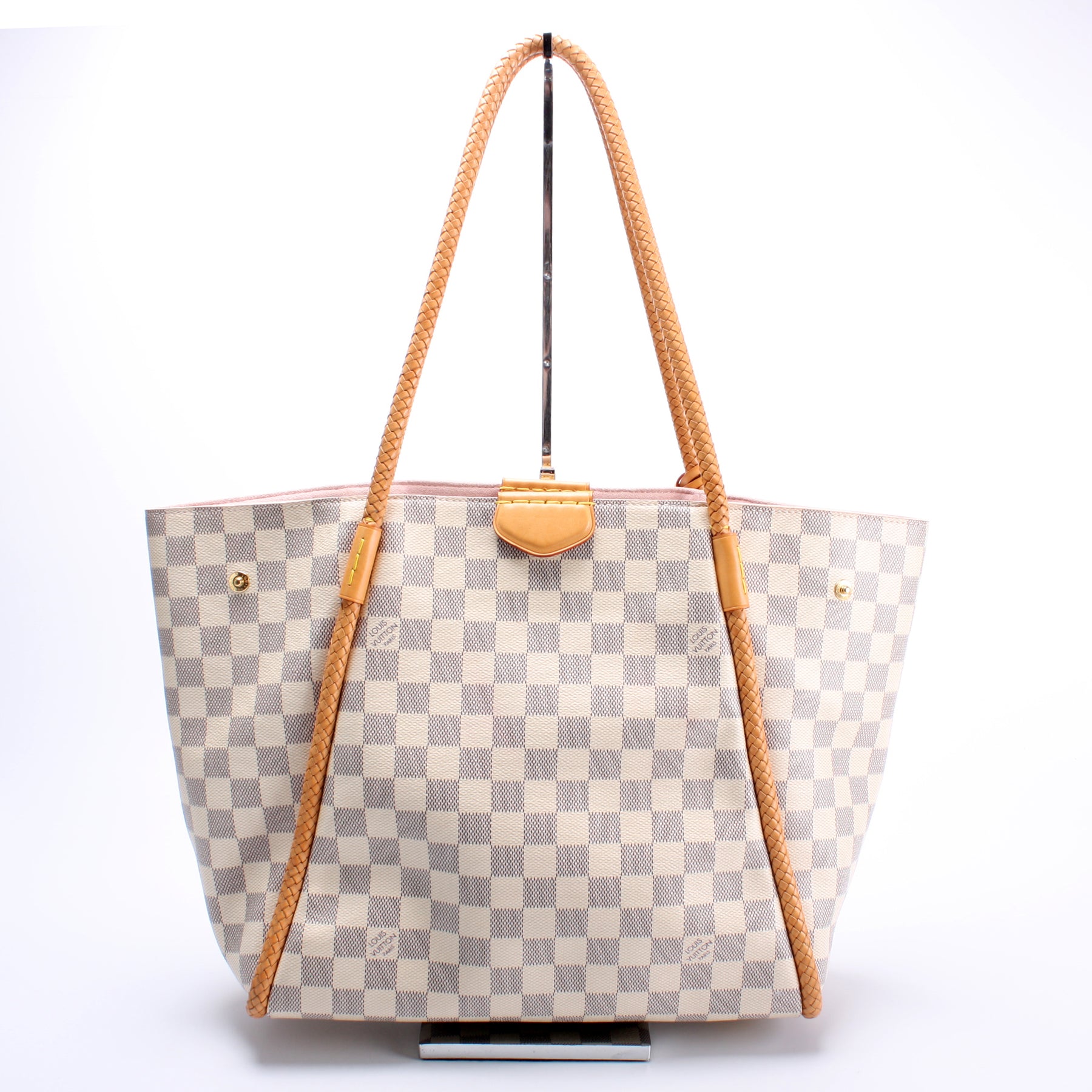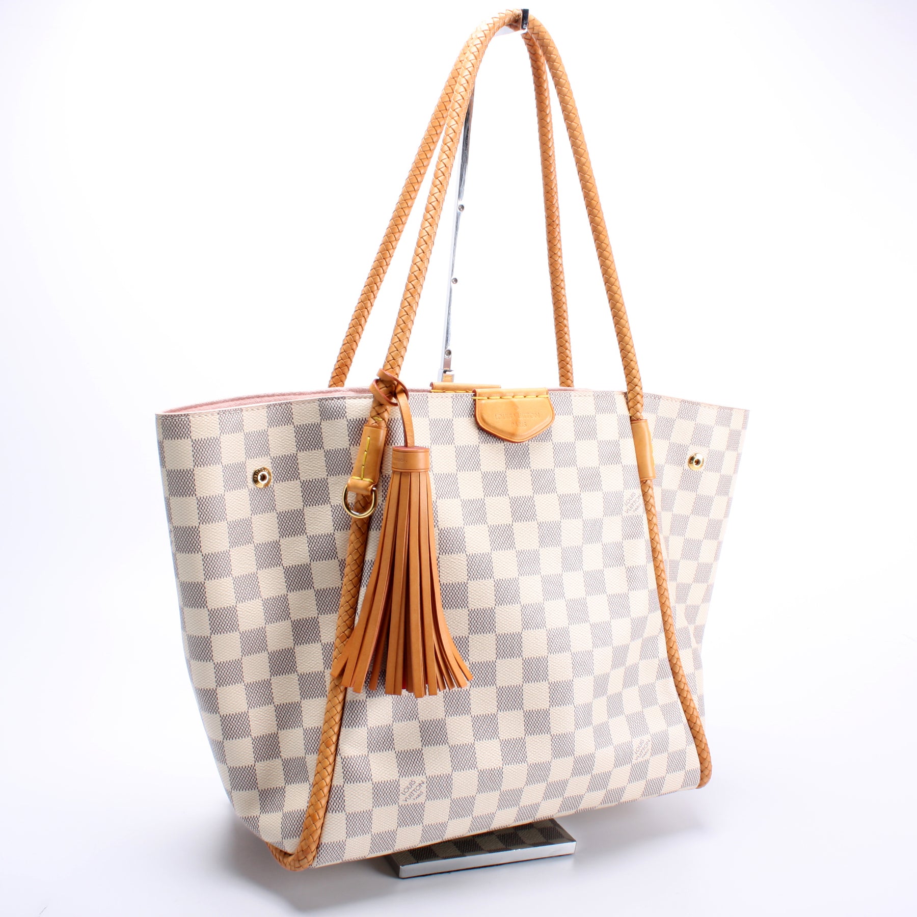 This pre-owned Louis Vuitton Propriano is guaranteed 100% authentic. The exterior is in the classic Louis Vuitton Damier Azur coated canvas.