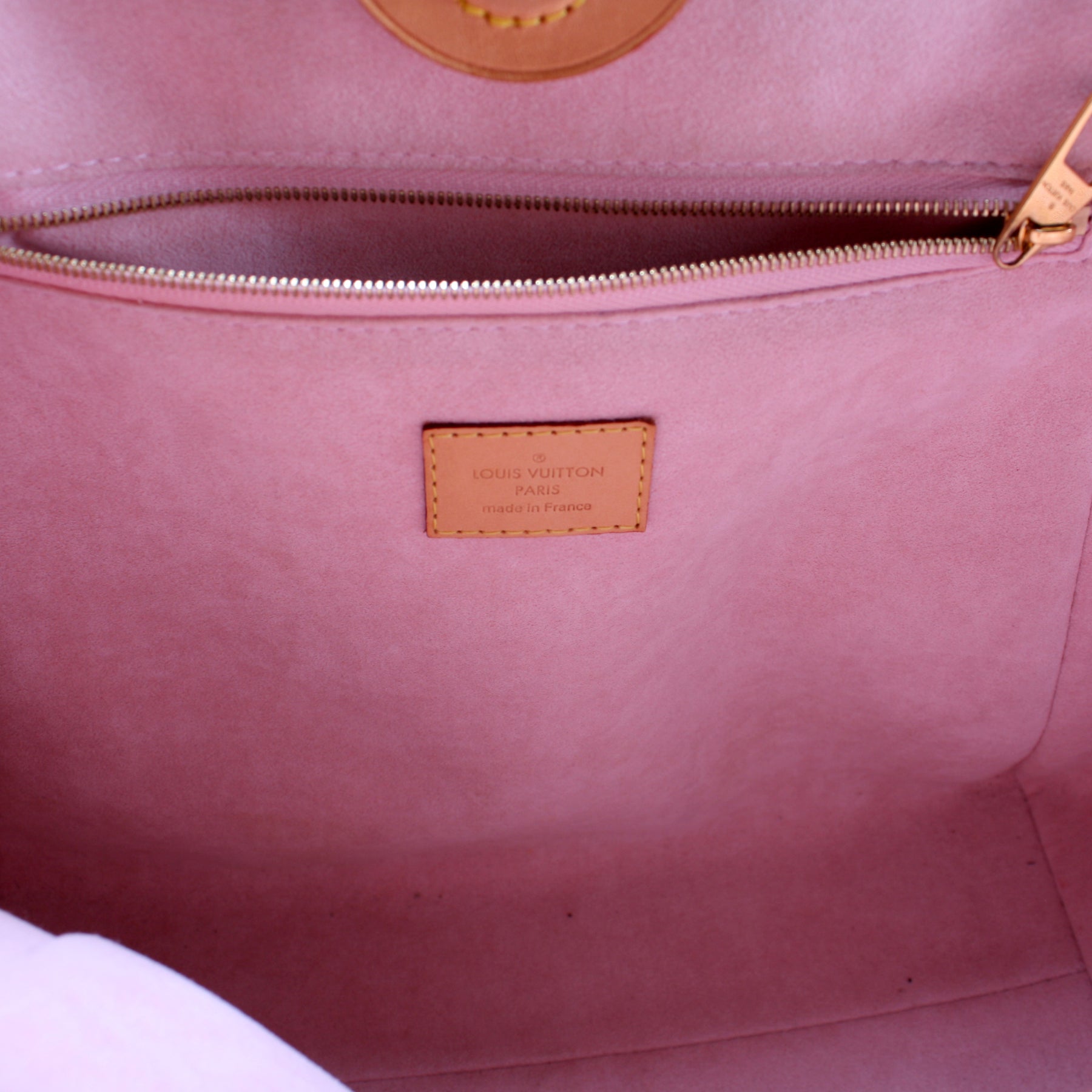 Interior: The interior is clean and free of rips or tears. The interior features one zipper pocket.
