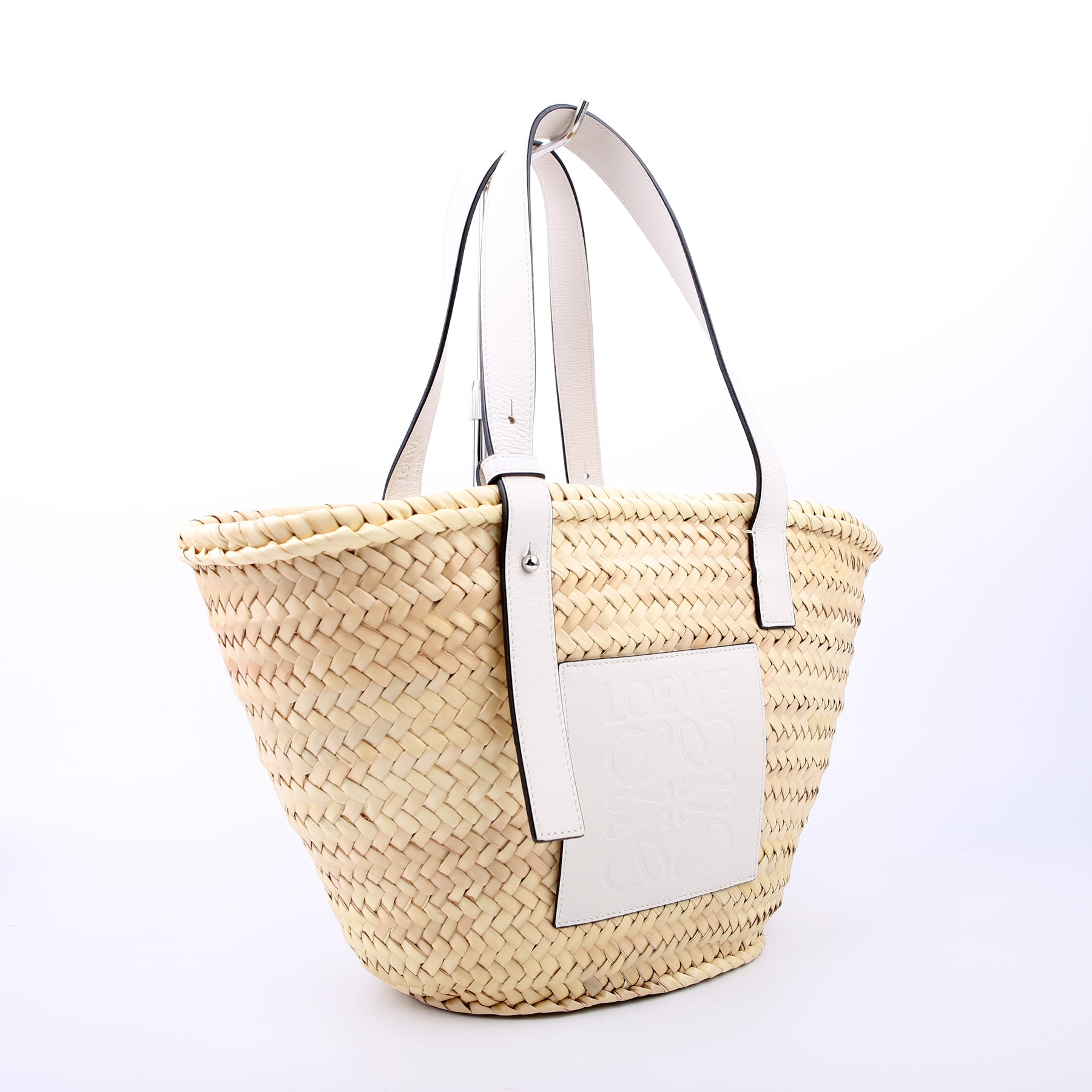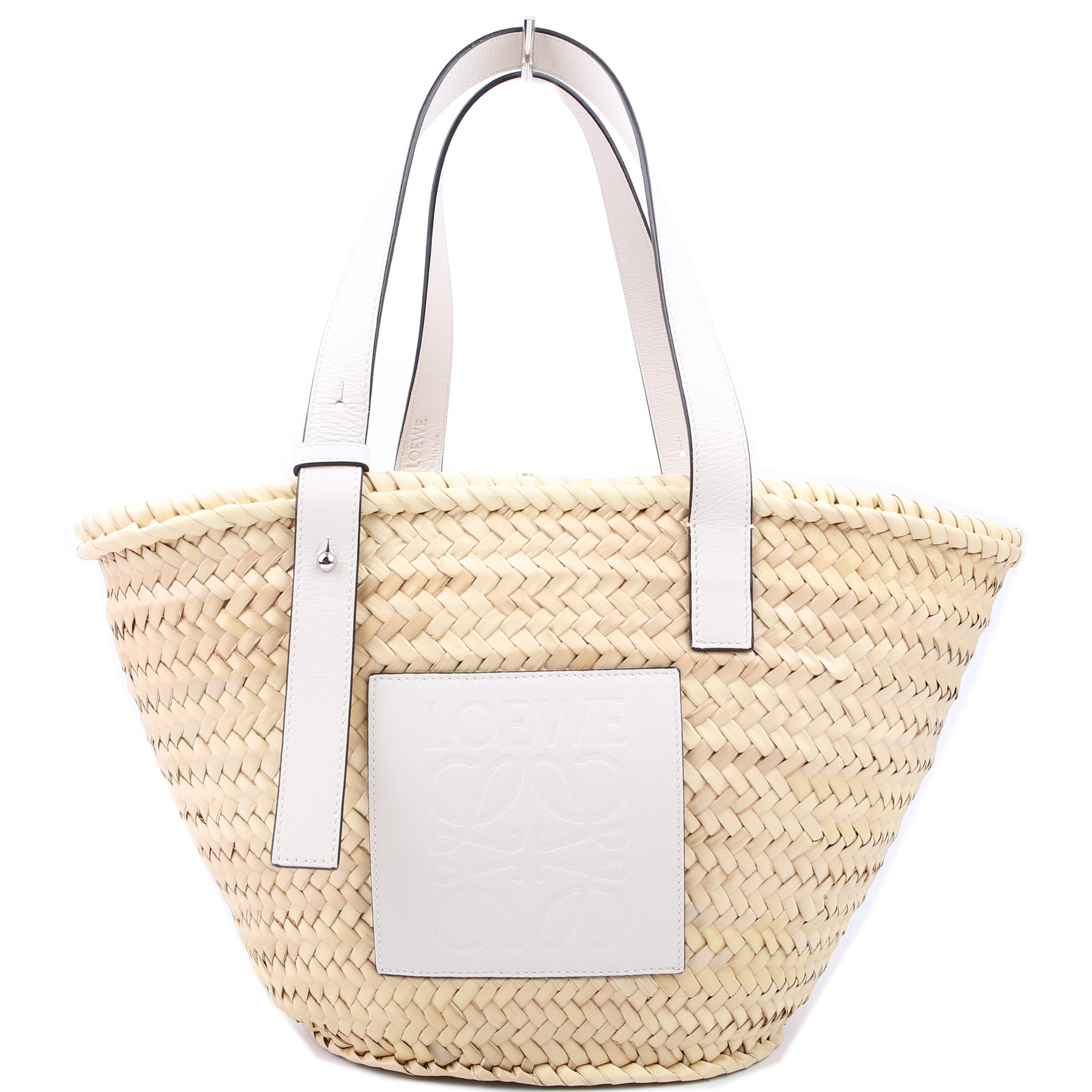 This pre-owned Loewe Raffia Basket Tote Small is guaranteed 100% authentic.