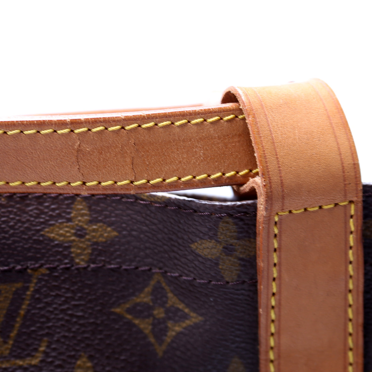 This pre-owned Louis Vuitton Randonnee GM is guaranteed 100% authentic. The exterior is in the classic Louis Vuitton Monogram coated canvas.