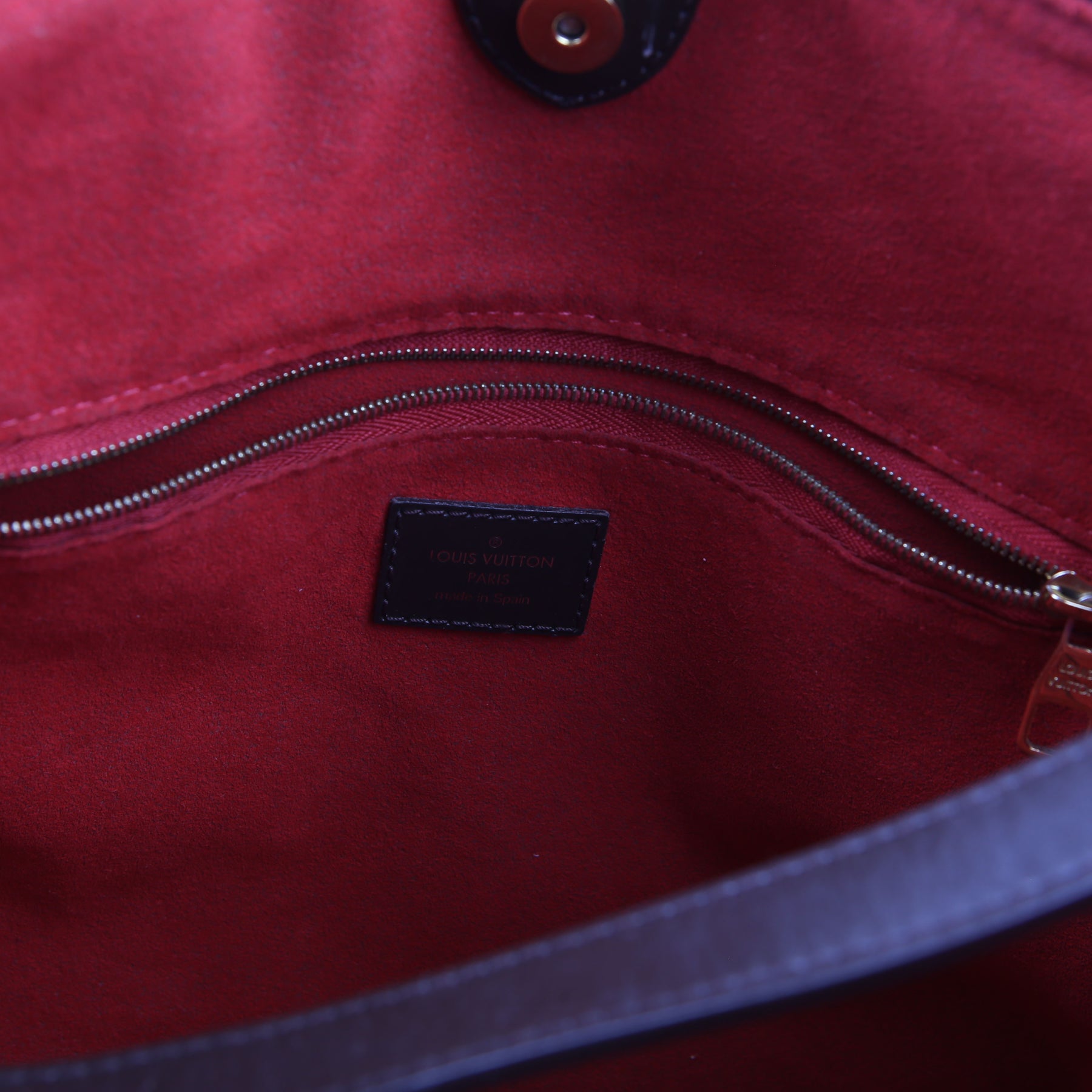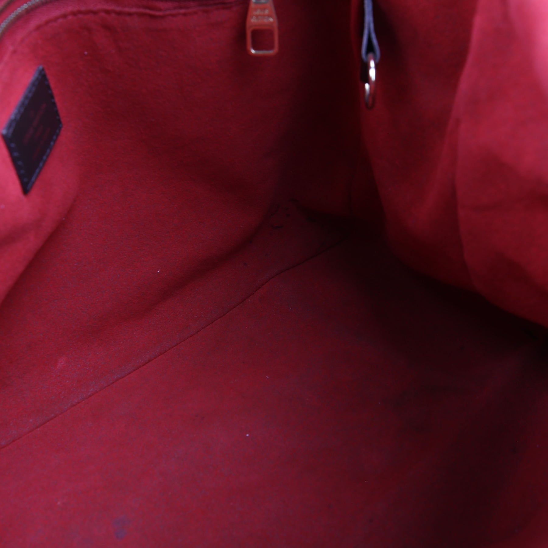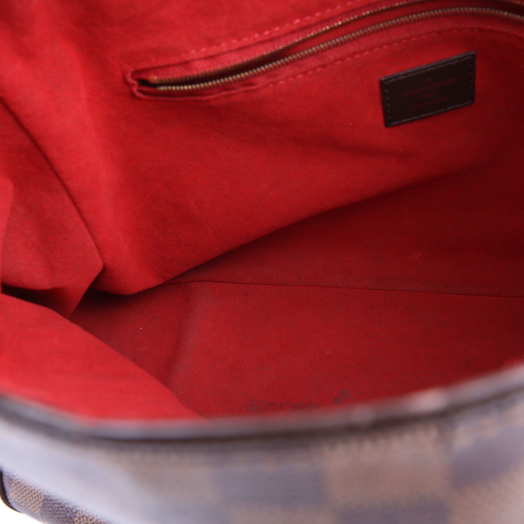 Exterior: The exterior Damier Ebene coated canvas has minor wear to the corners. The leather trim has heavy wear.