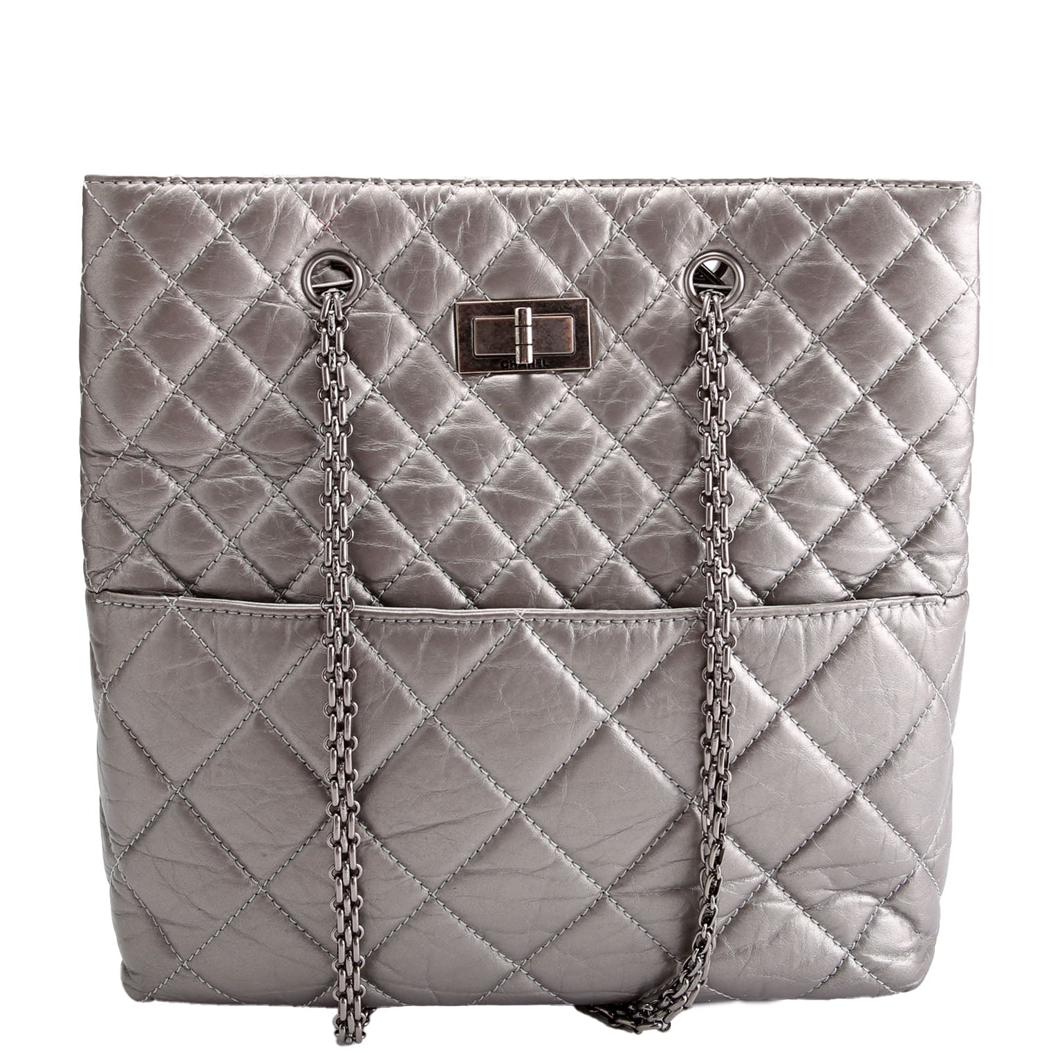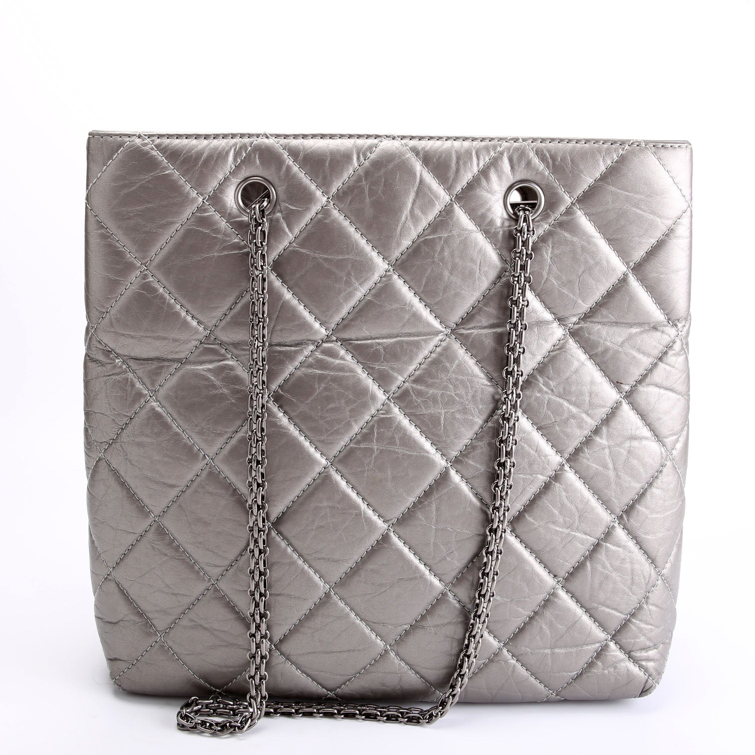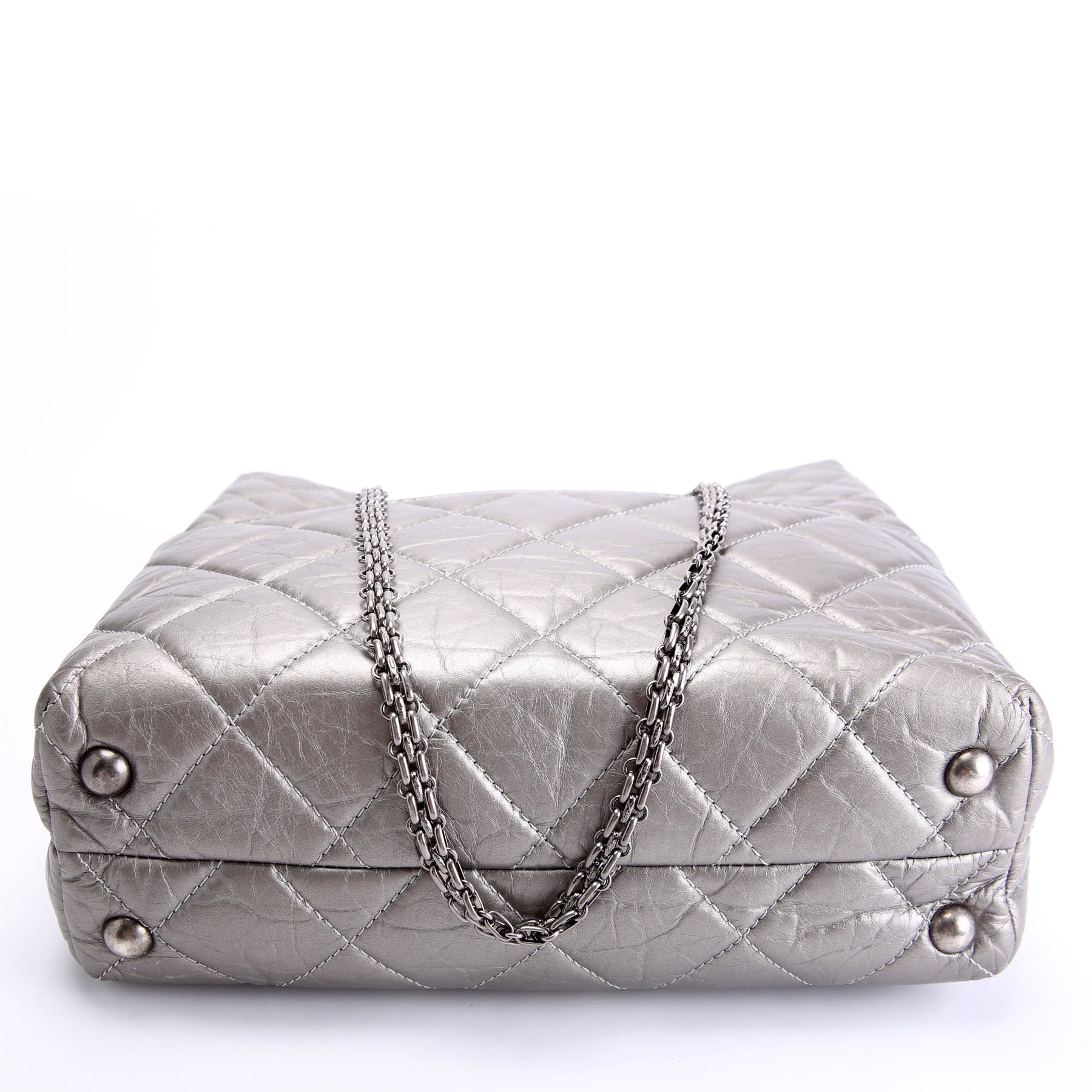 This pre-owned Chanel Reissue Tall Tote Quilted Aged Calfskin is guaranteed 100% authentic. The exterior is in the classic Chanel Calfskin leather.
