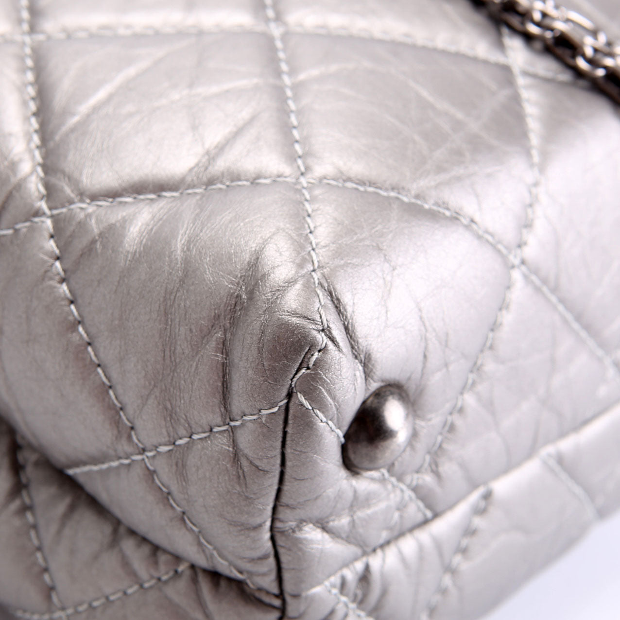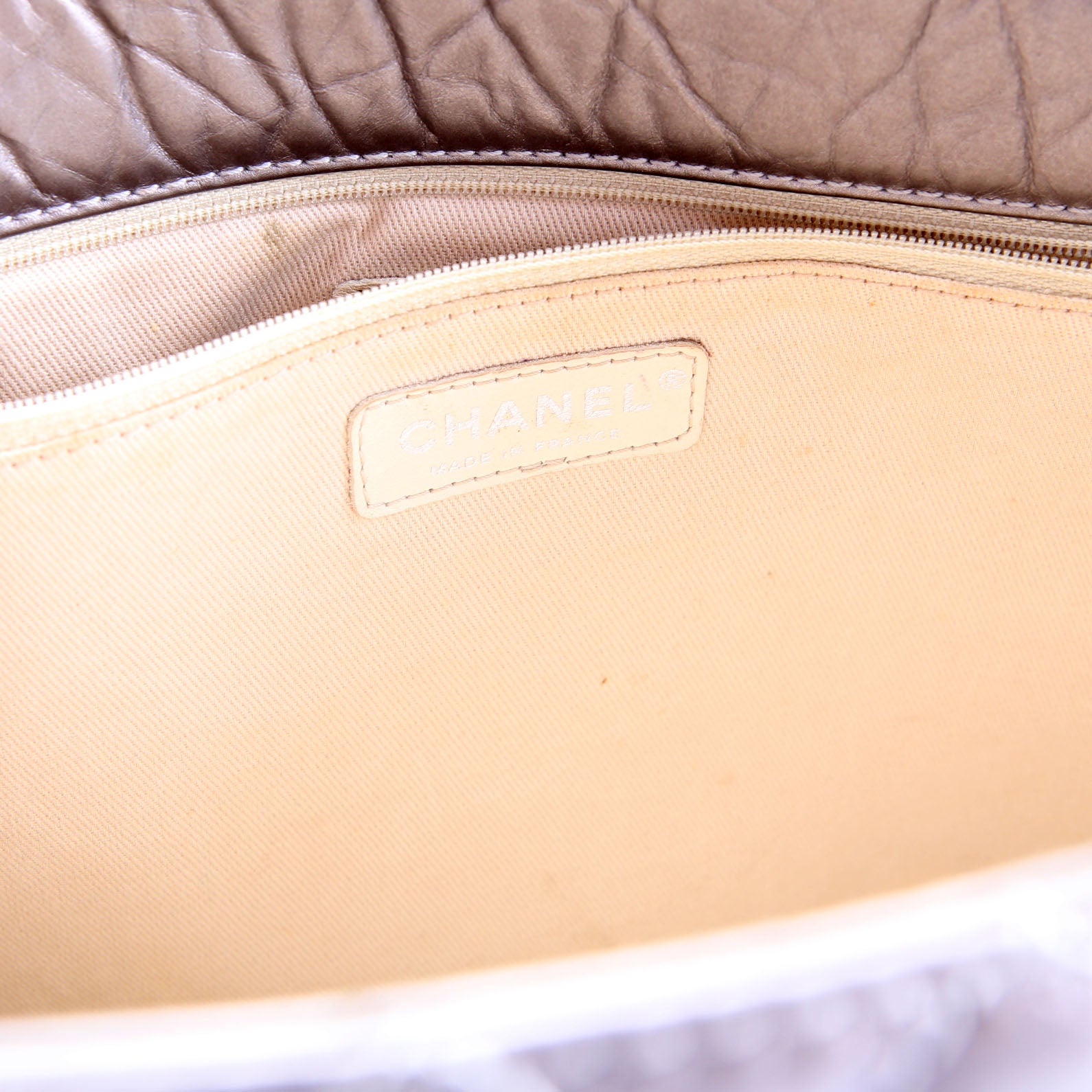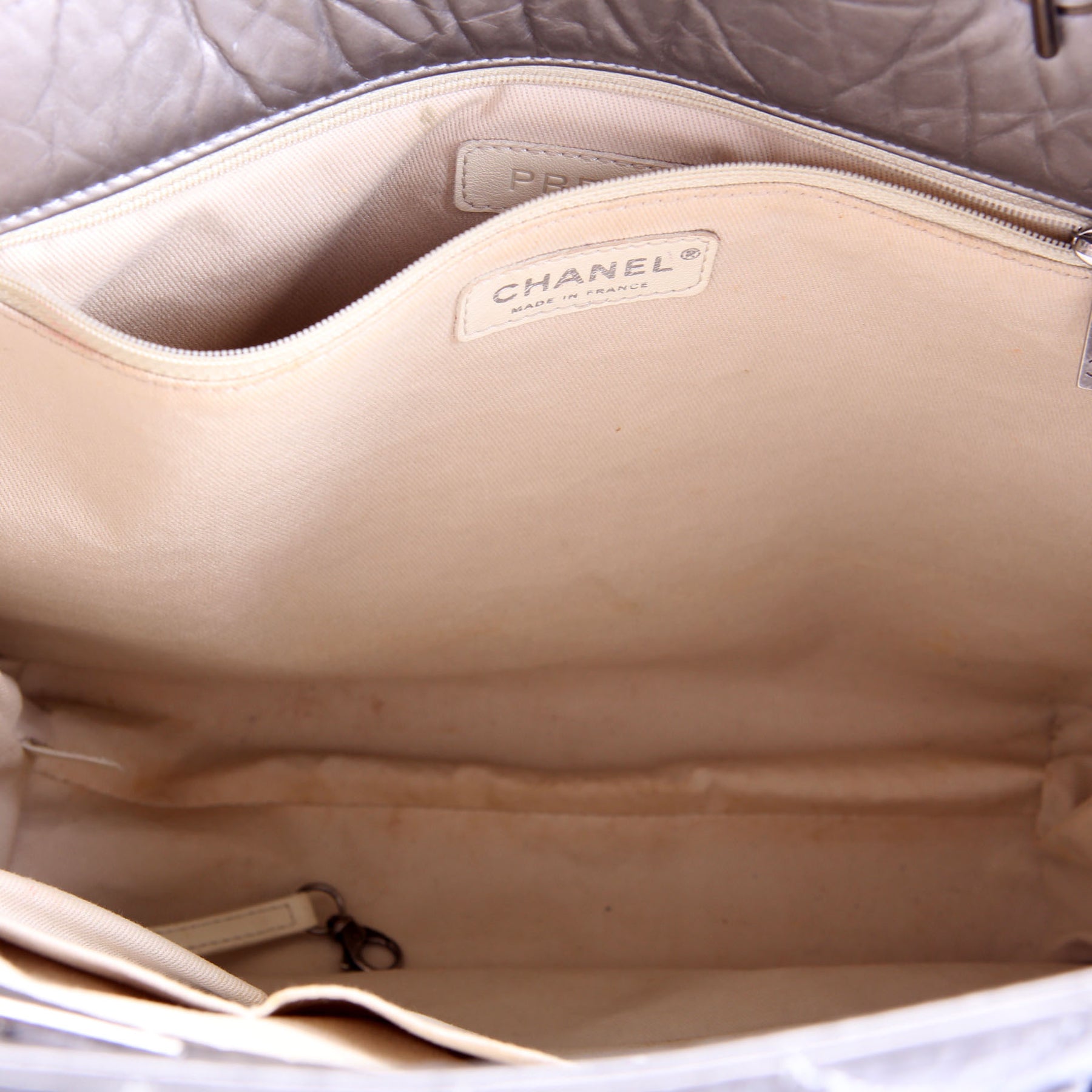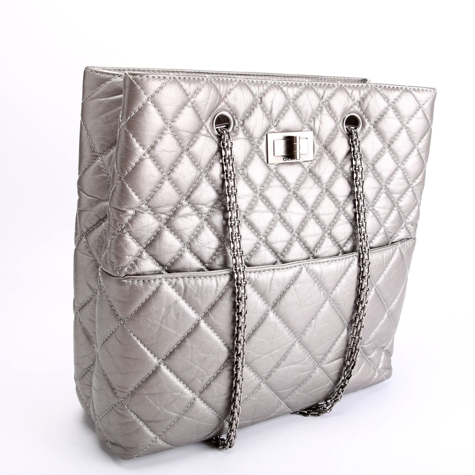 This pre-owned Chanel Reissue Tall Tote Quilted Aged Calfskin is guaranteed 100% authentic. The exterior is in the classic Chanel Calfskin leather.