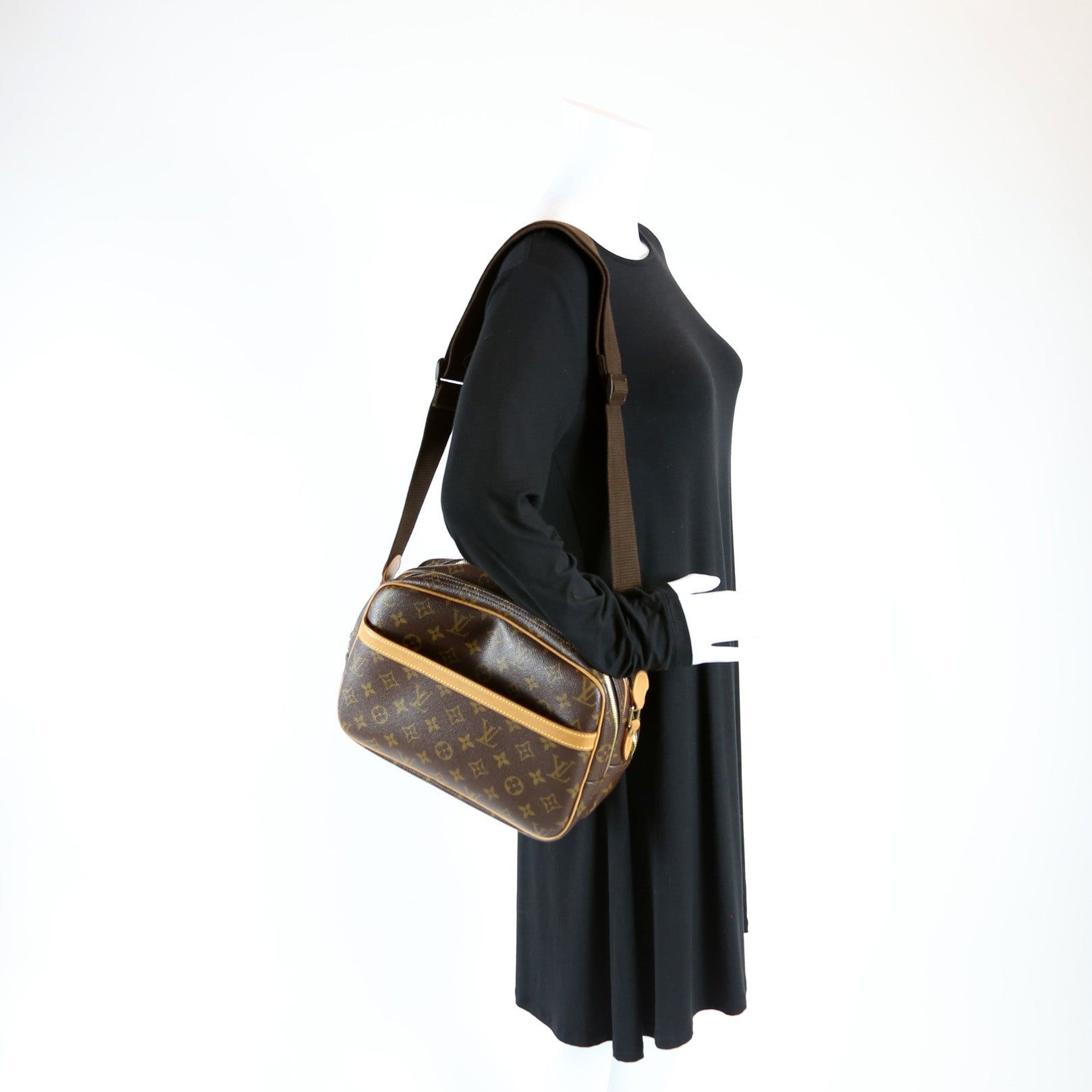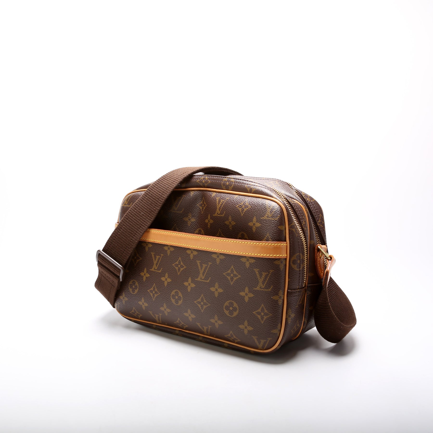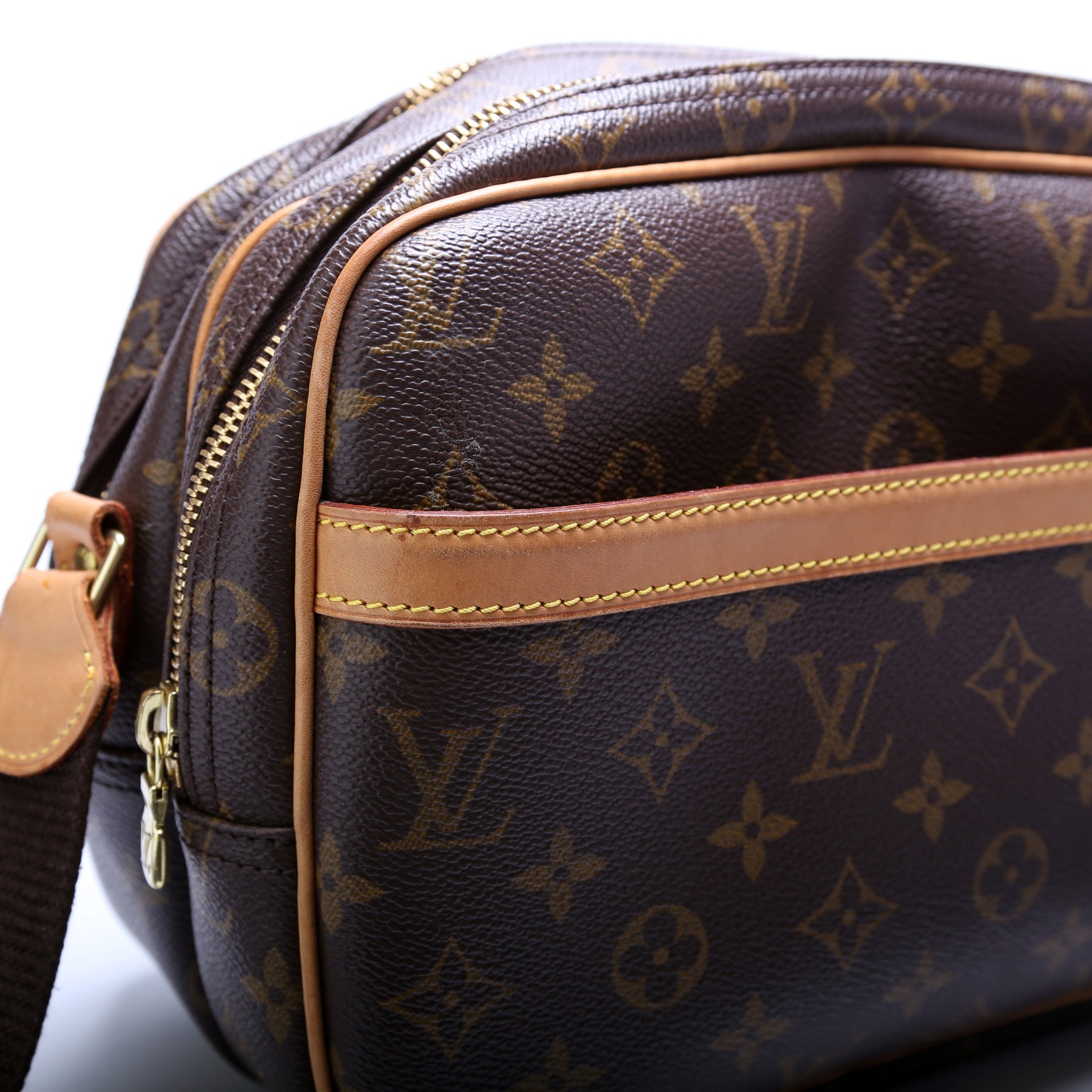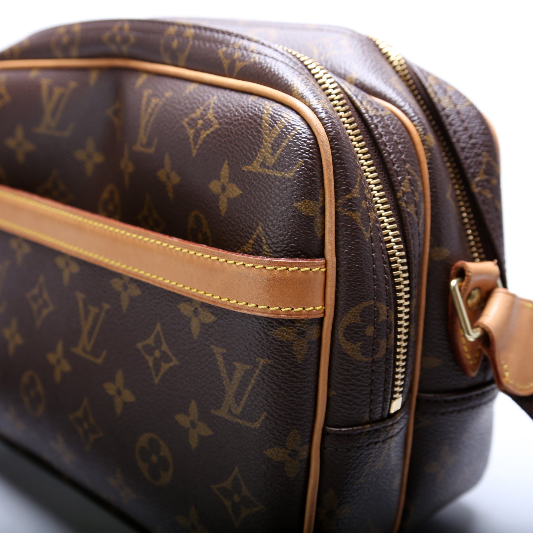 This pre-owned Louis Vuitton Reporter PM is guaranteed 100% authentic. The exterior is in the classic Louis Vuitton Monogram coated canvas.