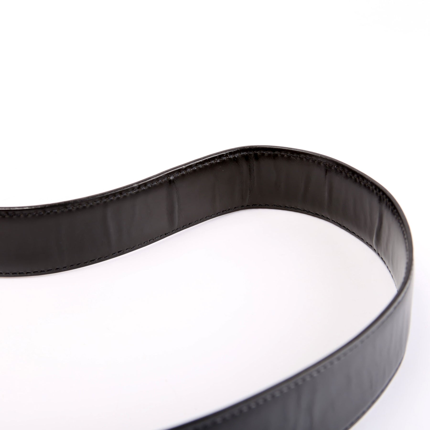 Strap: The leather strap shows light wrinkling and wear throughout. It is misshapen from storage and wear.