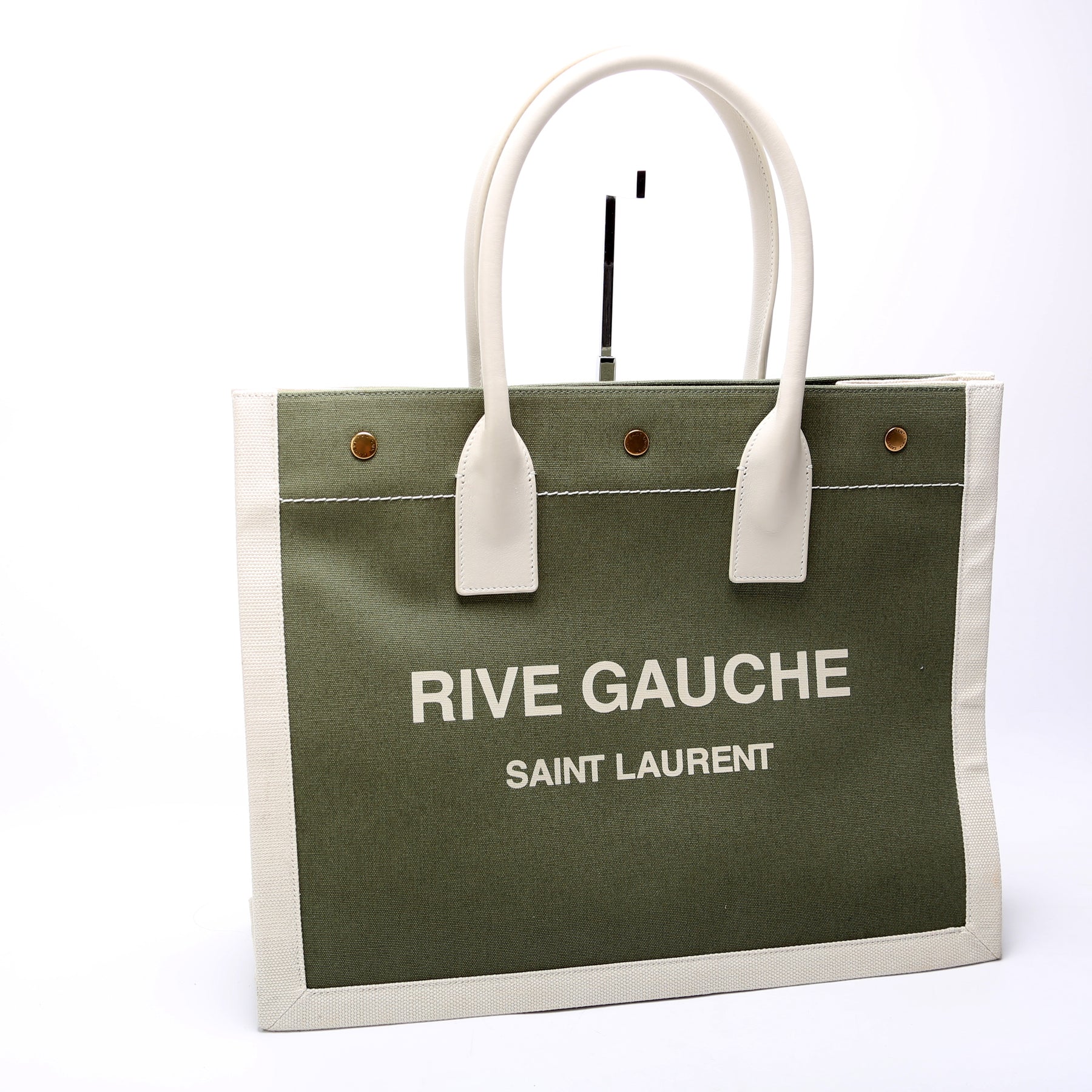 This pre-owned Saint Laurent Rive Gauche Tote Small is guaranteed 100% authentic. The exterior is in the Saint Laurent Rive Gauche canvas.
