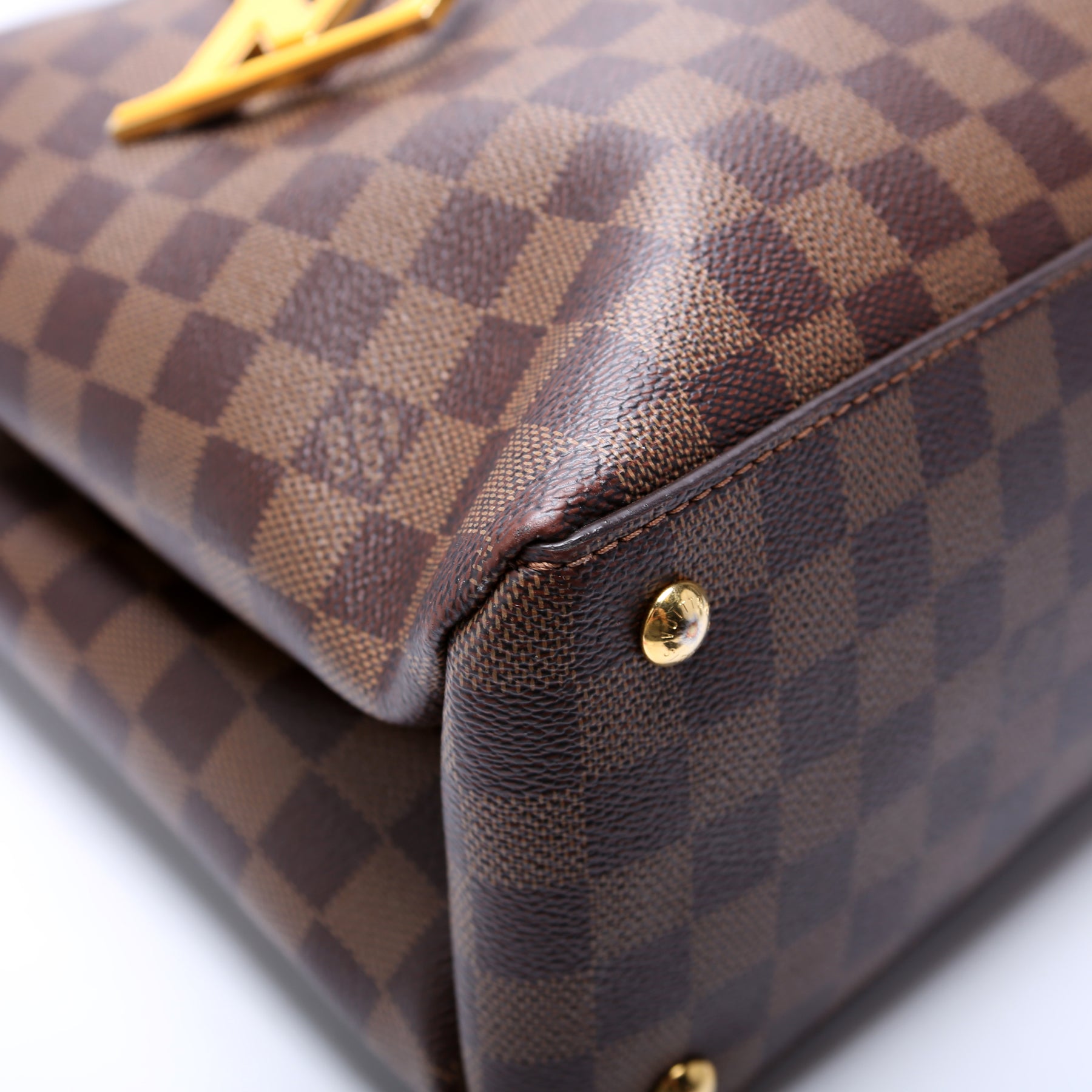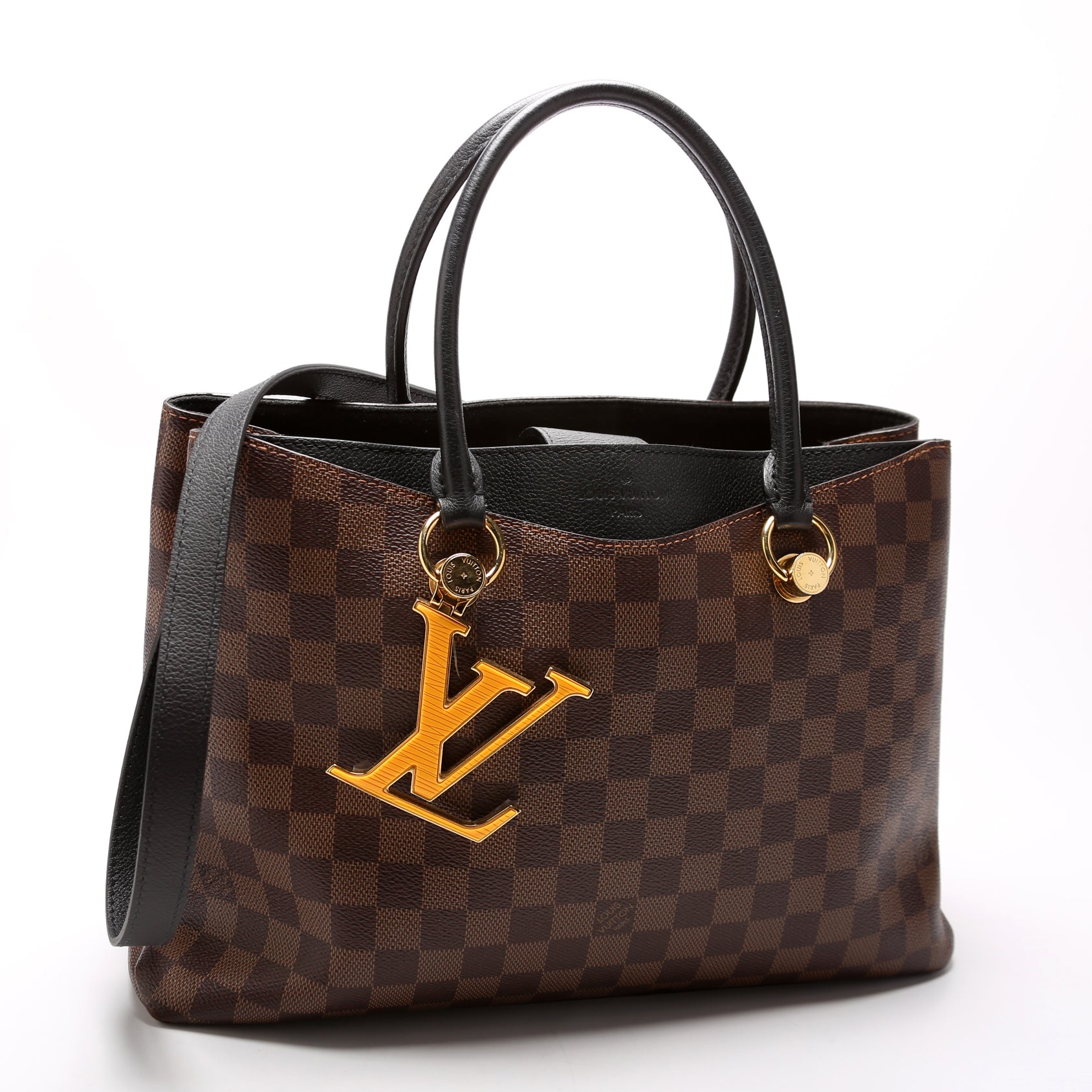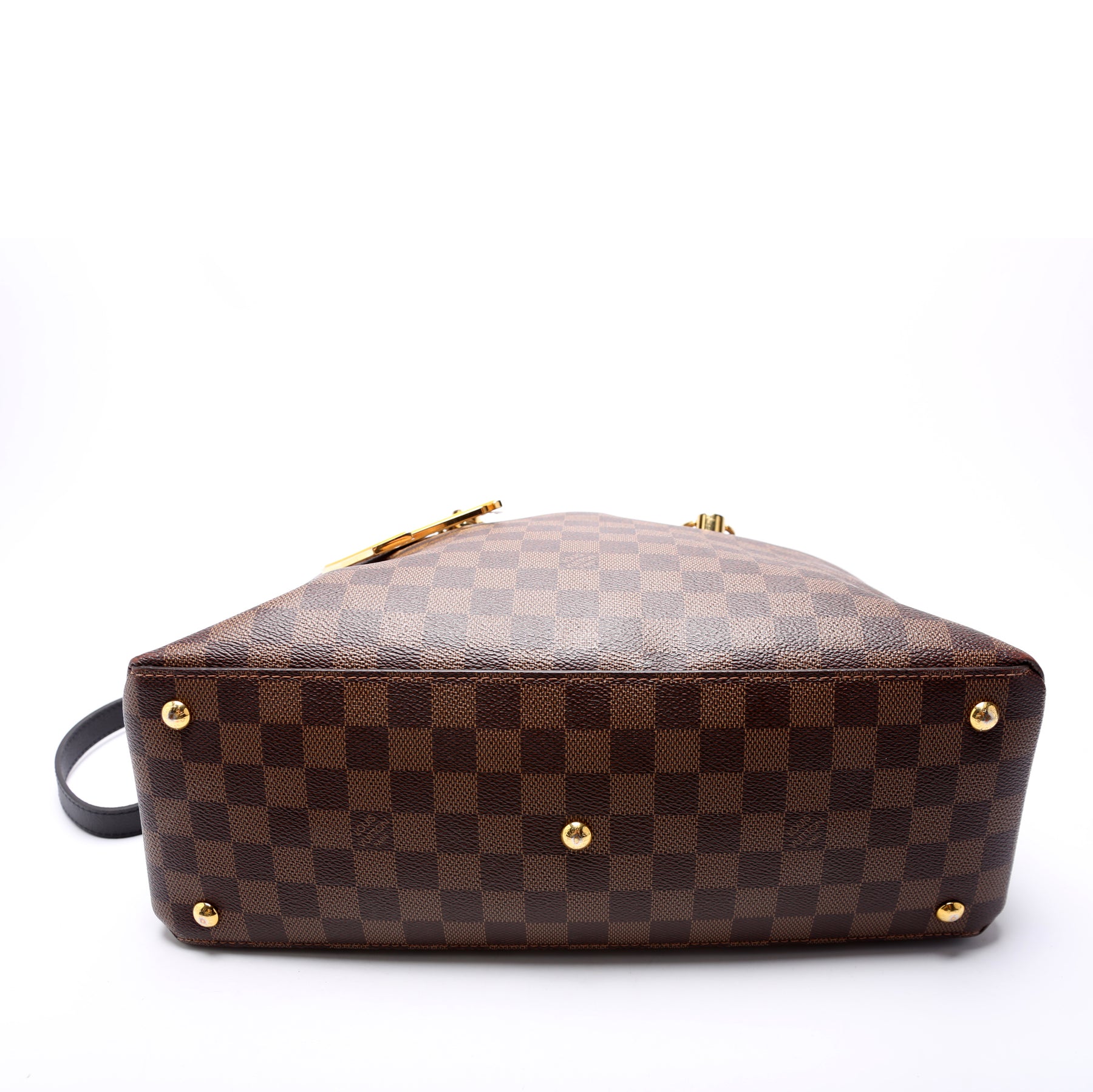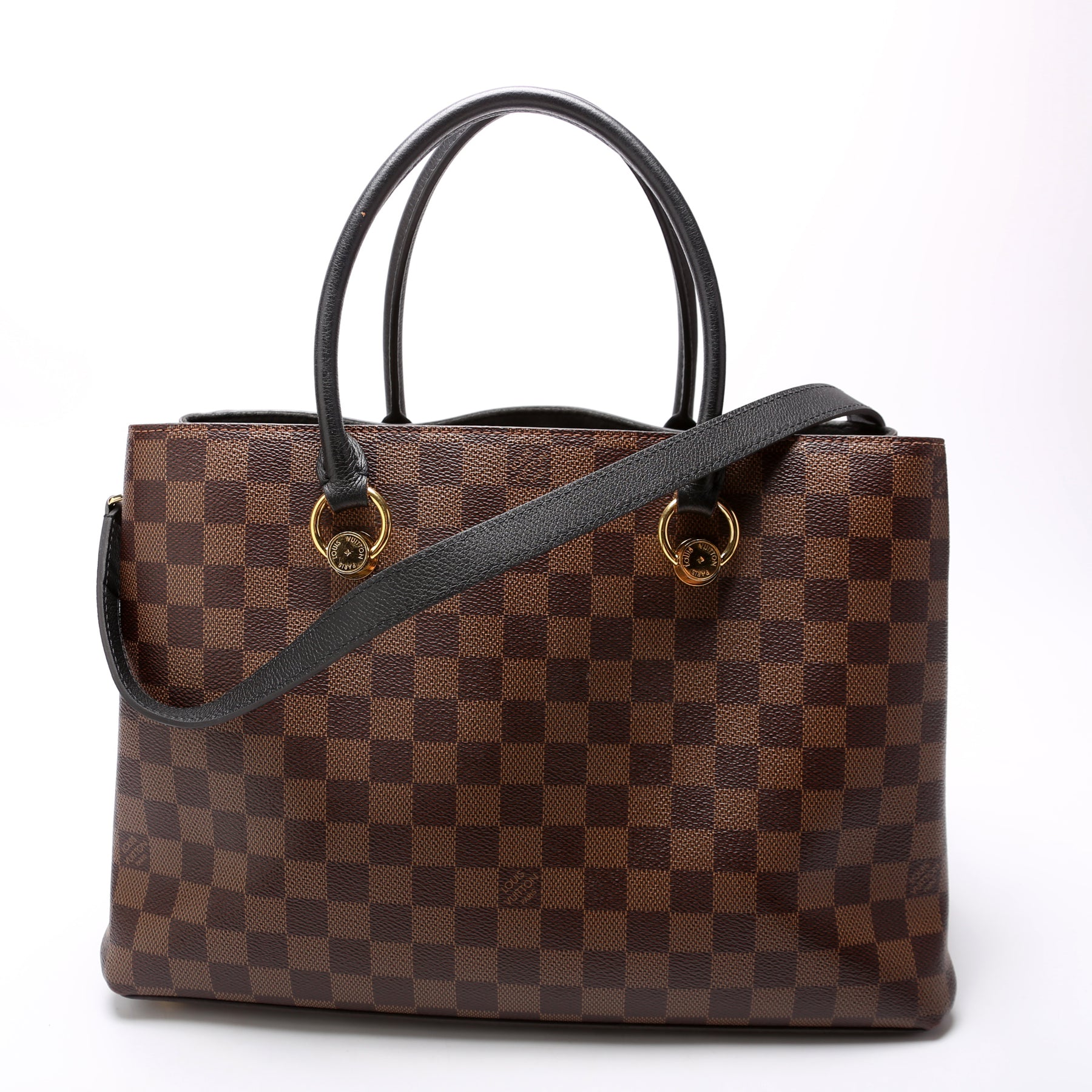 This pre-owned Louis Vuitton Riverside is guaranteed 100% authentic. The exterior is in the classic Louis Vuitton Damier Ebene coated canvas.