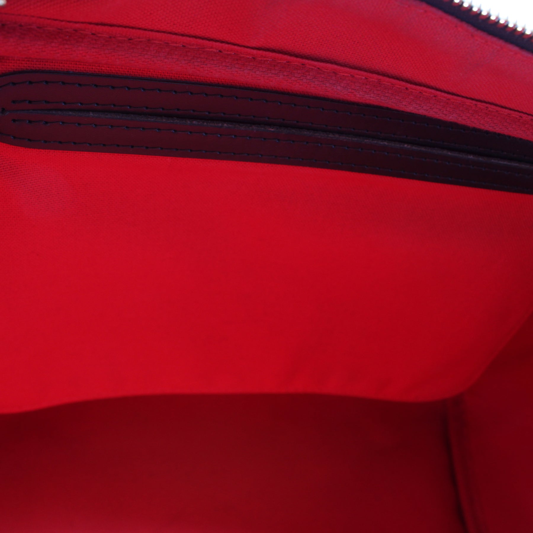 Exterior: The exterior coated canvas is free of any rips or cracks. The leather trim and pipping shows minimal wear.