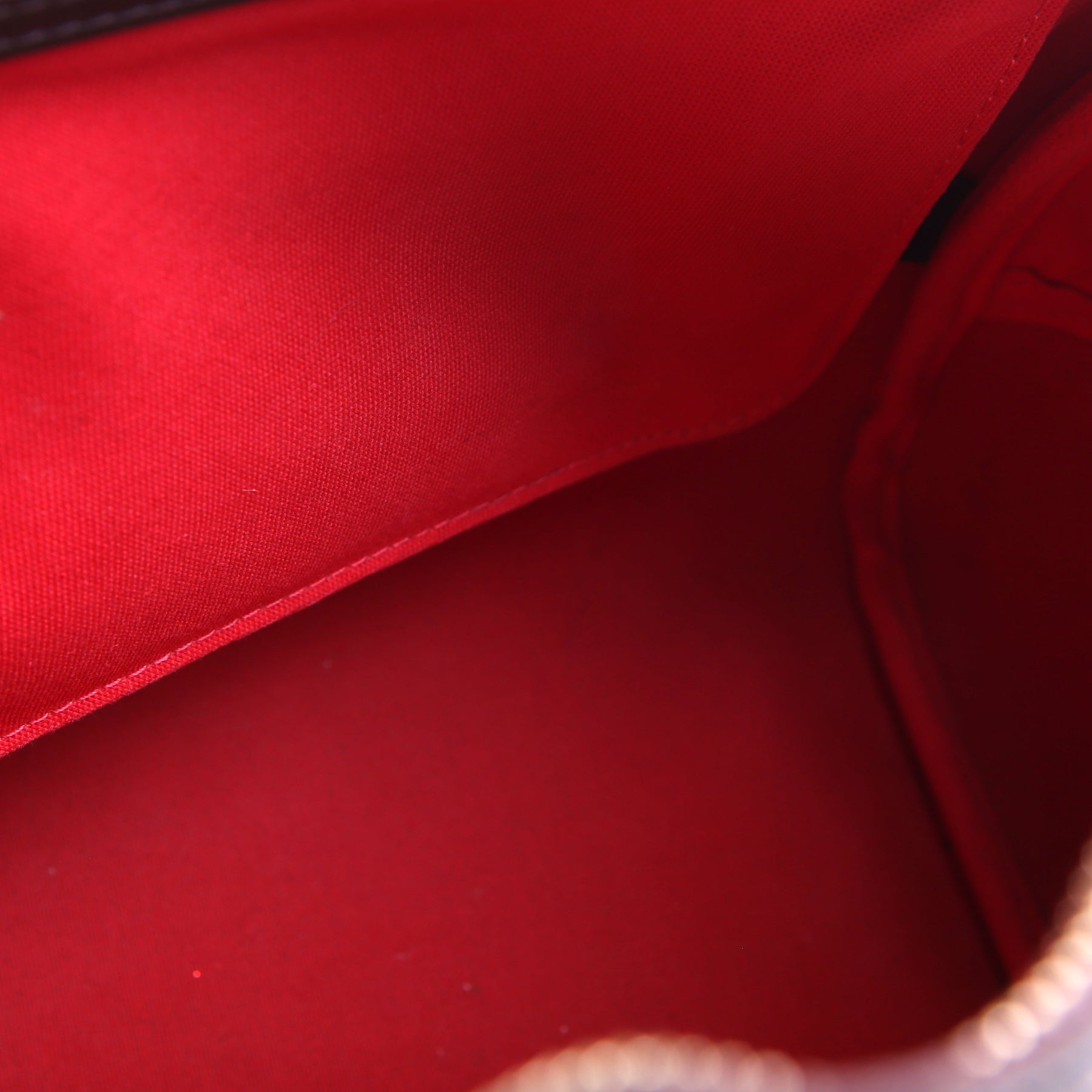 This pre-owned Louis Vuitton Rivington PM is guaranteed 100% authentic. The exterior is in the classic Louis Vuitton Damier Ebene coated canvas.