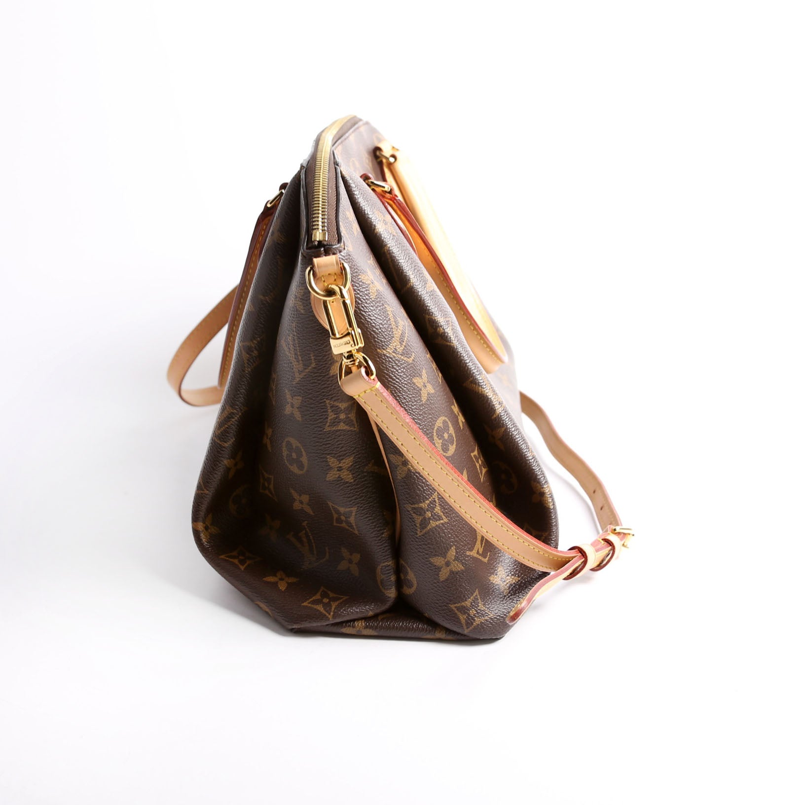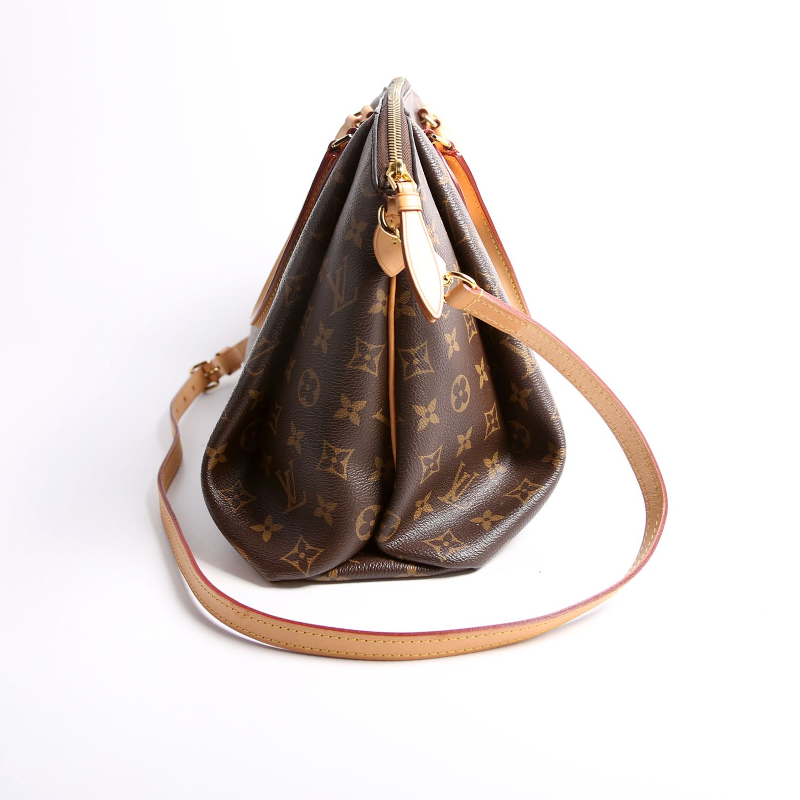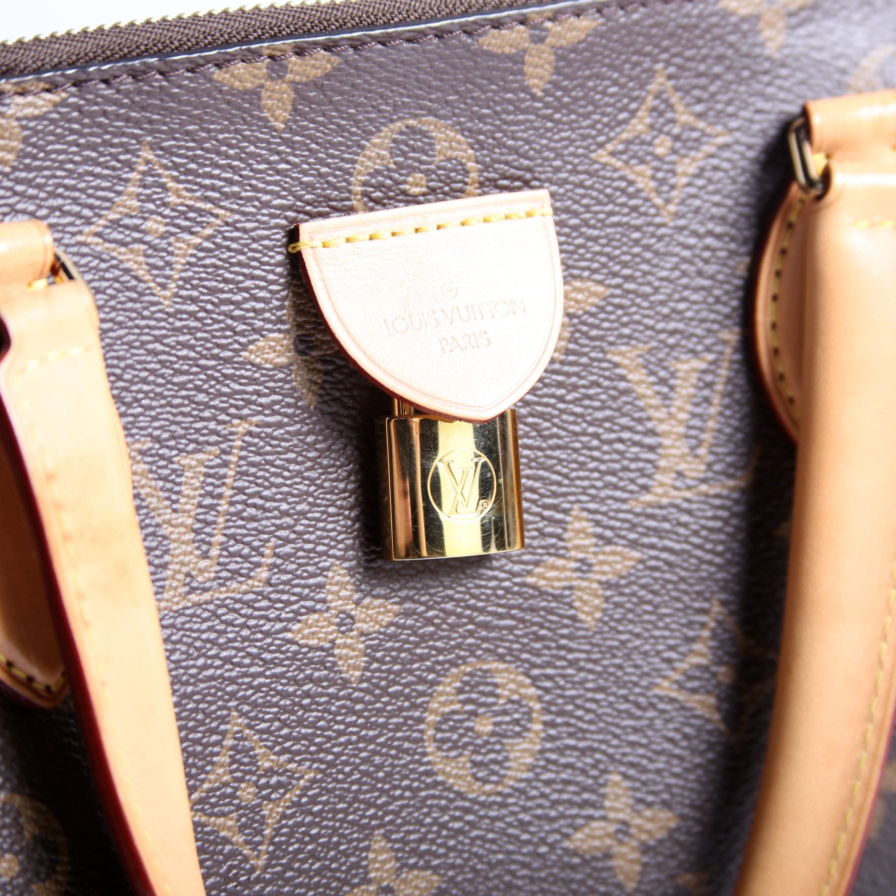 This pre-owned Louis Vuitton Rivoli NM MM is guaranteed 100% authentic. The exterior is in the classic Louis Vuitton Monogram Coated Canvas.