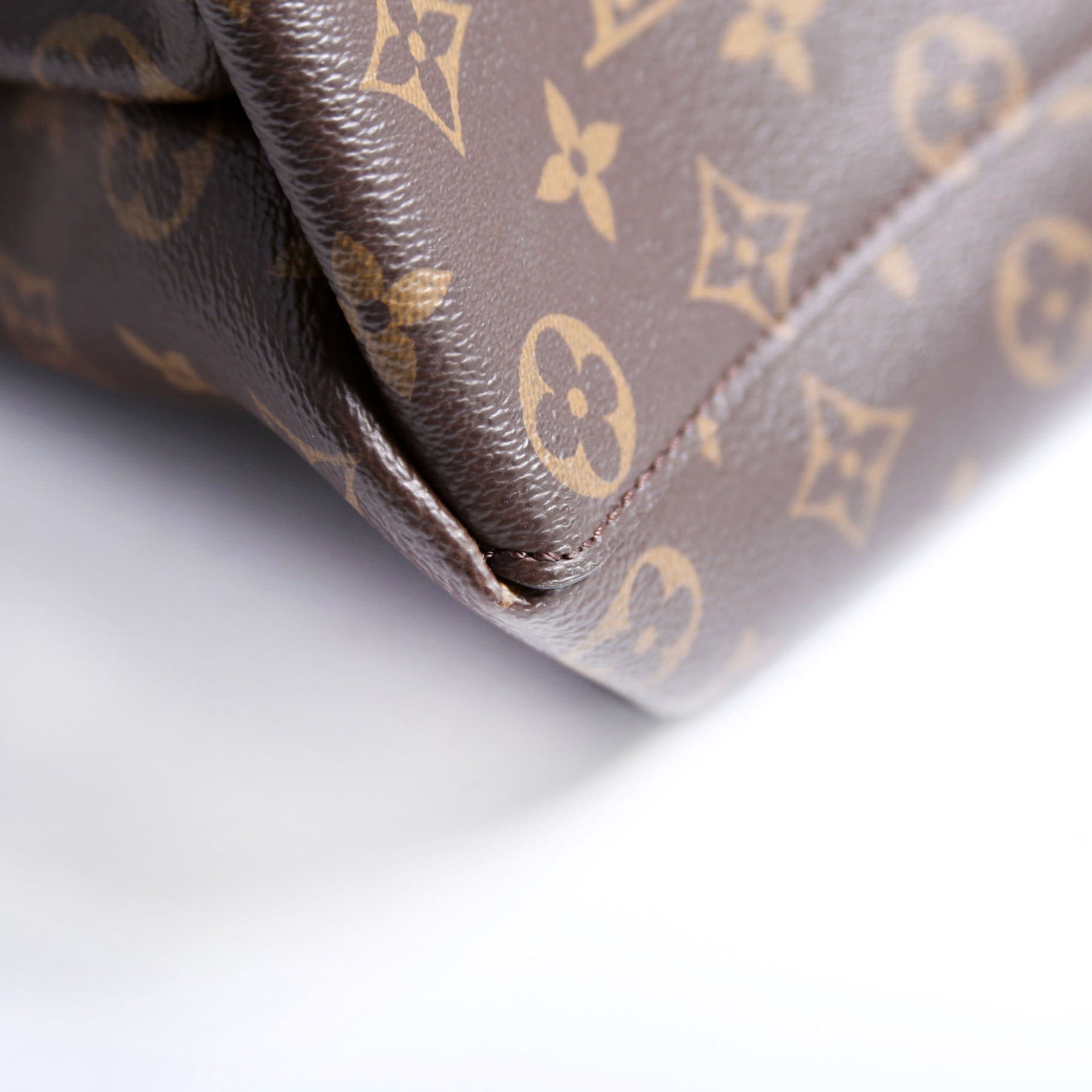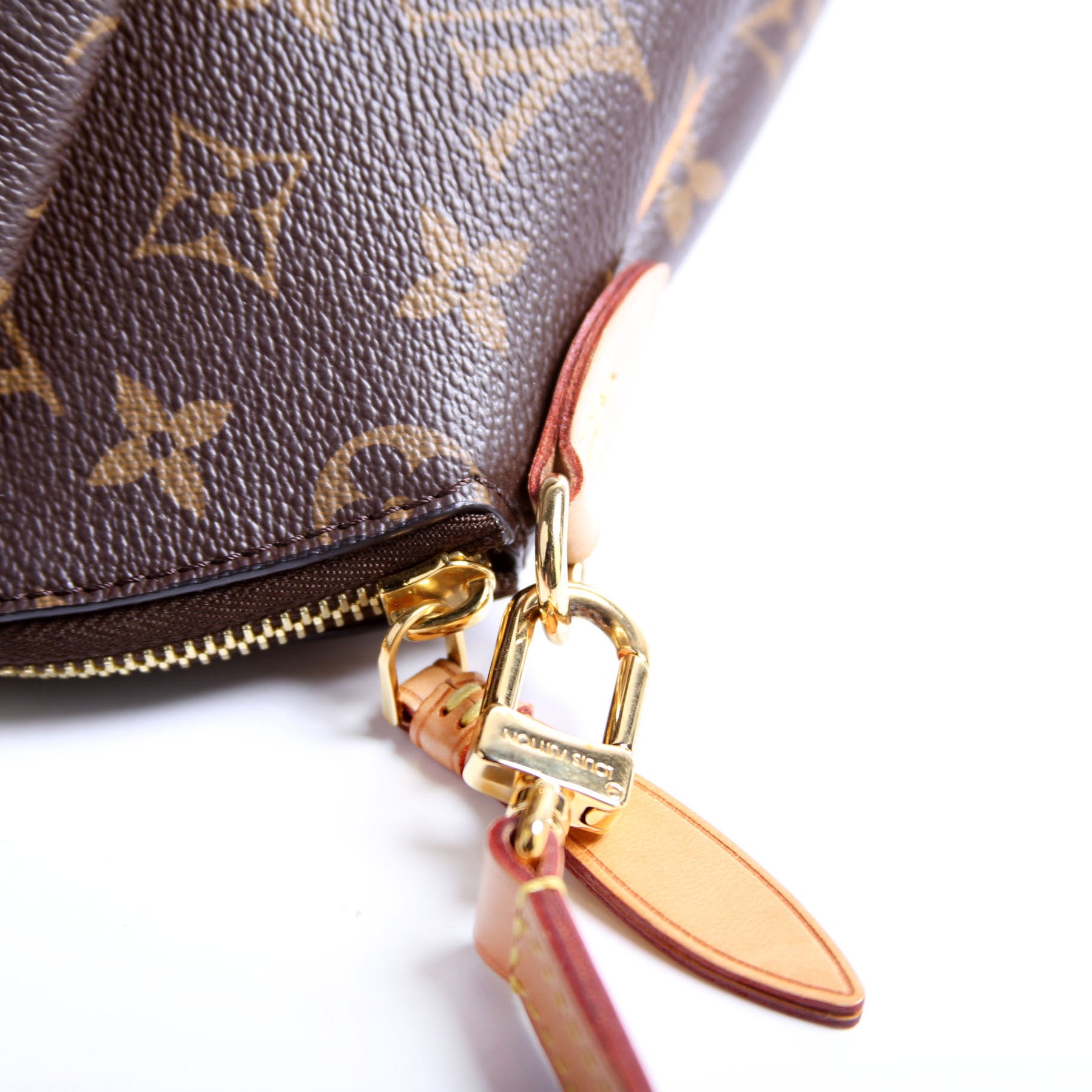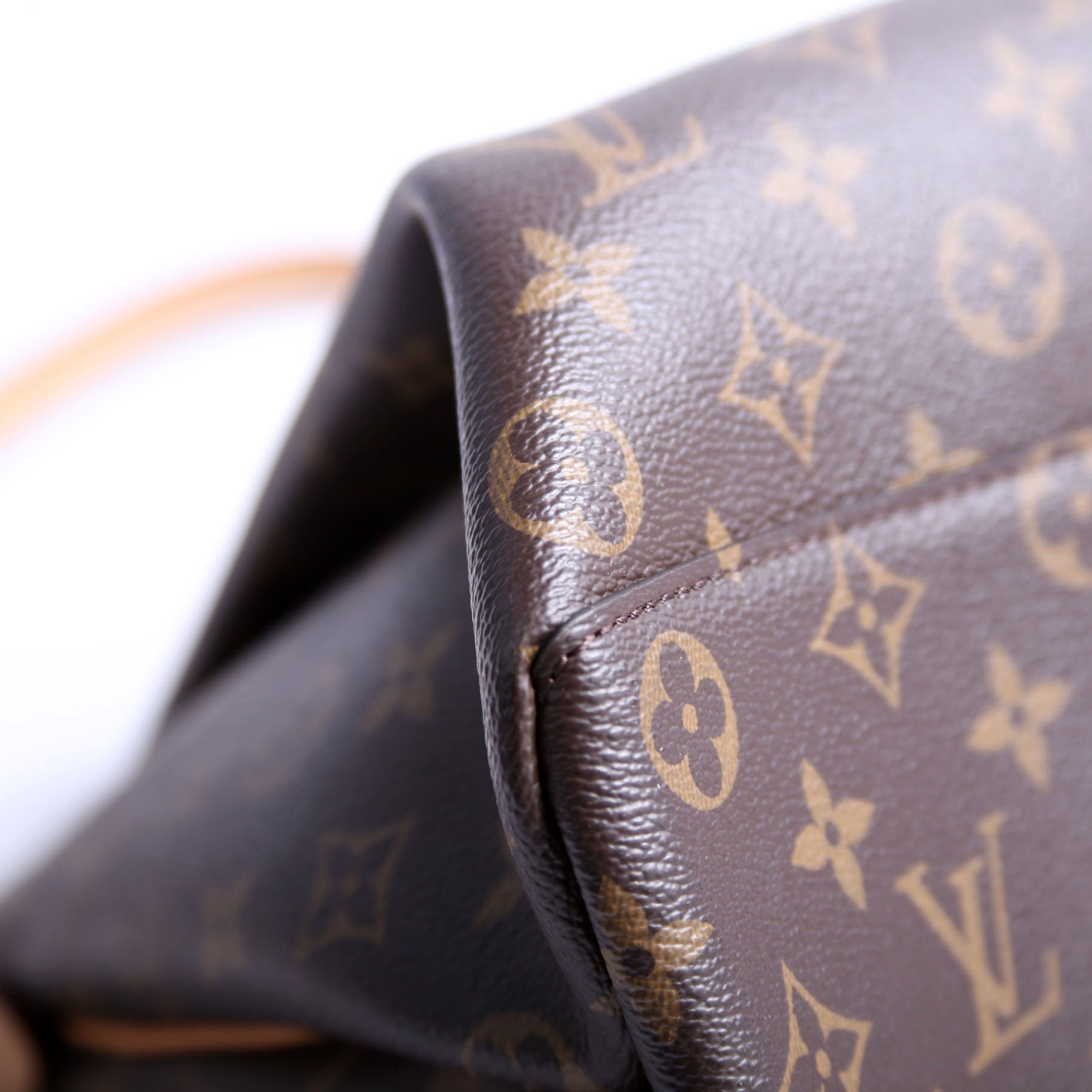 This pre-owned Louis Vuitton Rivoli NM MM is guaranteed 100% authentic. The exterior is in the classic Louis Vuitton Monogram Coated Canvas.