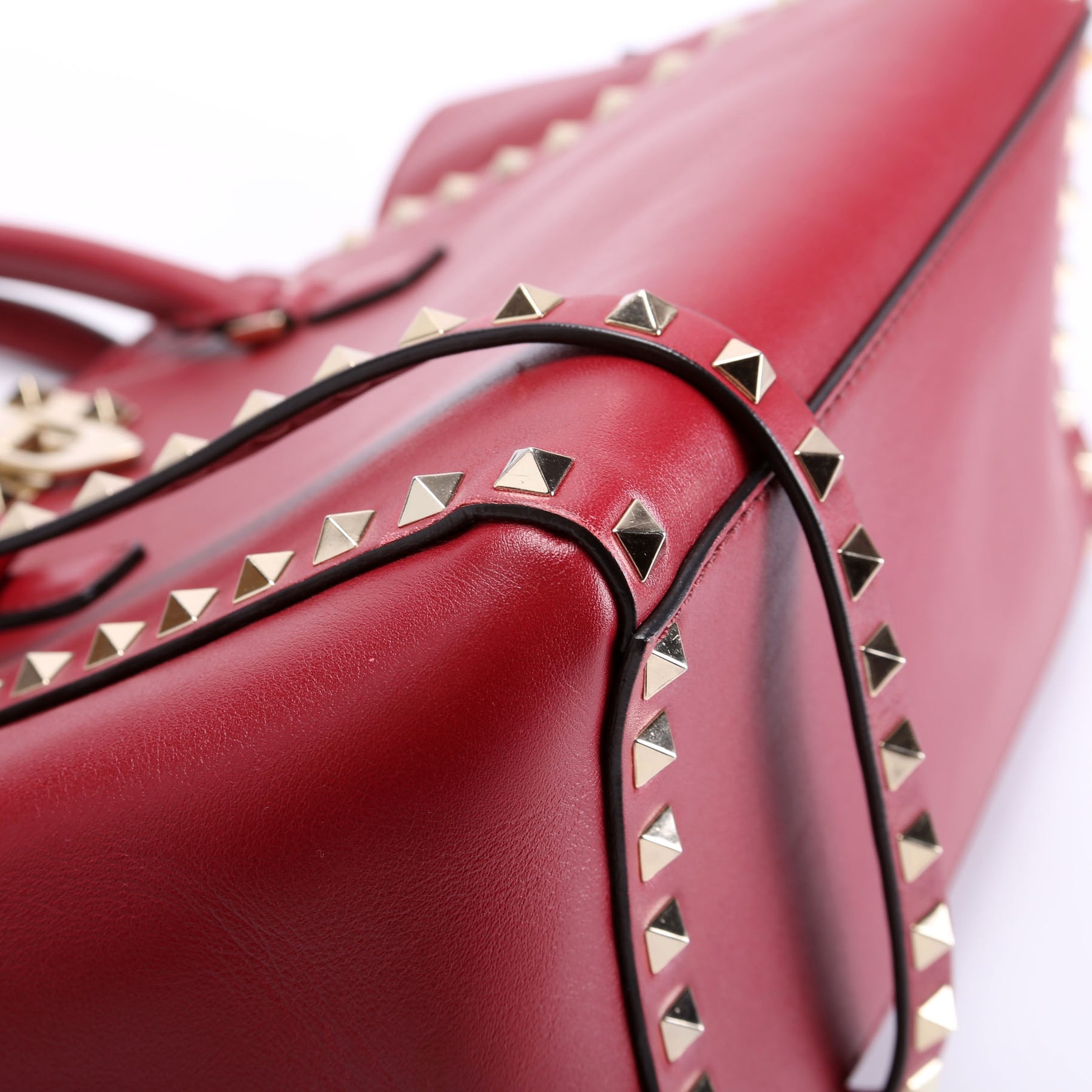 This pre-owned Valentino Rockstud Double Handle Small Tote is guaranteed 100% authentic.