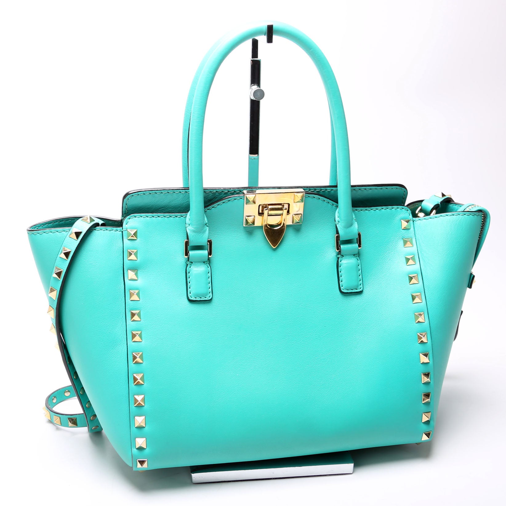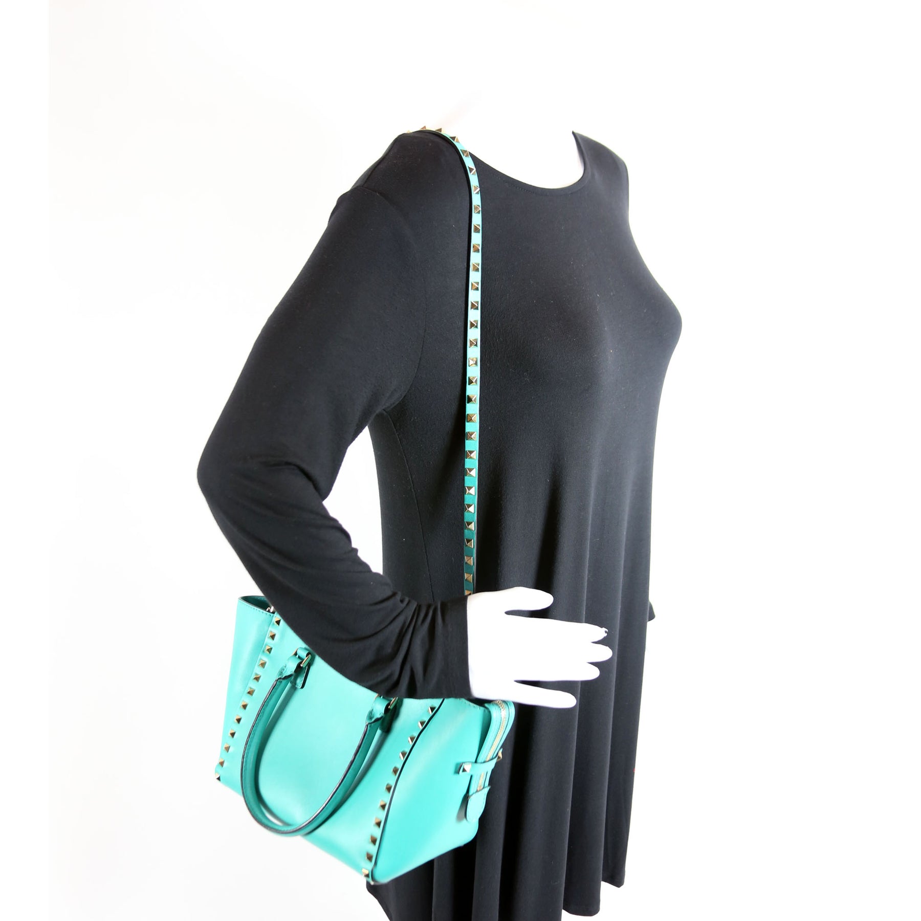 This pre-owned Valentino Rockstud Double Handle Small Tote is guaranteed 100% authentic.