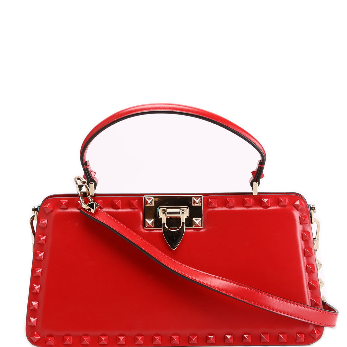 Rockstud Top Handle Clutch Red
